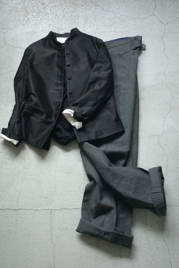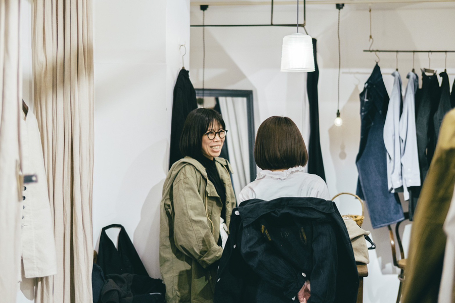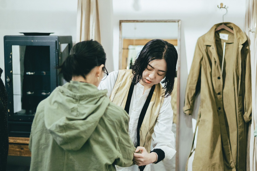 砂原さん自ら、生地選びから何度も着用して細やかに修正を加えながら、拘りの一品を製作し続けているgenreオリジナルレーベルの衣服。