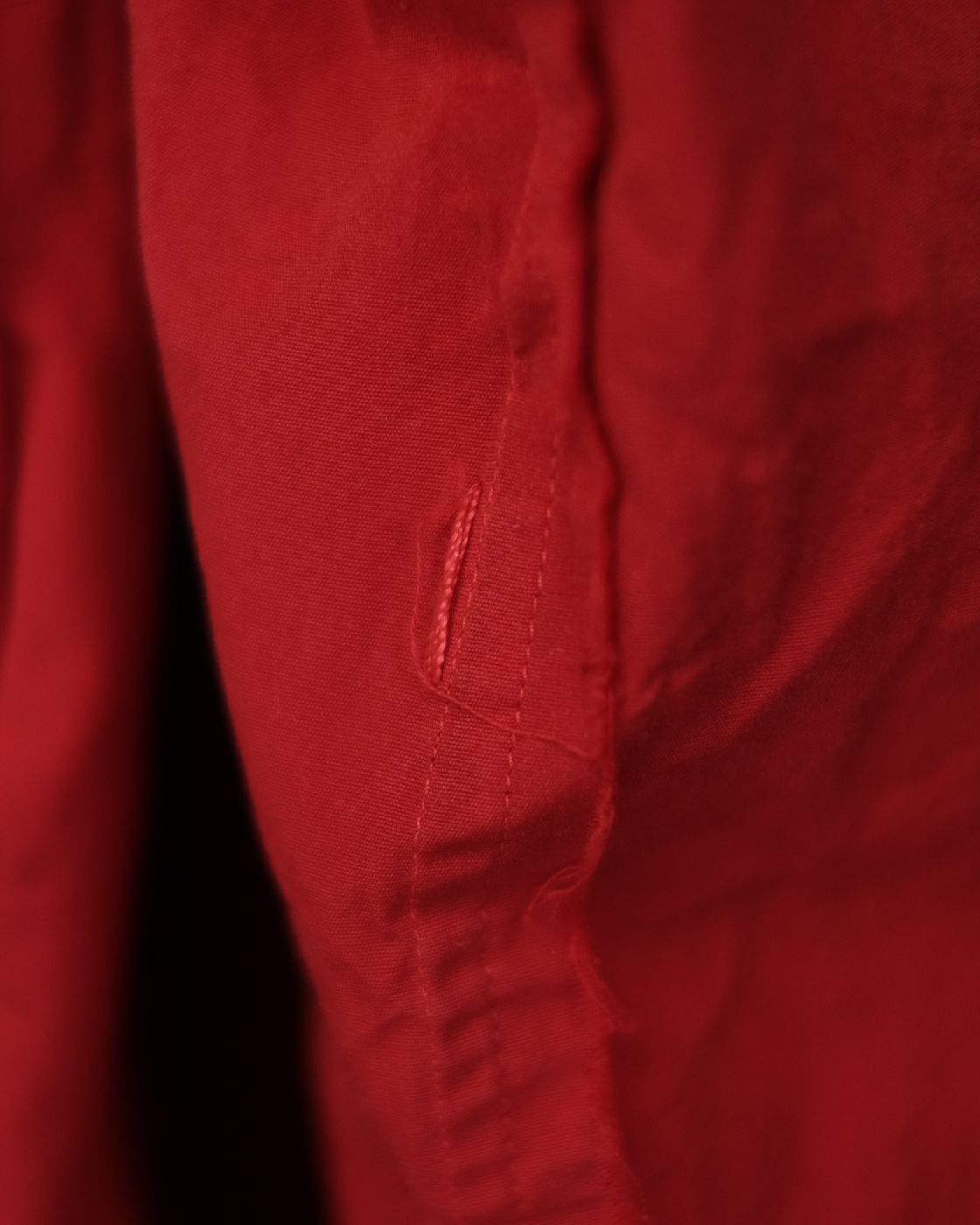 上質なコットンの糸で超高密度に織り上げられているカサッとハリのある生地感が大変心地良い一着。