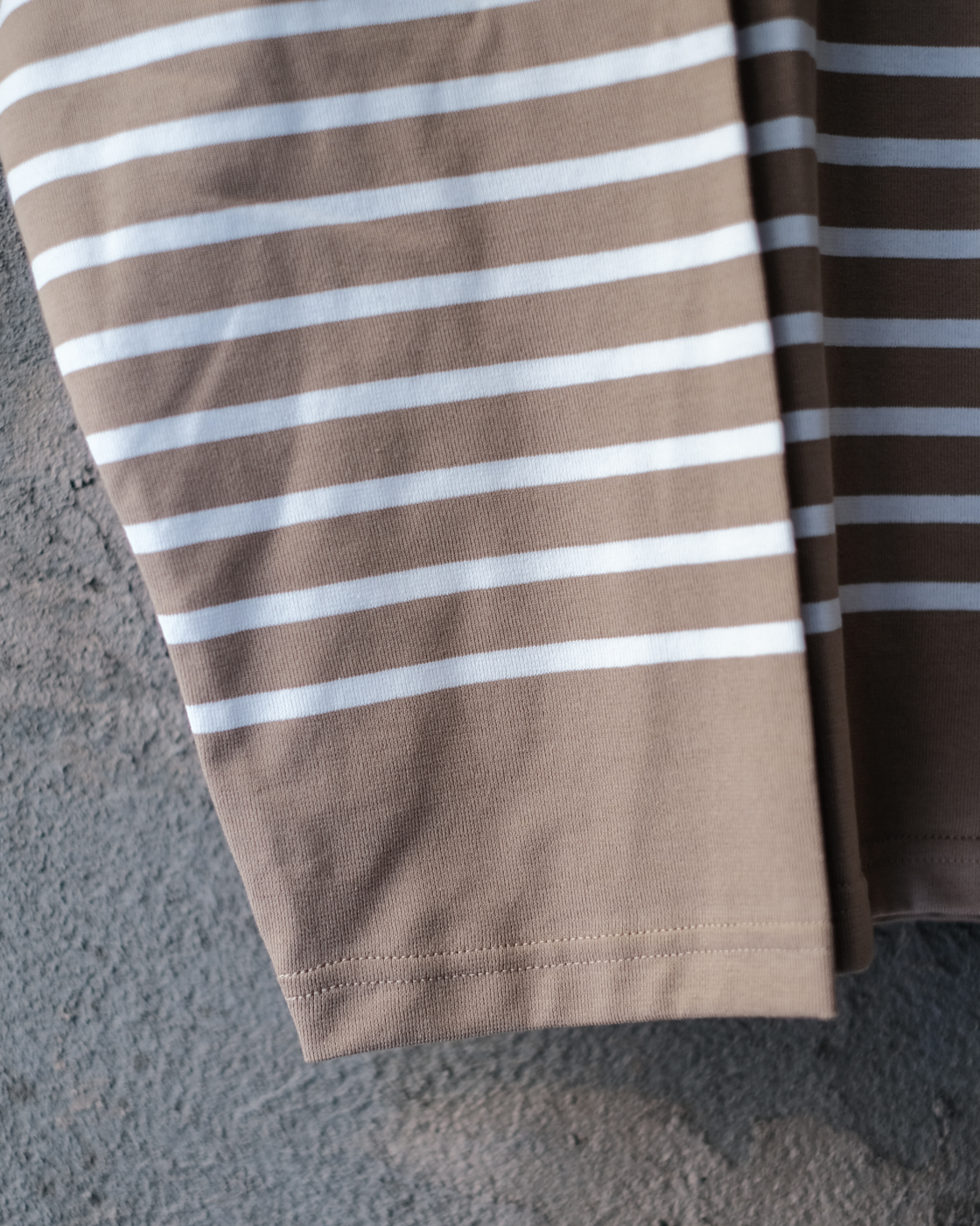 バスクシャツと言えども、なかなかバスク地方で製作されるものは少ない中で、フランス / バスク地方で60年以上営んでいるカットソーメーカーで生産され、生地を編むことから裁断~縫製に至るまで全ての工程を行っているというOUTIL拘りの素材。