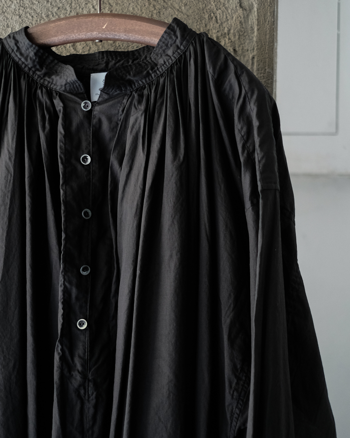ヴィンテージのスモックを思わせるディテールを随所に取り入れながら、現代のスタイルにすっと馴染むシルエットの美しさを追求して製作されていることを随所に感じます。