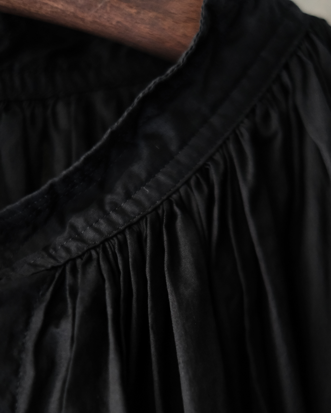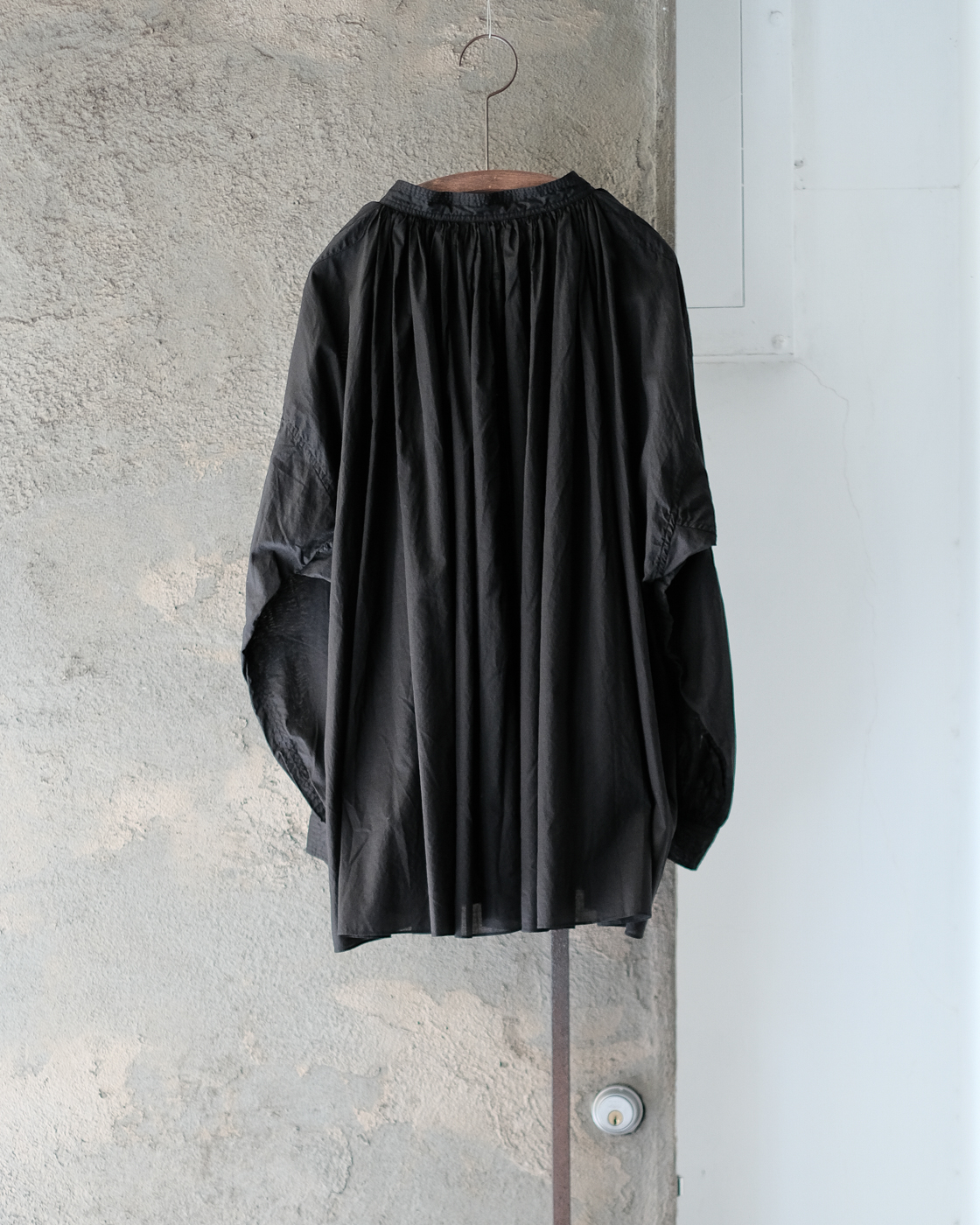 19世紀の古いスモックをベースに製作された細やかなギャザーに丁寧な縫製に思わず目が止まる、存在感のあるブラウス。
