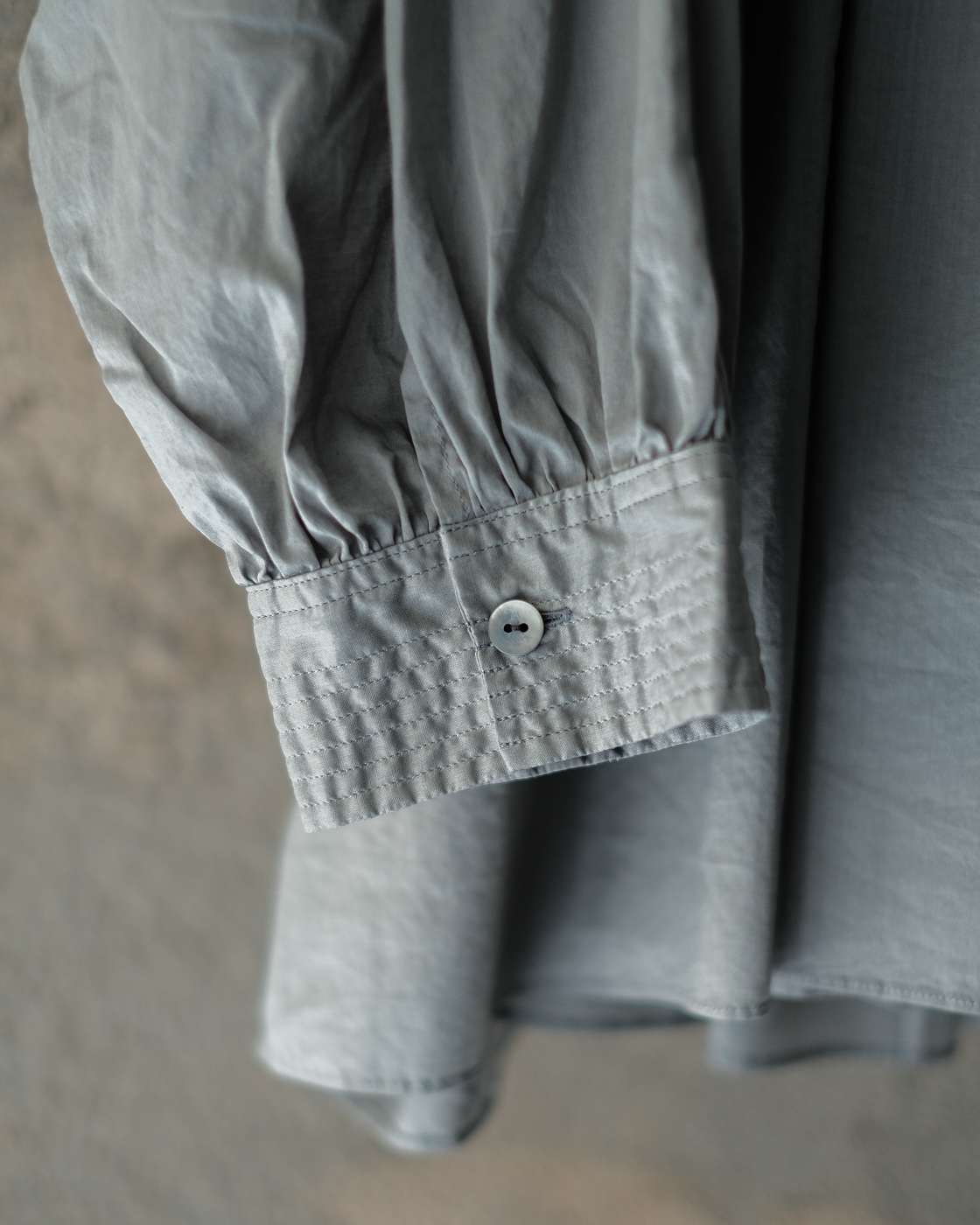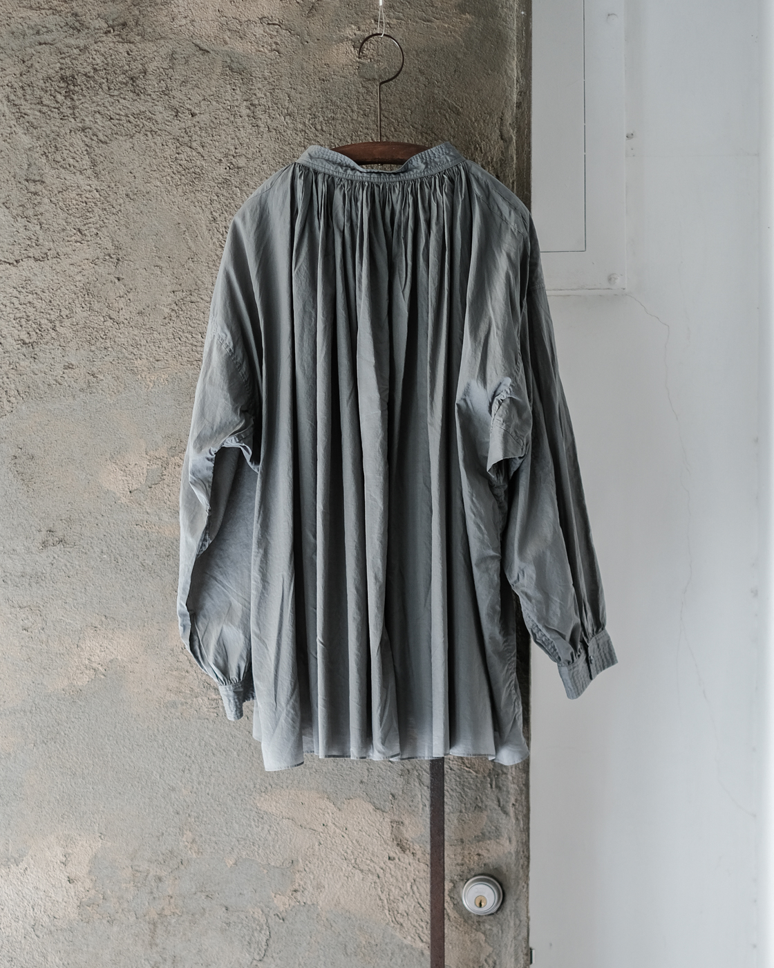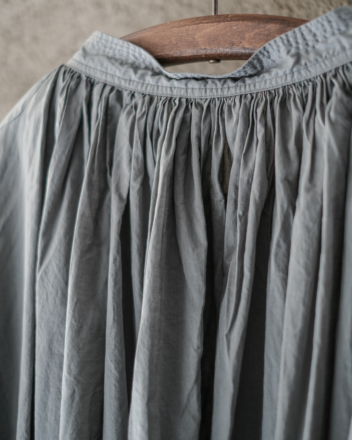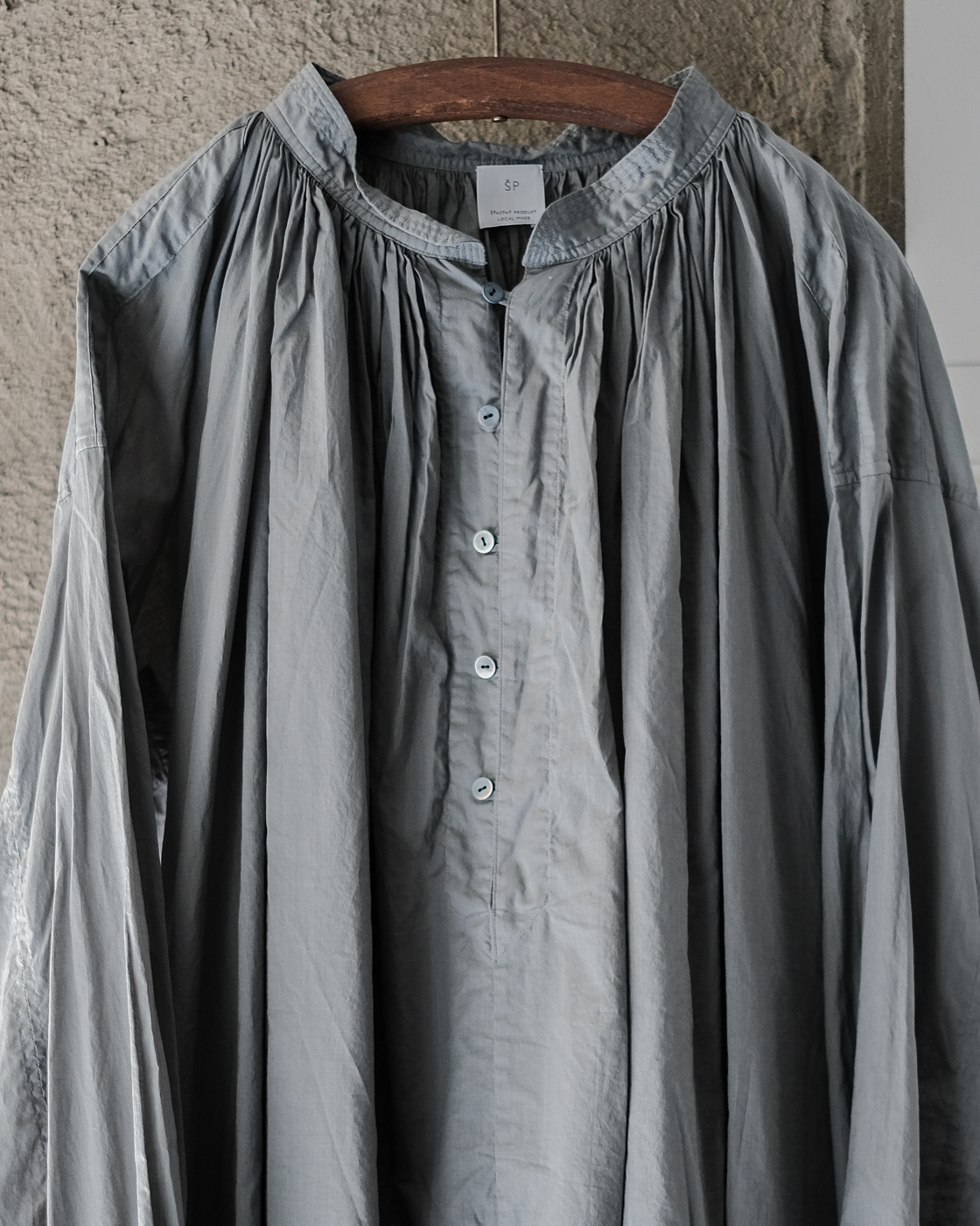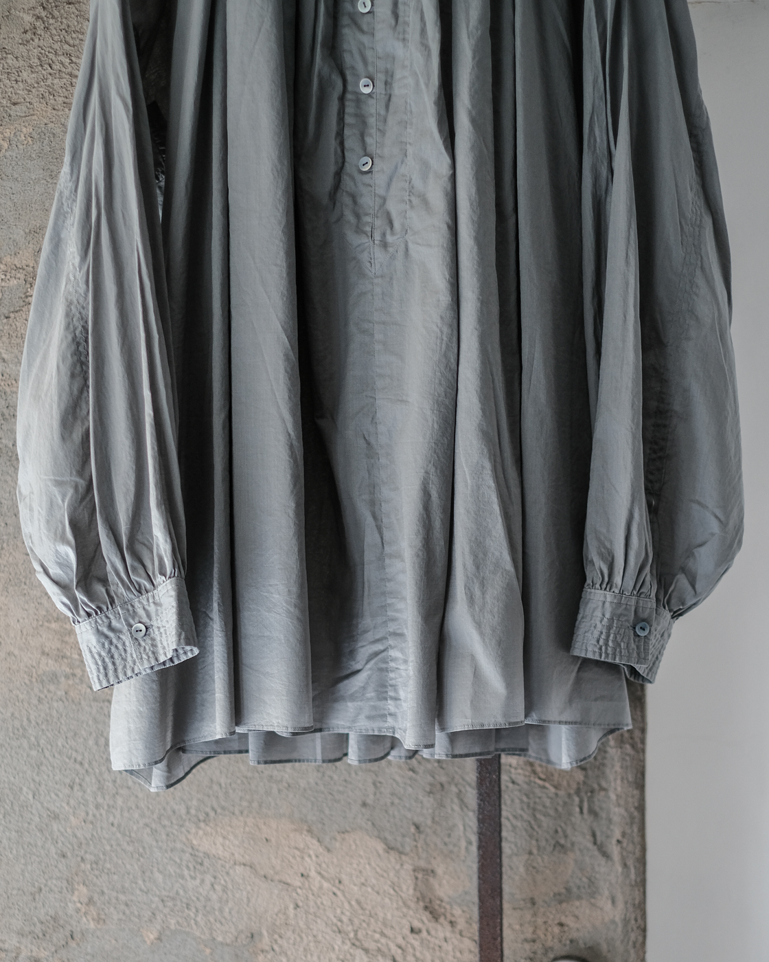 19世紀の古いスモックをベースに製作された細やかなギャザーに丁寧な縫製に思わず目が止まる、存在感のあるブラウス。