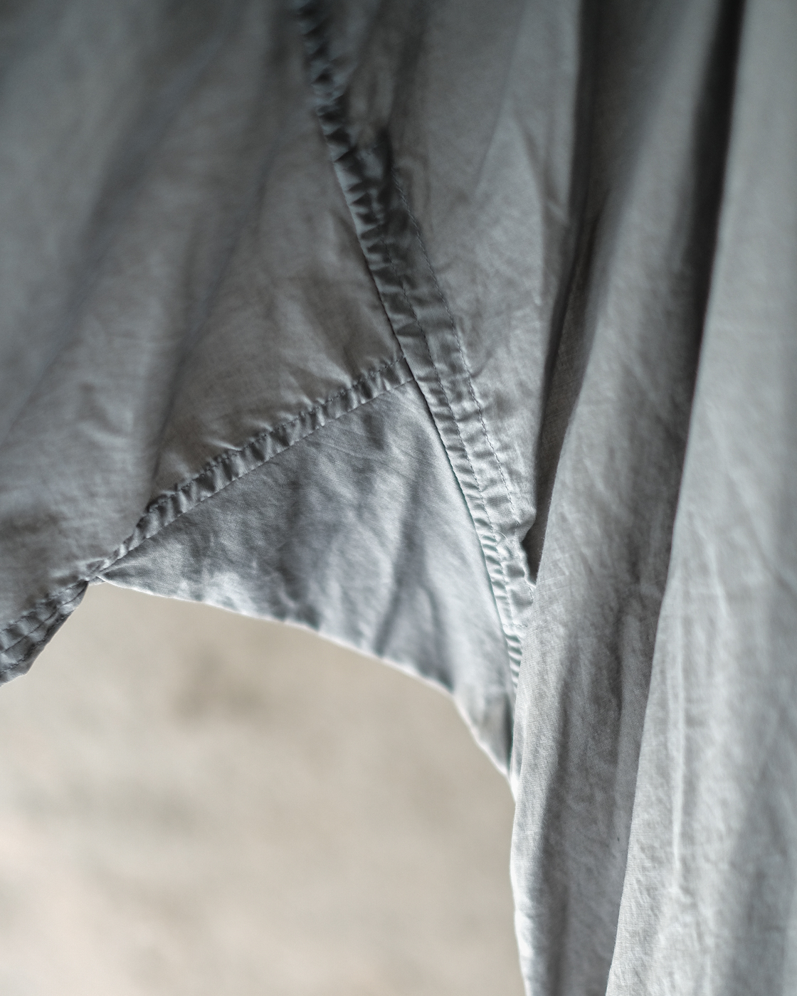 空気を含み軽やかでとても動きやすく、着用と洗いを繰り返す毎に落ち感が生まれ自分の体に馴染んでいく。