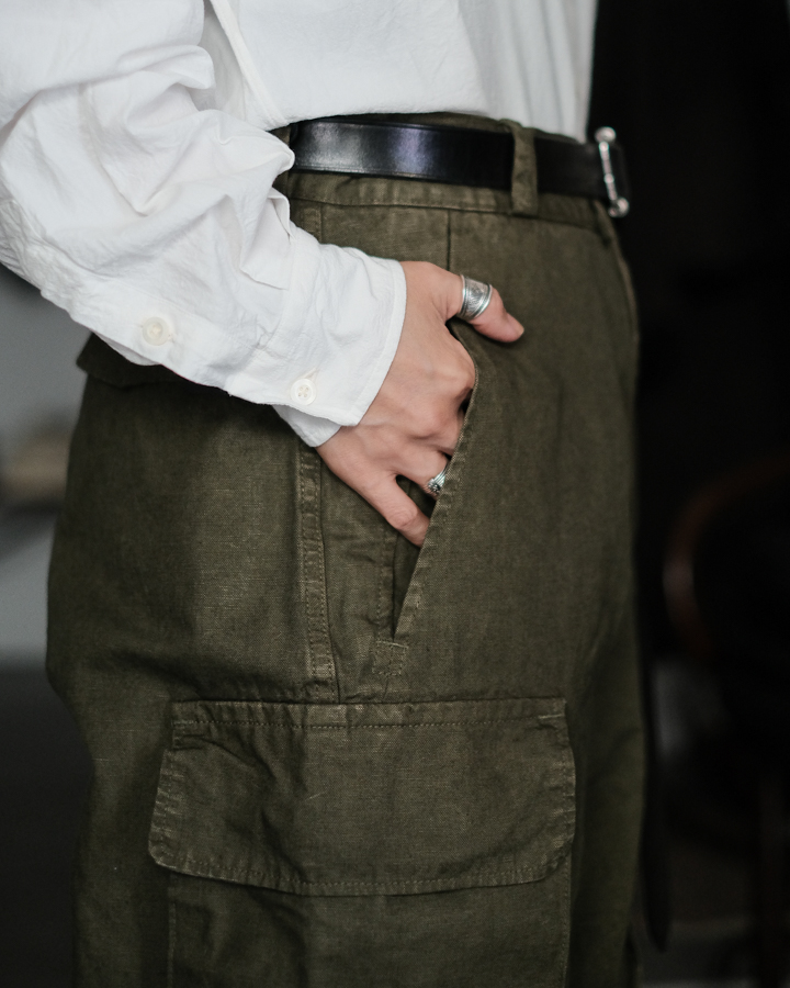 コットン×ヘンプの糸を使用したガシッと、良い意味でゴワつきと張り感のあるコットンキャンバス生地は、オリジナルさながらの味わい深い生地感。