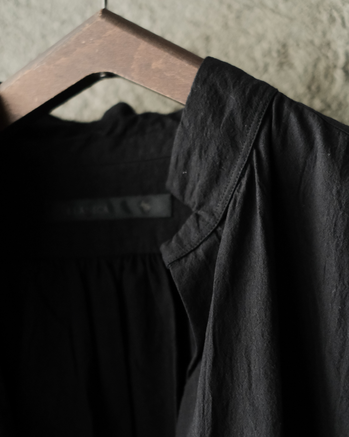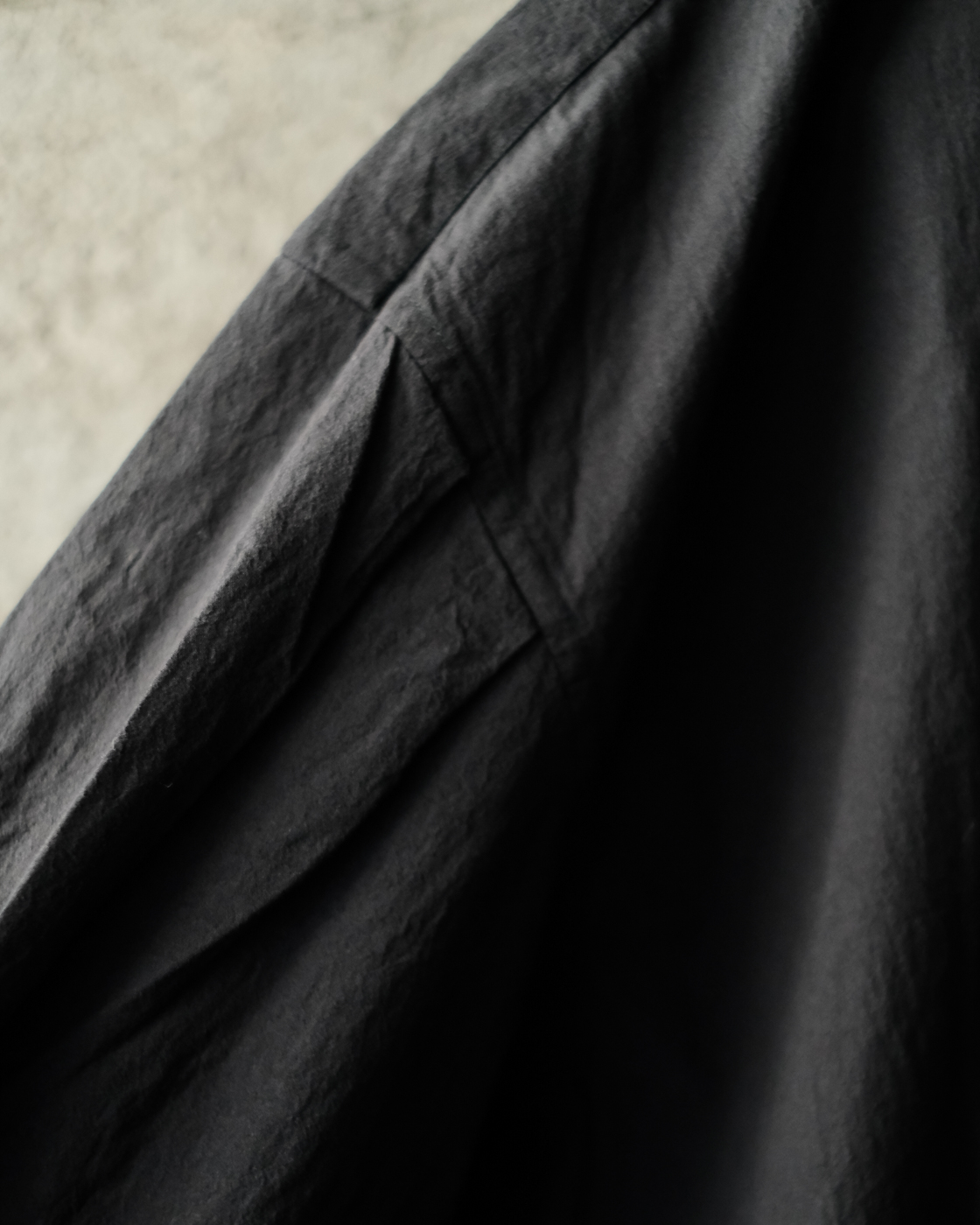 自分の肩にスッと馴染む、落ち感のあるラインから切り替え部分からタックが入り、袖先部分カフスのデザインもアクセントに。