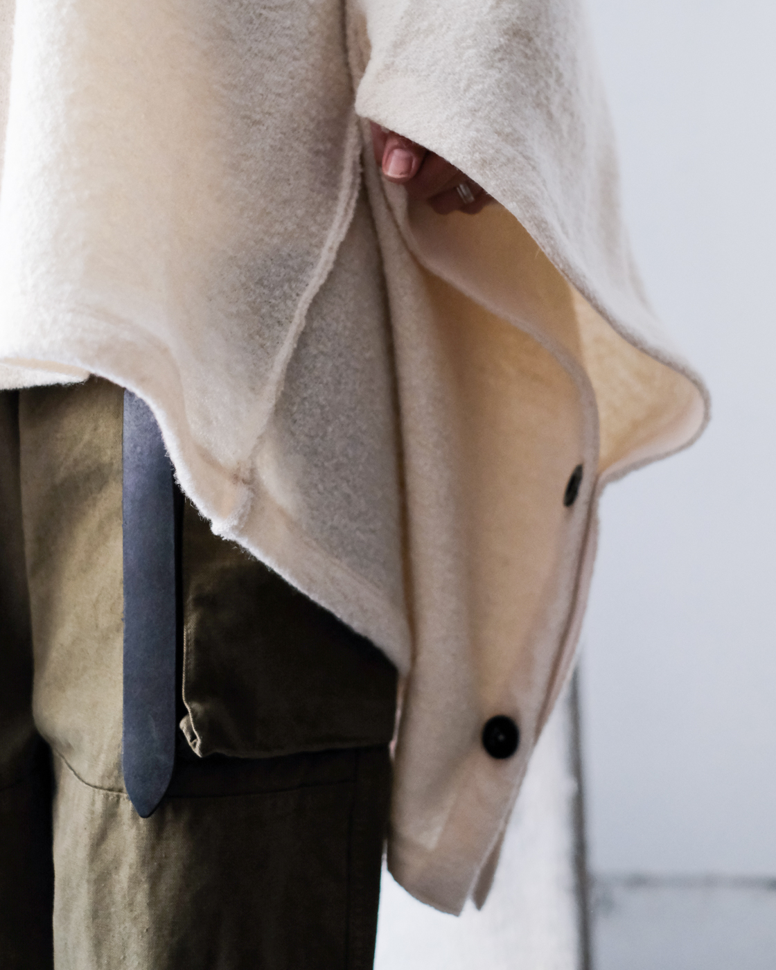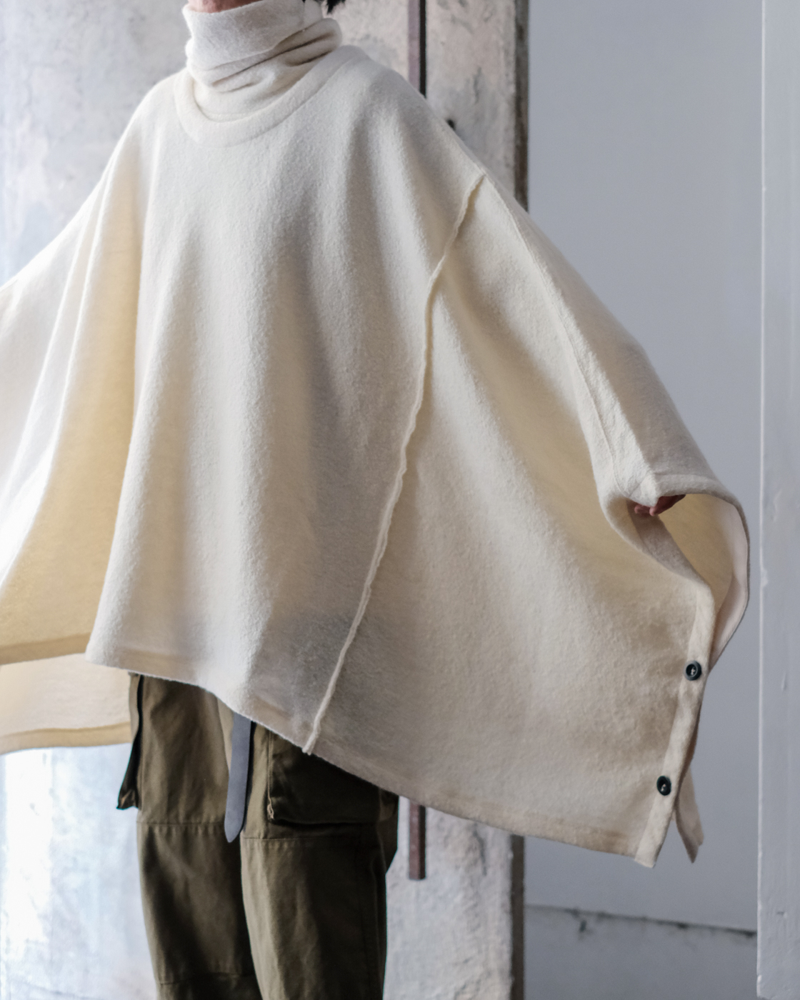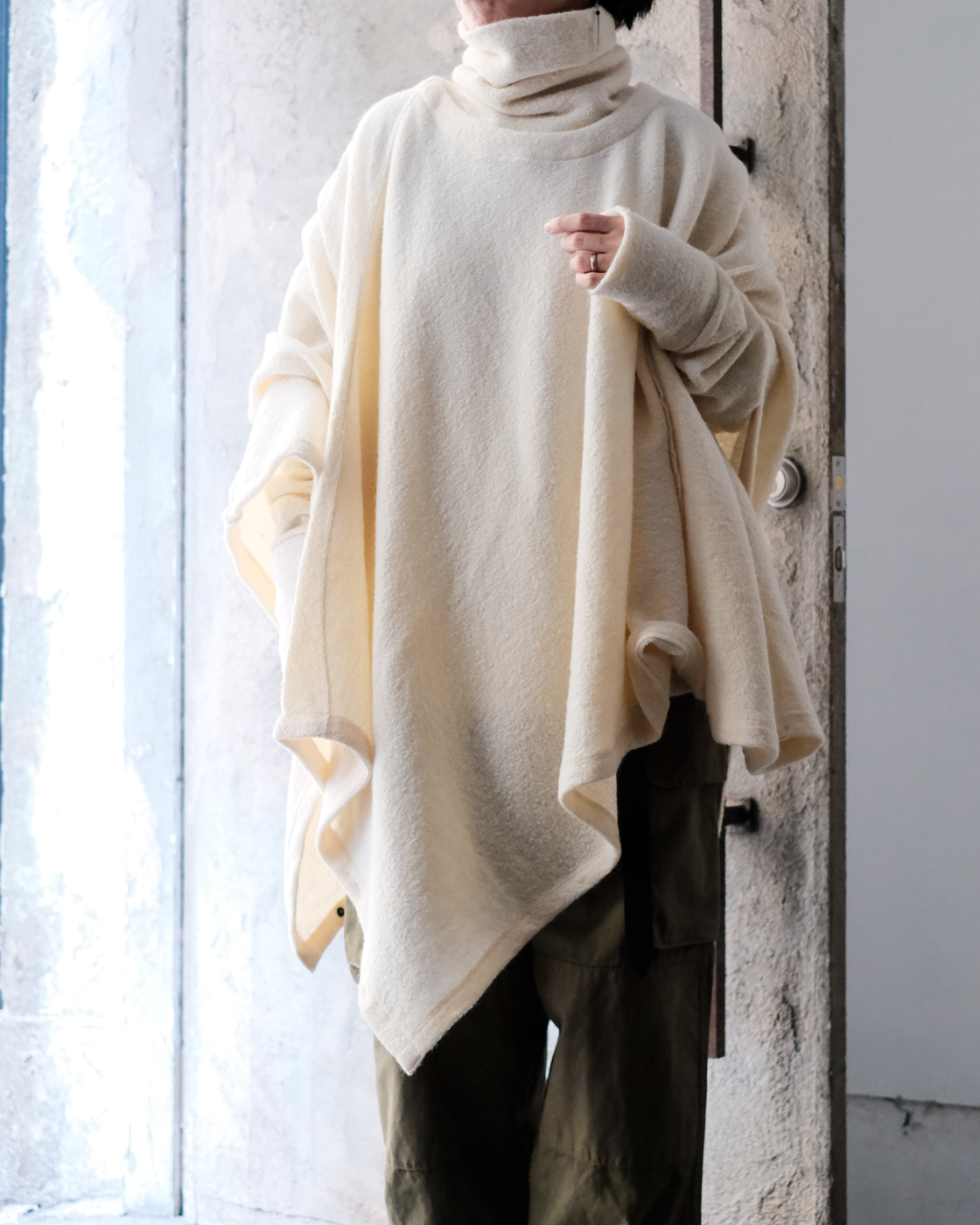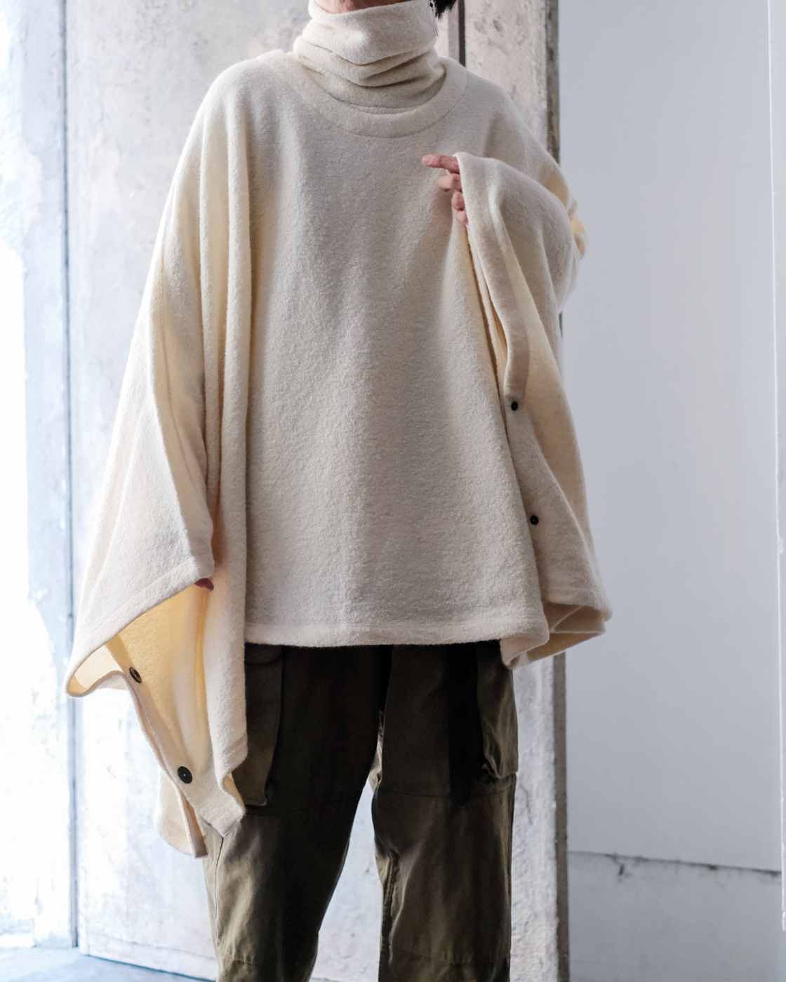 クリンプ性の高いシェットランドウールを贅沢に使用して製作されたポンチョ。