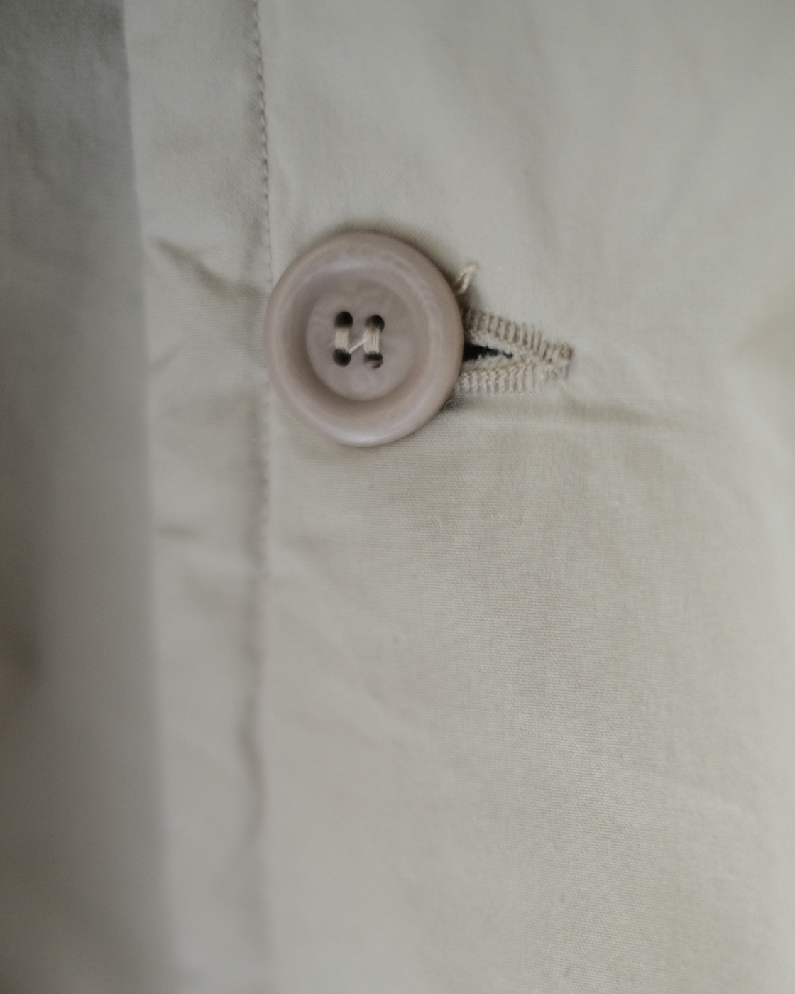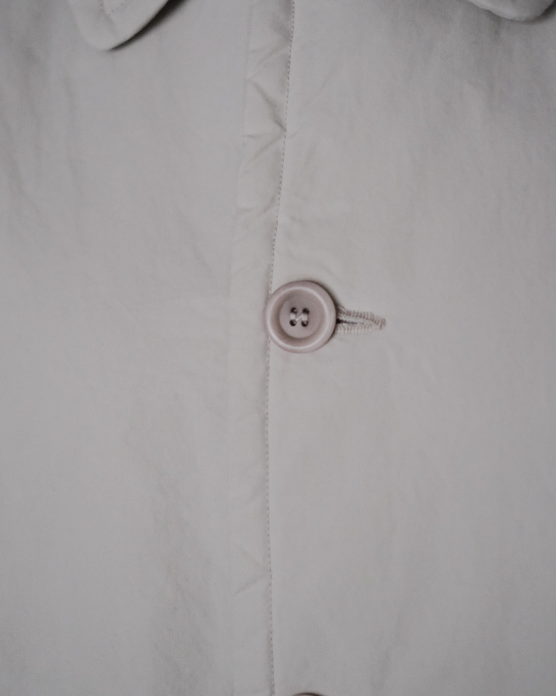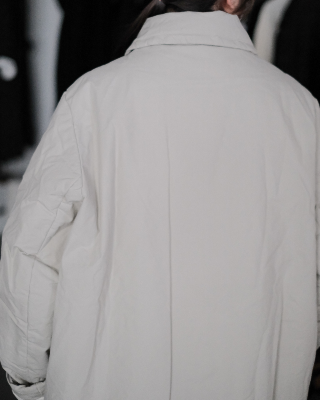 乾燥したワックス加工を施した、マットな表面を持つ緻密な綿のキャンバス生地を贅沢にたっぷりと使用したコート。