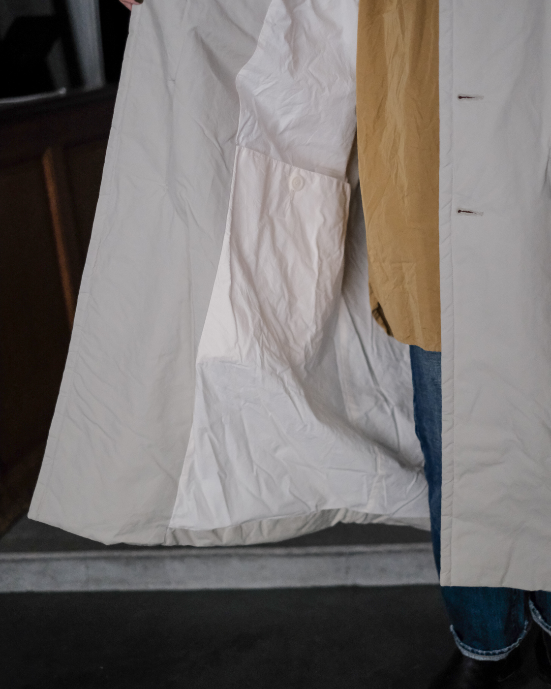 表、総裏地に中綿とこれだけ生地をたっぷりと使っているにも関わらず、軽やかな着心地に驚くほど。
