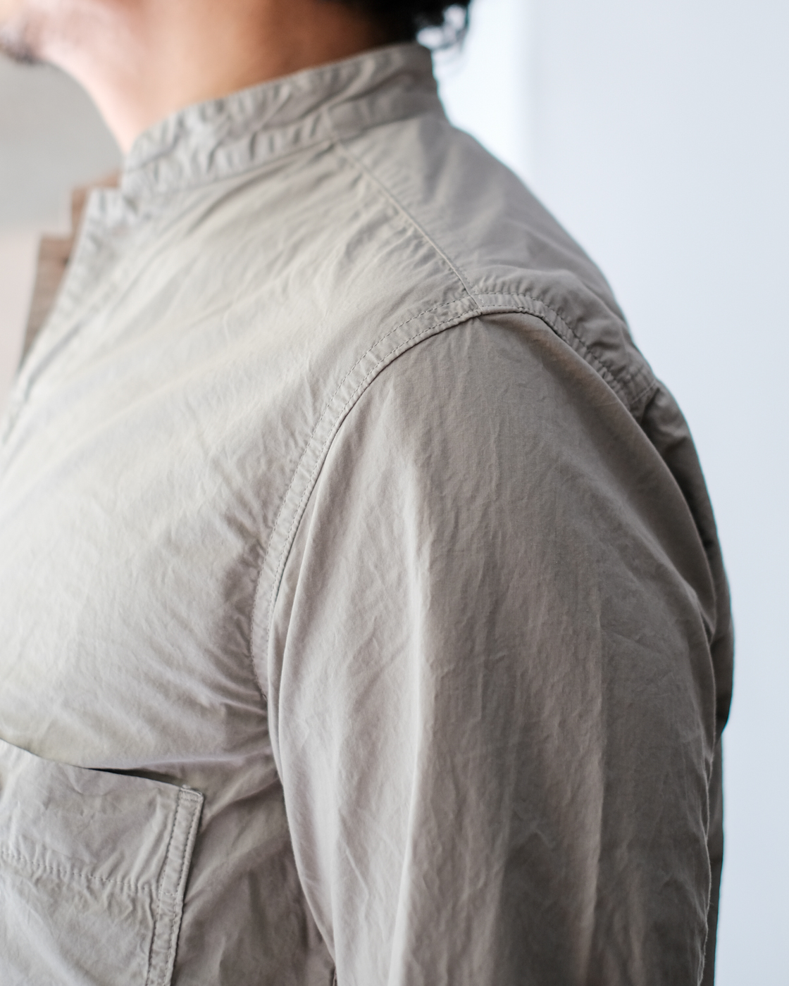 メキシコ原産のピマコットンを使用して織り上げられた高密度タイプライター生地は、しなやかさとハリがあり、さらりとした心地良い生地感が大変魅力的。