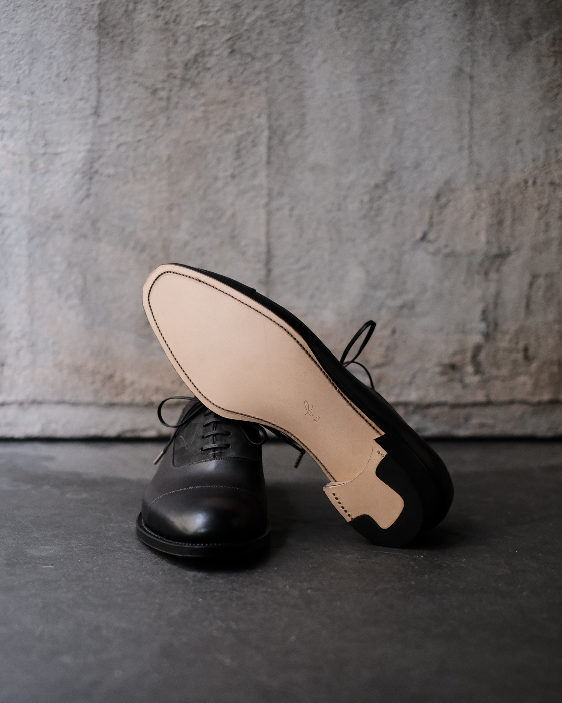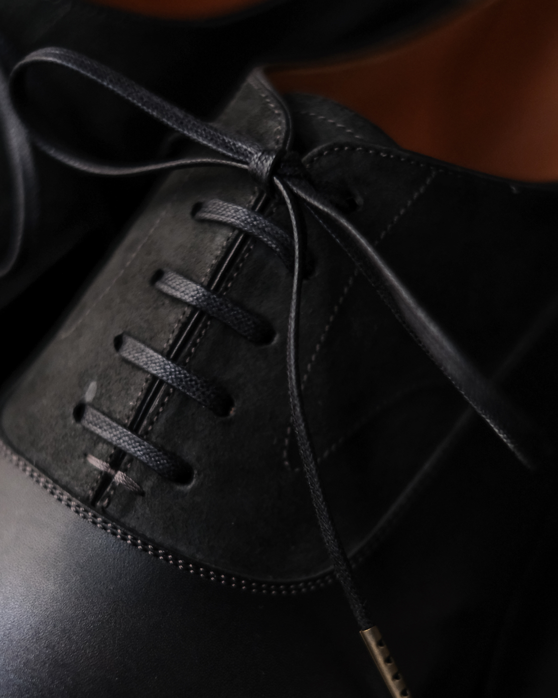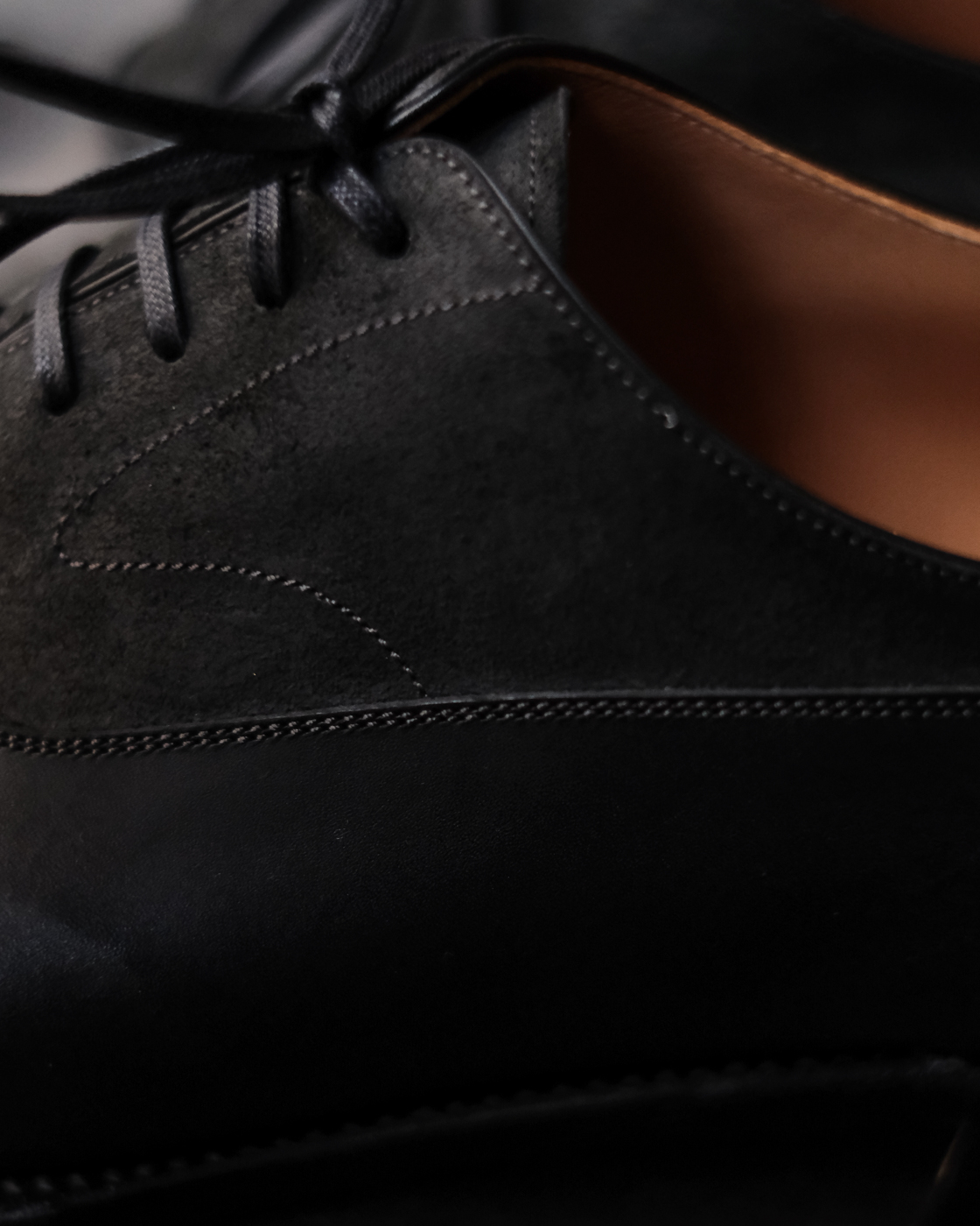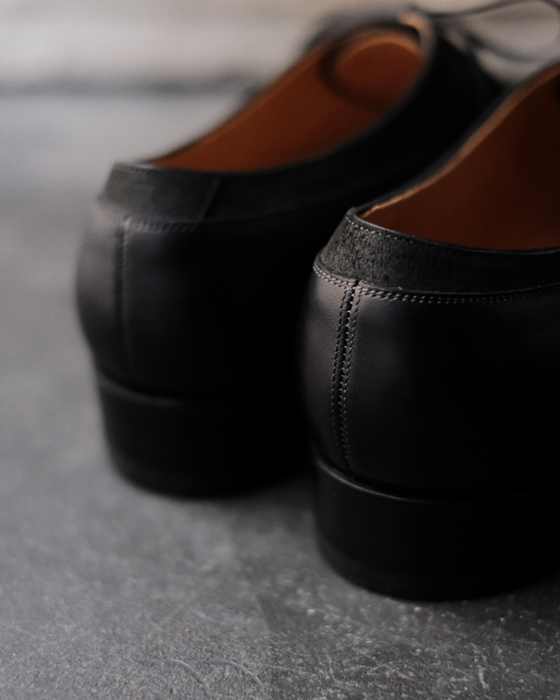 内羽根の靴に対してあまり使われることのないカンガルーリバースとカーフのコンビを当店ではセレクト。