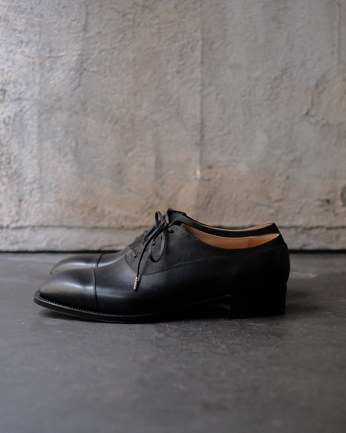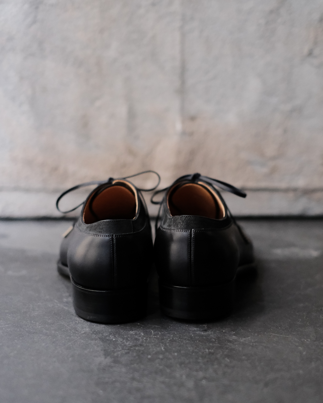 細見のスーツにだけ合うようなドレスシューズではなく、あくまでも日常的な服装にも合わせやすいバランスの内羽根を作りたいと思いました。とはデザイナー小島氏の言葉。