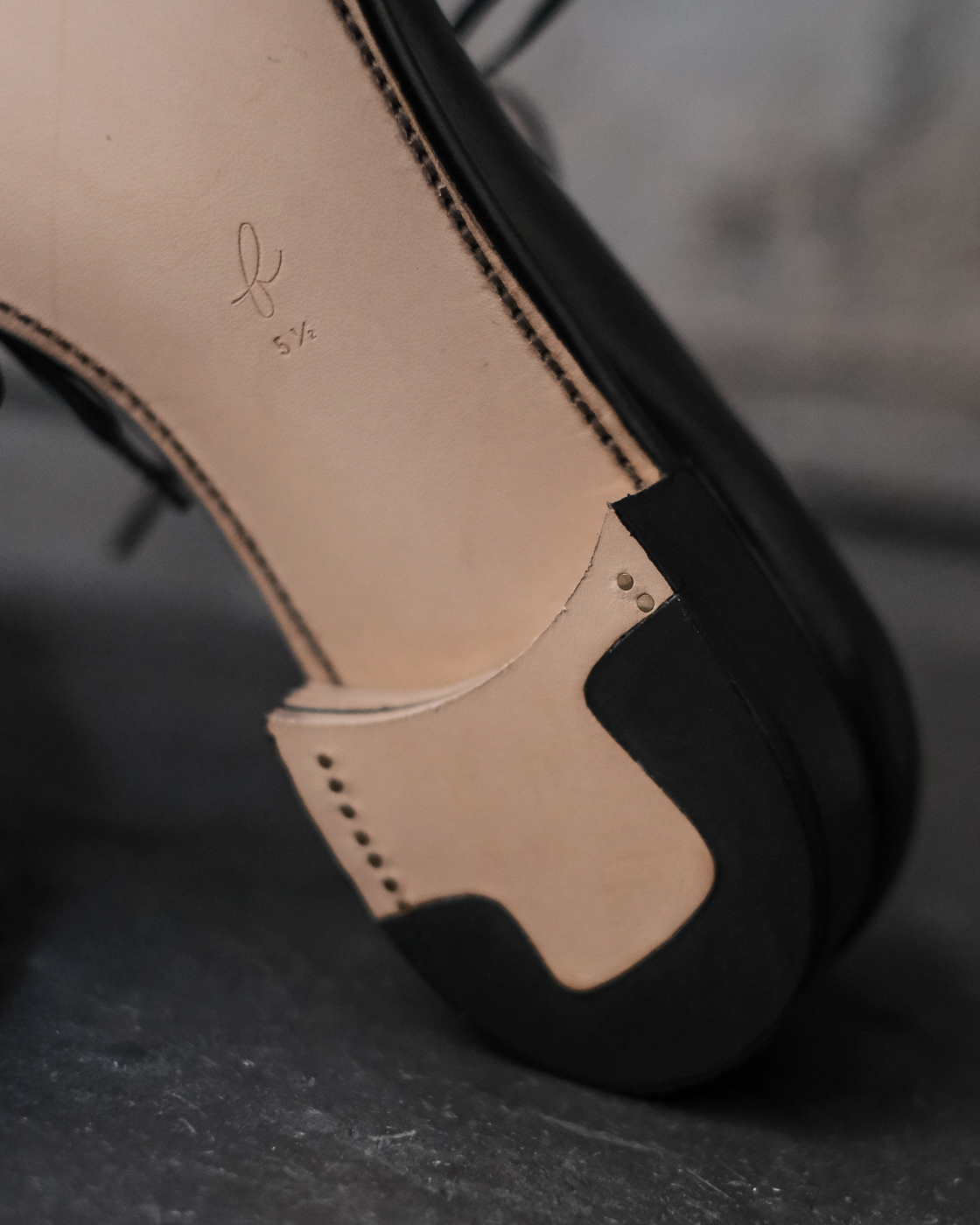 ホール部分の穴の間隔やどの角度から見ても美しいフォルムの靴は、細かな部分にまで手間と拘りが詰まっています。