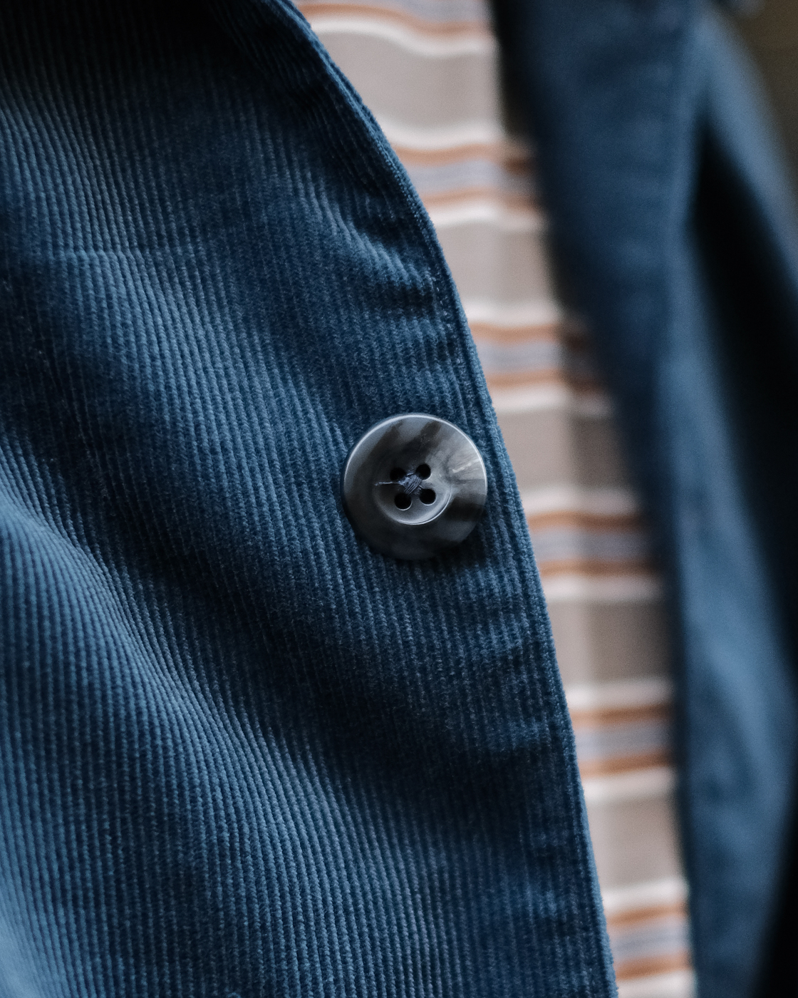 マットな同色のボタンがさらにジャケットを引き立てており、細やかなパーツまでの拘りを感じます。
