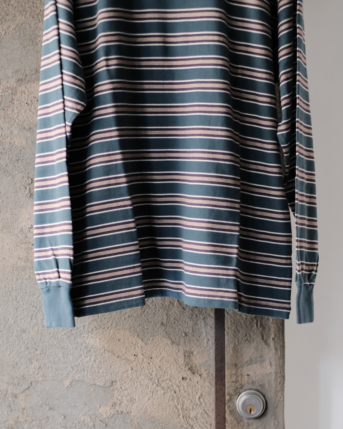 一枚ではもちろん、ジャケットのインナーやインナーの重ね着で少しボーダーを見せるetc…スタイルのアクセントとなる一着。