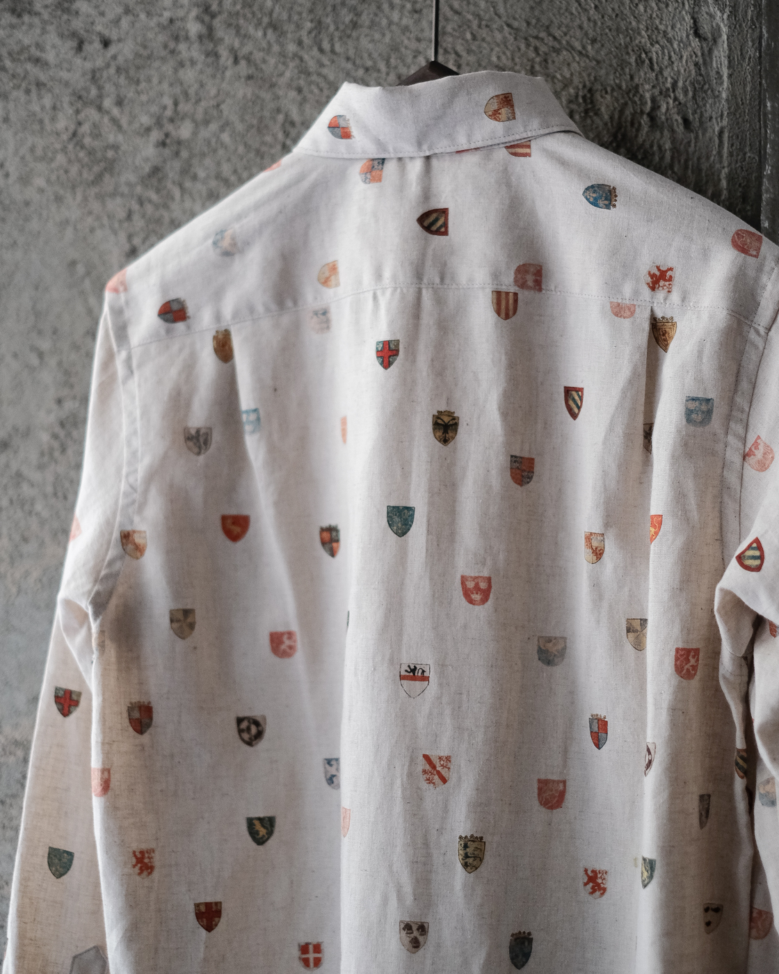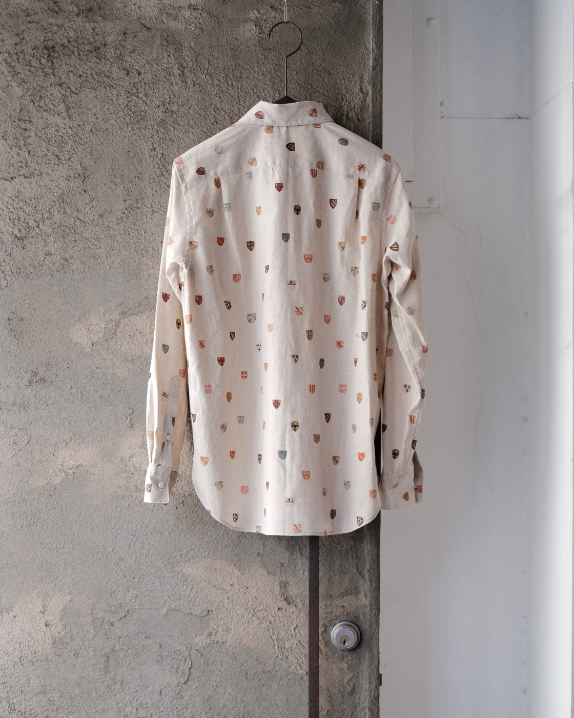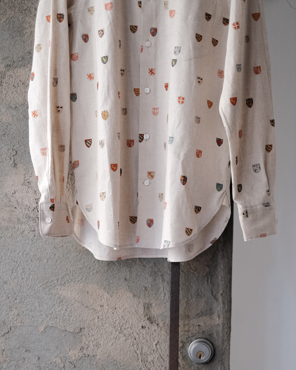 いくつもの紋章が多数描かれたOLDMAN’S TAILORならではの柄が、クラシックで新鮮なCOAT OF ARMS