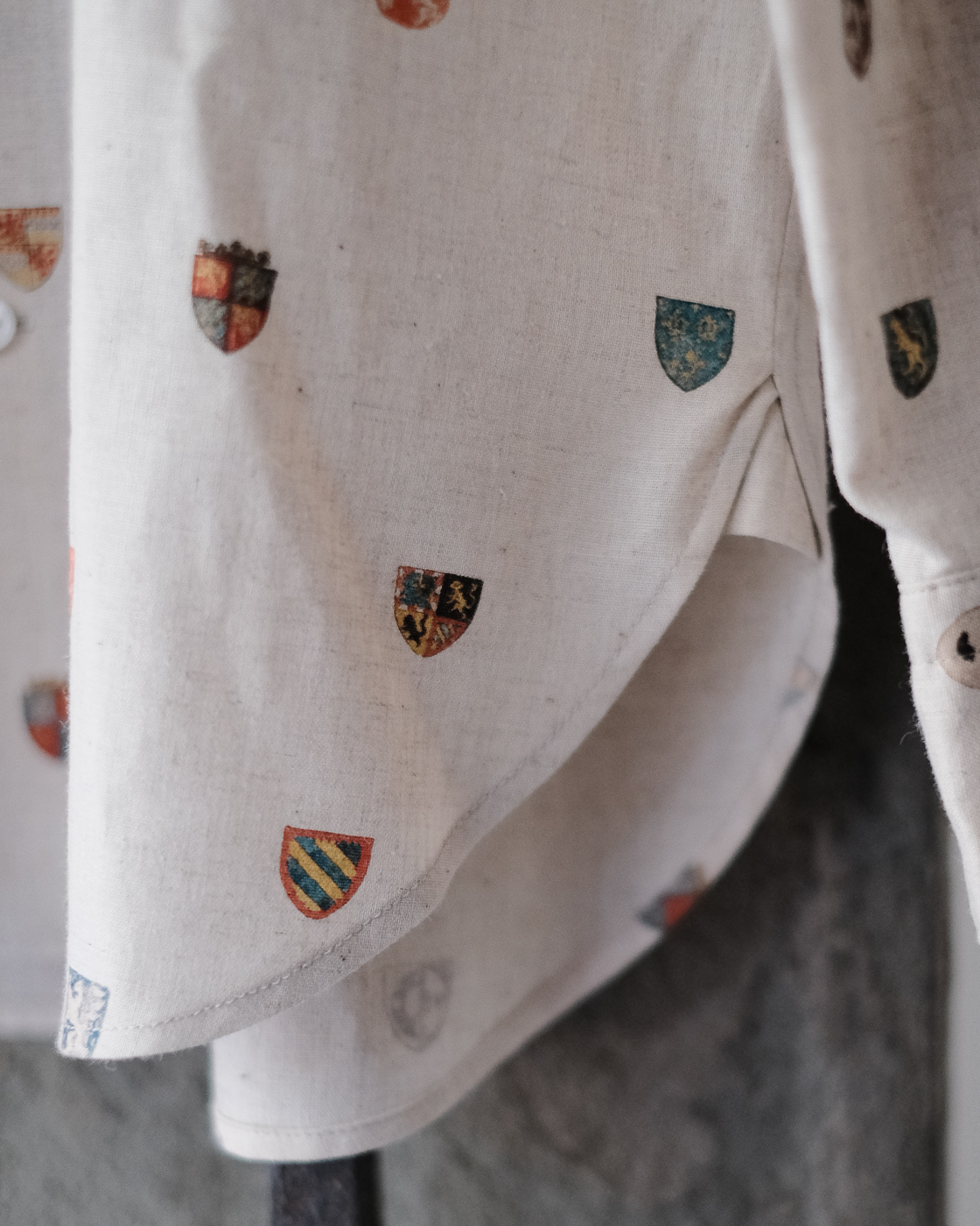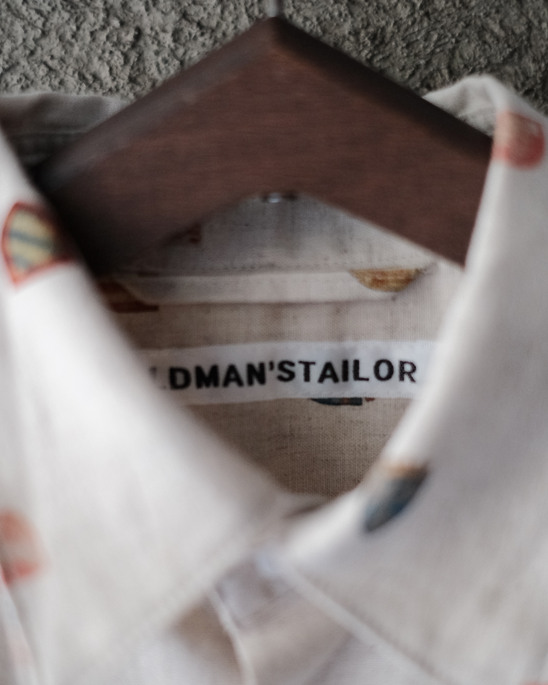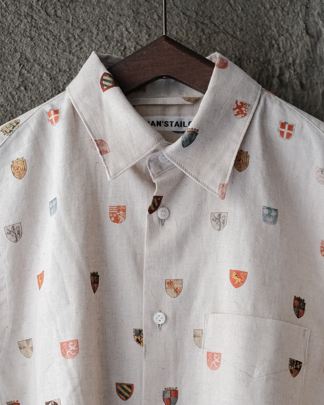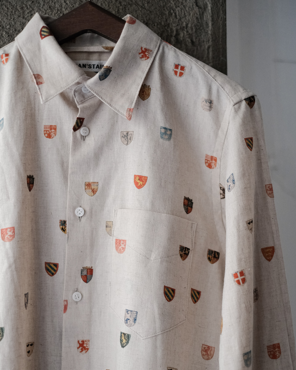 いくつもの紋章が多数描かれたOLDMAN’S TAILORならではの柄が、クラシックで新鮮なCOAT OF ARMS