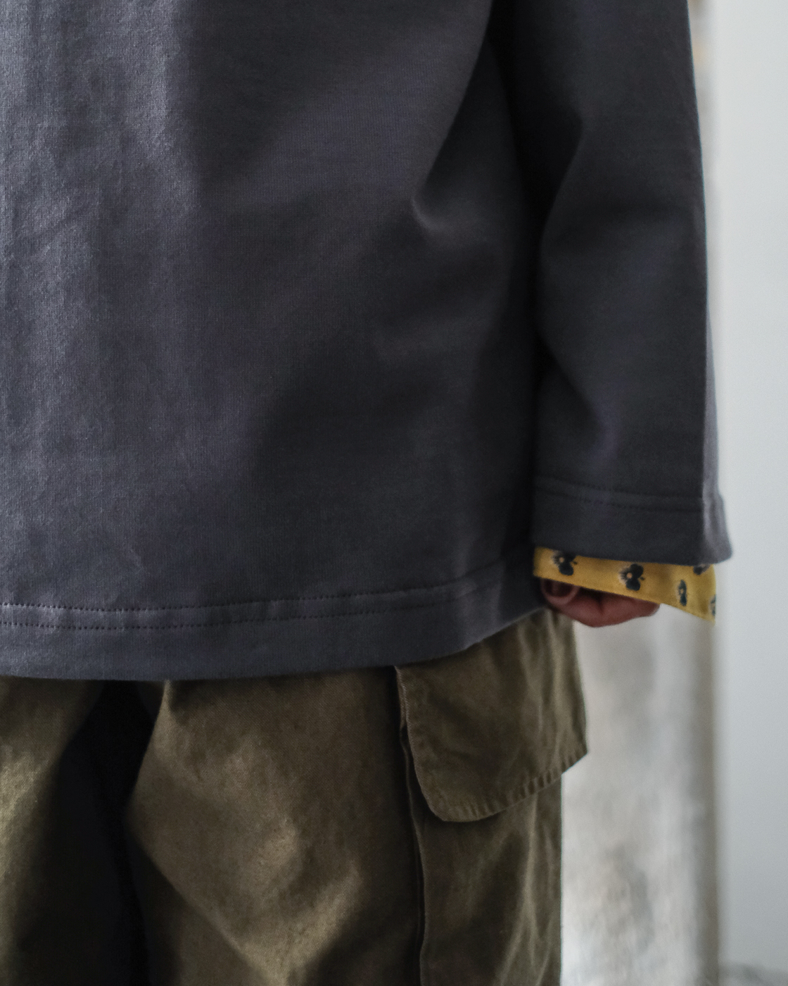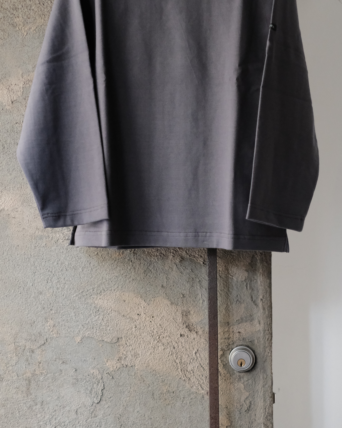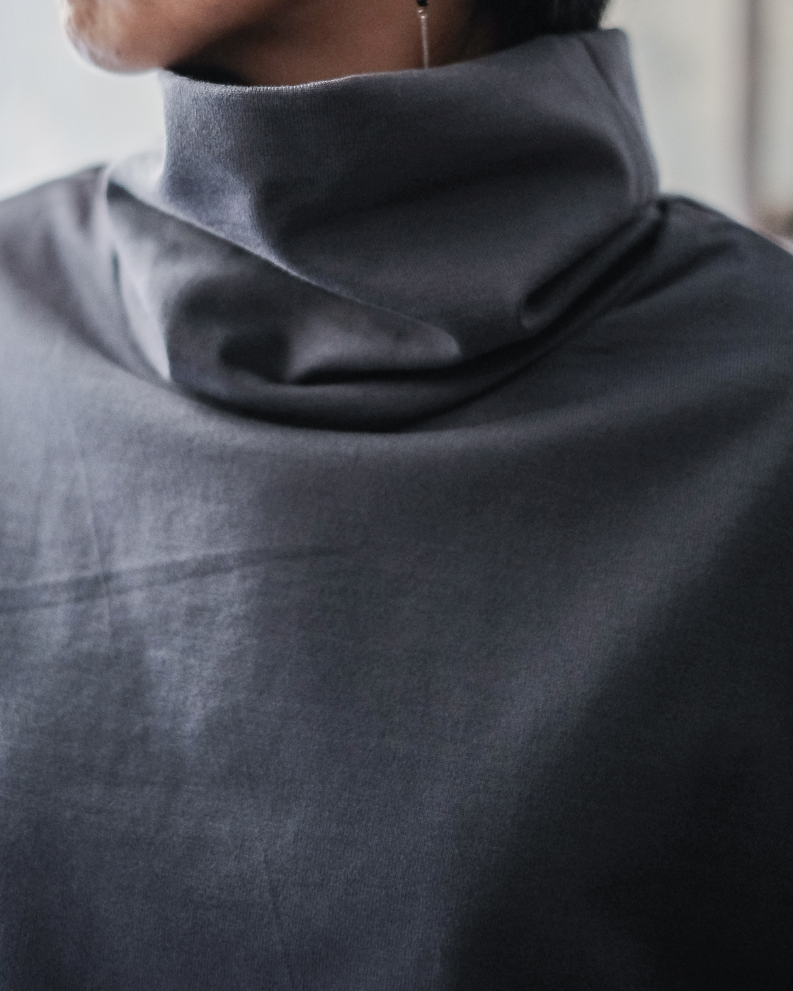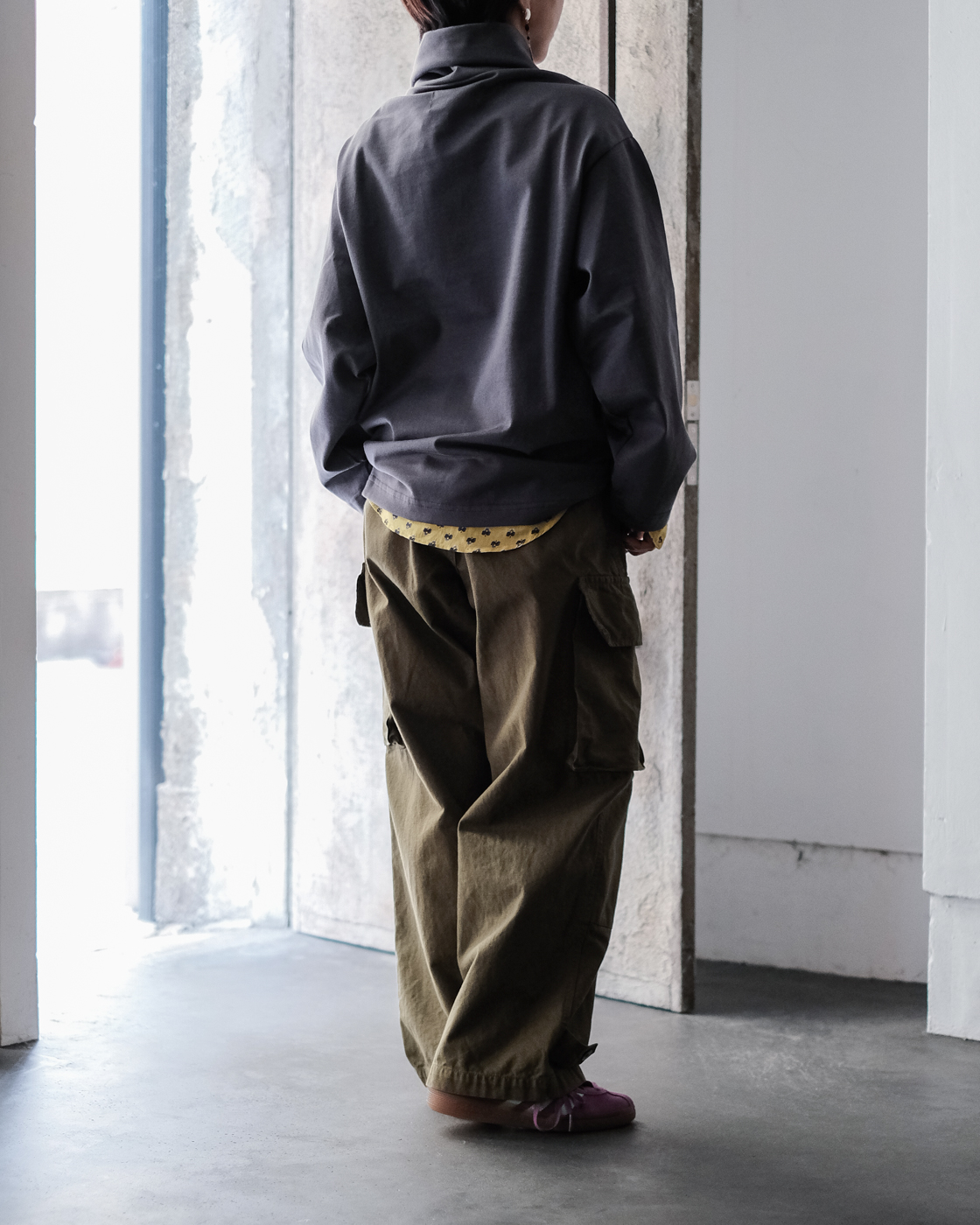 特徴的なボリュームあるタートル部分がこのカットソーをより印象付け、全体的にリラックス感があり、コンパクトなサイズバランスがとても気に入っています。