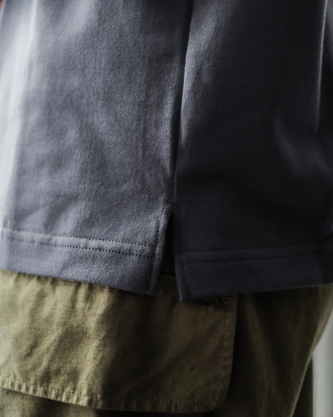 フランス バスク地方で60年以上営んでいるカットソーメーカーで生産され、生地を編むことから裁断、縫製に至るまで全ての工程を行っているOUTIL拘りの素材にて製作。