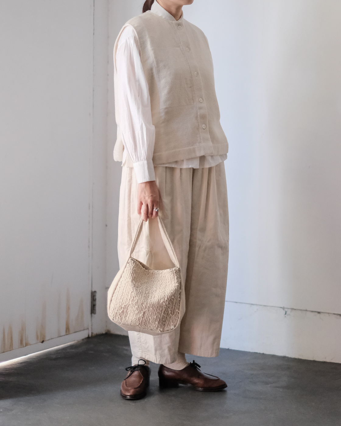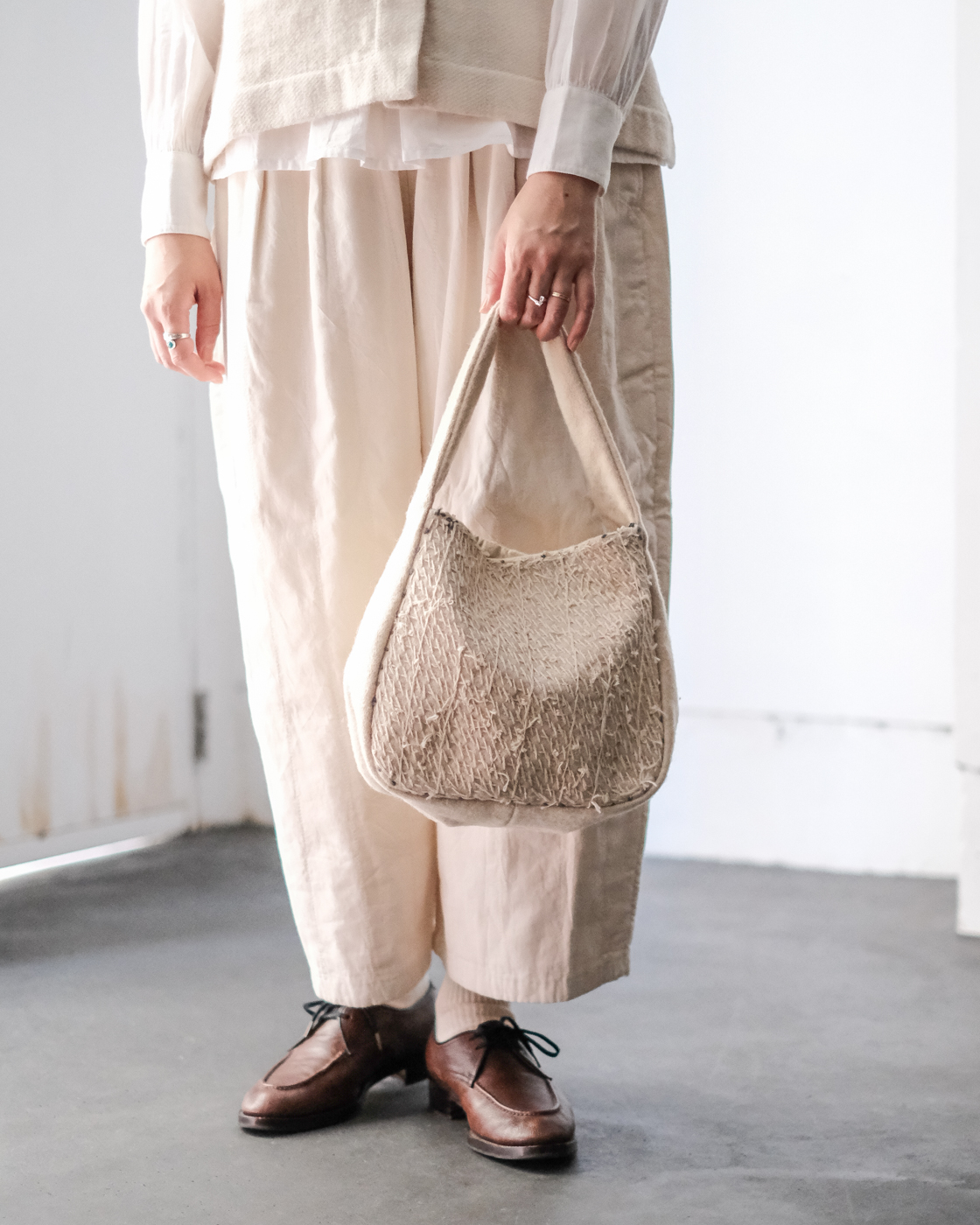 デンマーク出身のテキスタイルデザイナー、ベス・ニールセンは、手織りのテキスタイルへの情熱を追求するため、2003年にKhadi and Coを設立しました。彼女は30年以上にわたり、インド中を旅し、最も熟練した職人を探し求めてきました。 インドのテキスタイル工芸の豊かな伝統を探求する長い旅を通して、彼女はカディの深い文化的意味を理解するようになりました。カディは質素な綿織物であり、インド独立運動の象徴でもあります。 手紡ぎ、手織りの布であるカディは、ベス・ニールセンにとって長年のインスピレーションであり、まさに彼女のライフワークです。ガンジーの自立のメッセージを受け継ぐ彼女は、職人技と手織りの生地が不可欠であると確信しています。 手紡ぎの糸は紛れもなくオーガニックな品質を備えています。衣服を軽くし、通気性に優れ、独特の柔らかさで肌を優しく包み込みます。