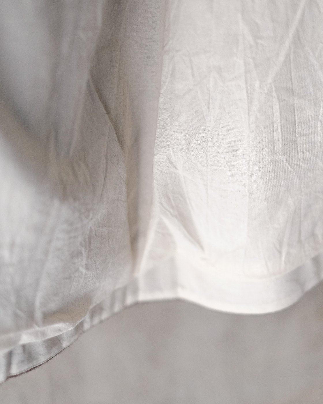 デンマーク出身のテキスタイルデザイナー、ベス・ニールセンは、手織りのテキスタイルへの情熱を追求するため、2003年にKhadi and Coを設立しました。彼女は30年以上にわたり、インド中を旅し、最も熟練した職人を探し求めてきました。 インドのテキスタイル工芸の豊かな伝統を探求する長い旅を通して、彼女はカディの深い文化的意味を理解するようになりました。カディは質素な綿織物であり、インド独立運動の象徴でもあります。 手紡ぎ、手織りの布であるカディは、ベス・ニールセンにとって長年のインスピレーションであり、まさに彼女のライフワークです。ガンジーの自立のメッセージを受け継ぐ彼女は、職人技と手織りの生地が不可欠であると確信しています。 手紡ぎの糸は紛れもなくオーガニックな品質を備えています。衣服を軽くし、通気性に優れ、独特の柔らかさで肌を優しく包み込みます。