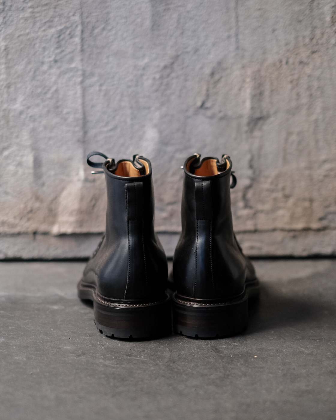 クラスは繊維が非常に緻密な馬の臀部のみを切り取ったという大変貴重な素材で、履き込む毎に自然な鈍い光沢感が出て味わい深く変化していく様が楽しみなレザー。