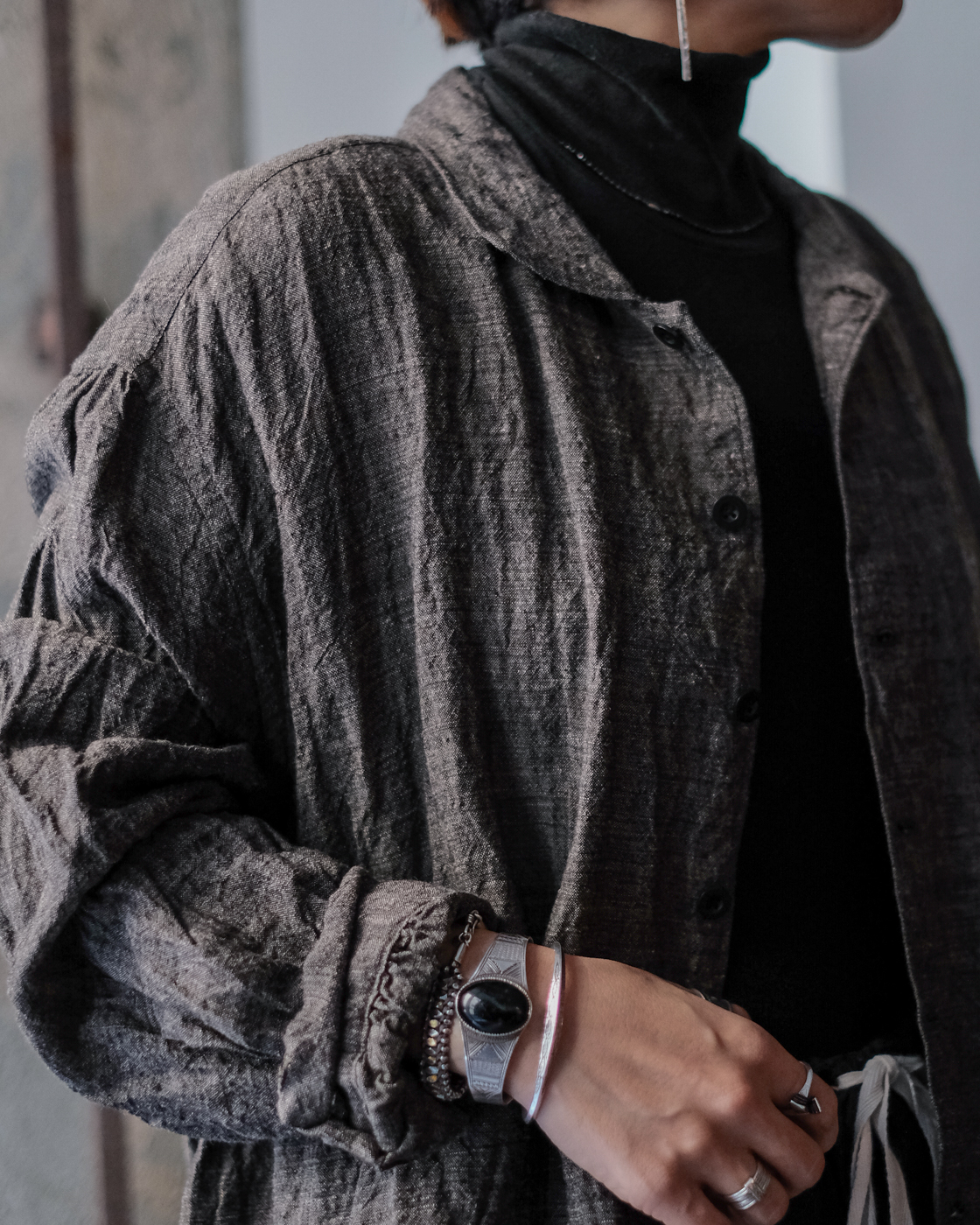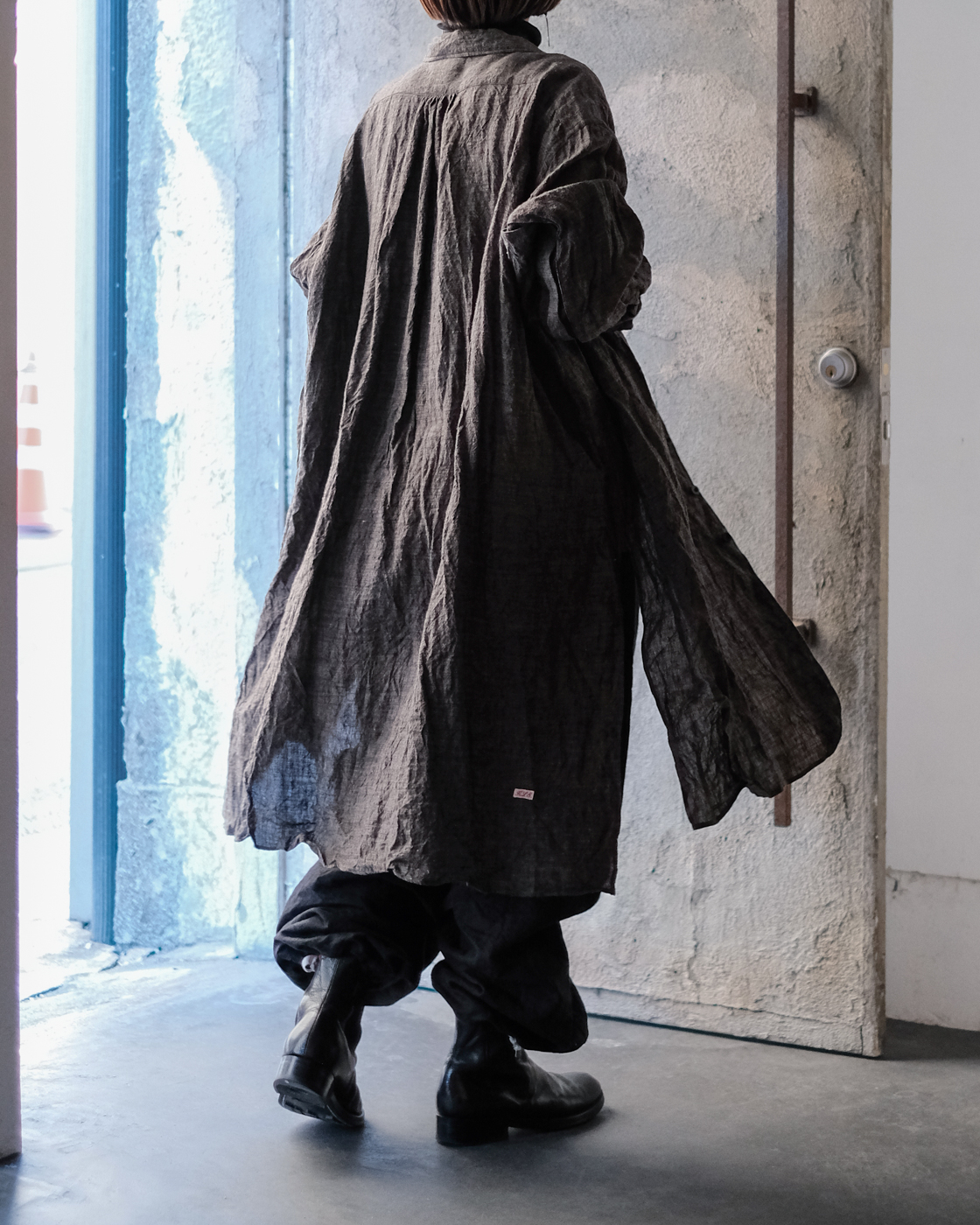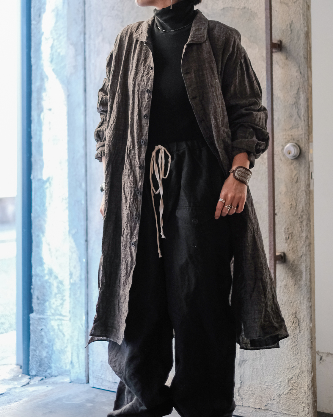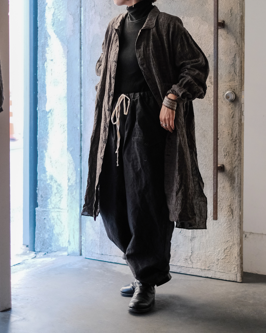 ロングシャツですが、まるでコートのような存在感。