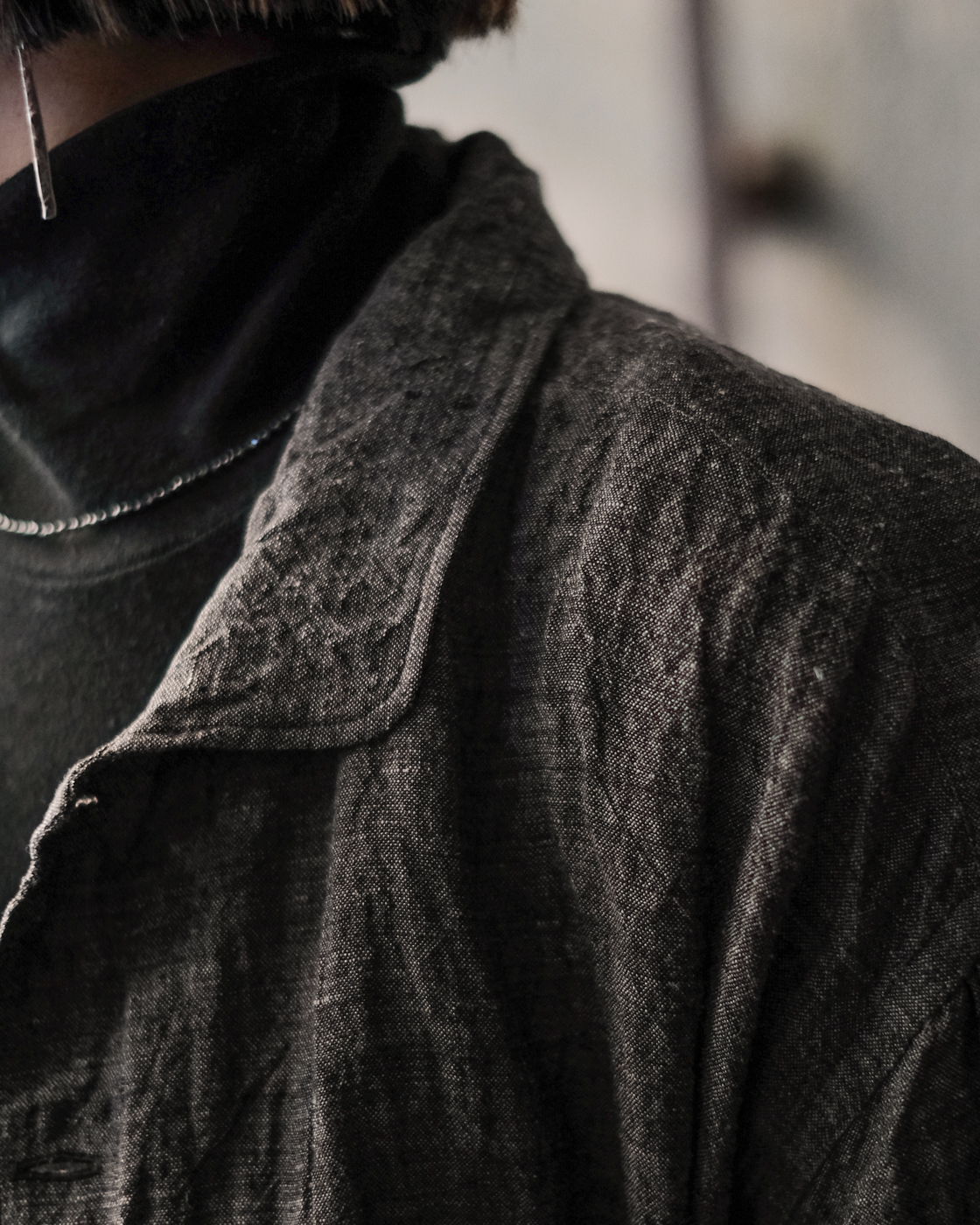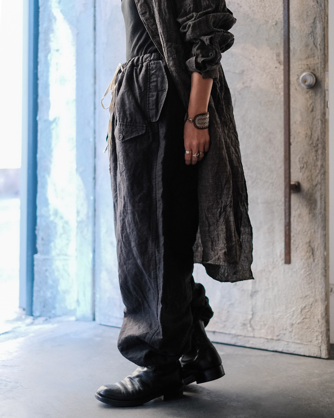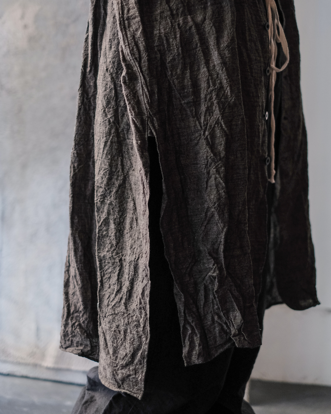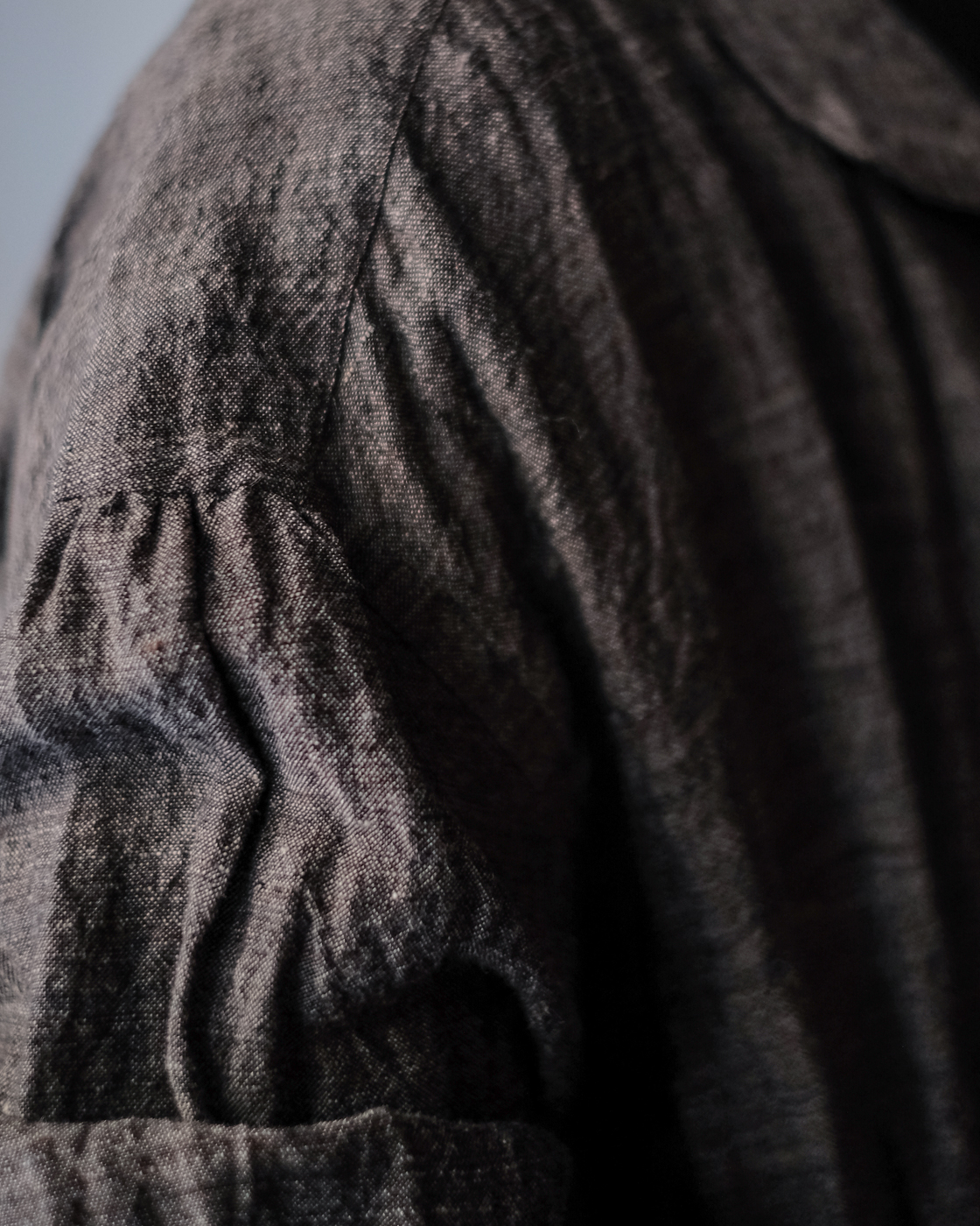 素材は上質で貴重なリネン素材。東洋とも西洋とも見える古い色調を目指したリネンシャンブレー。