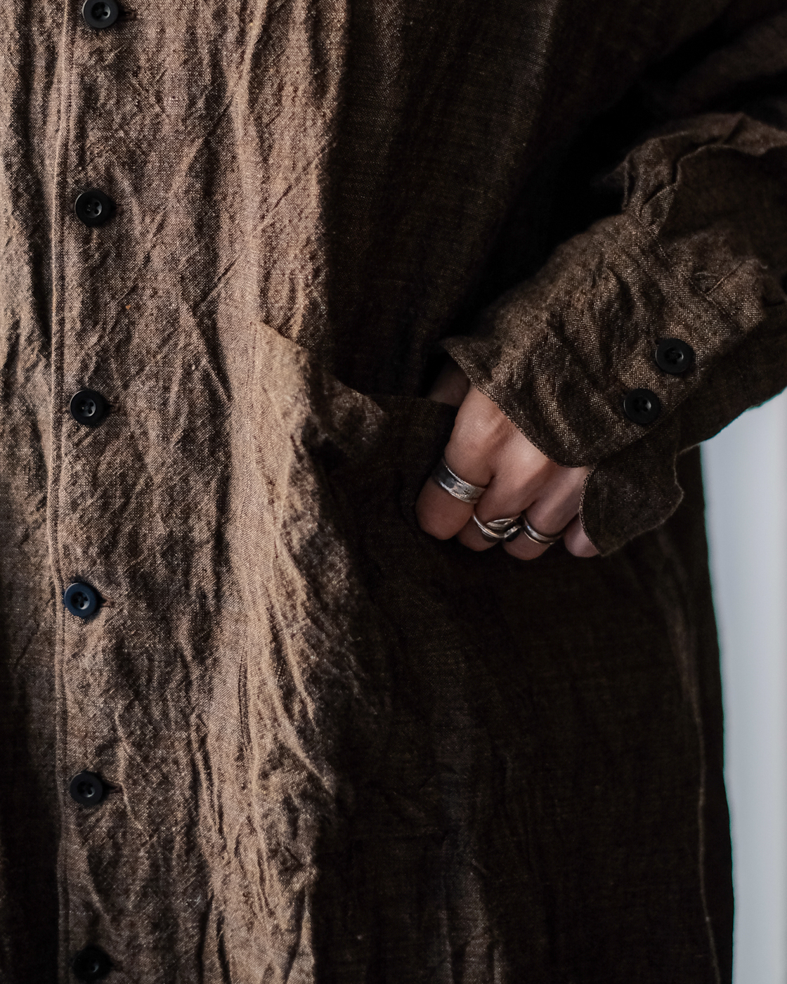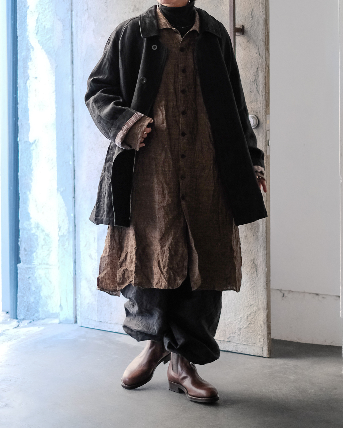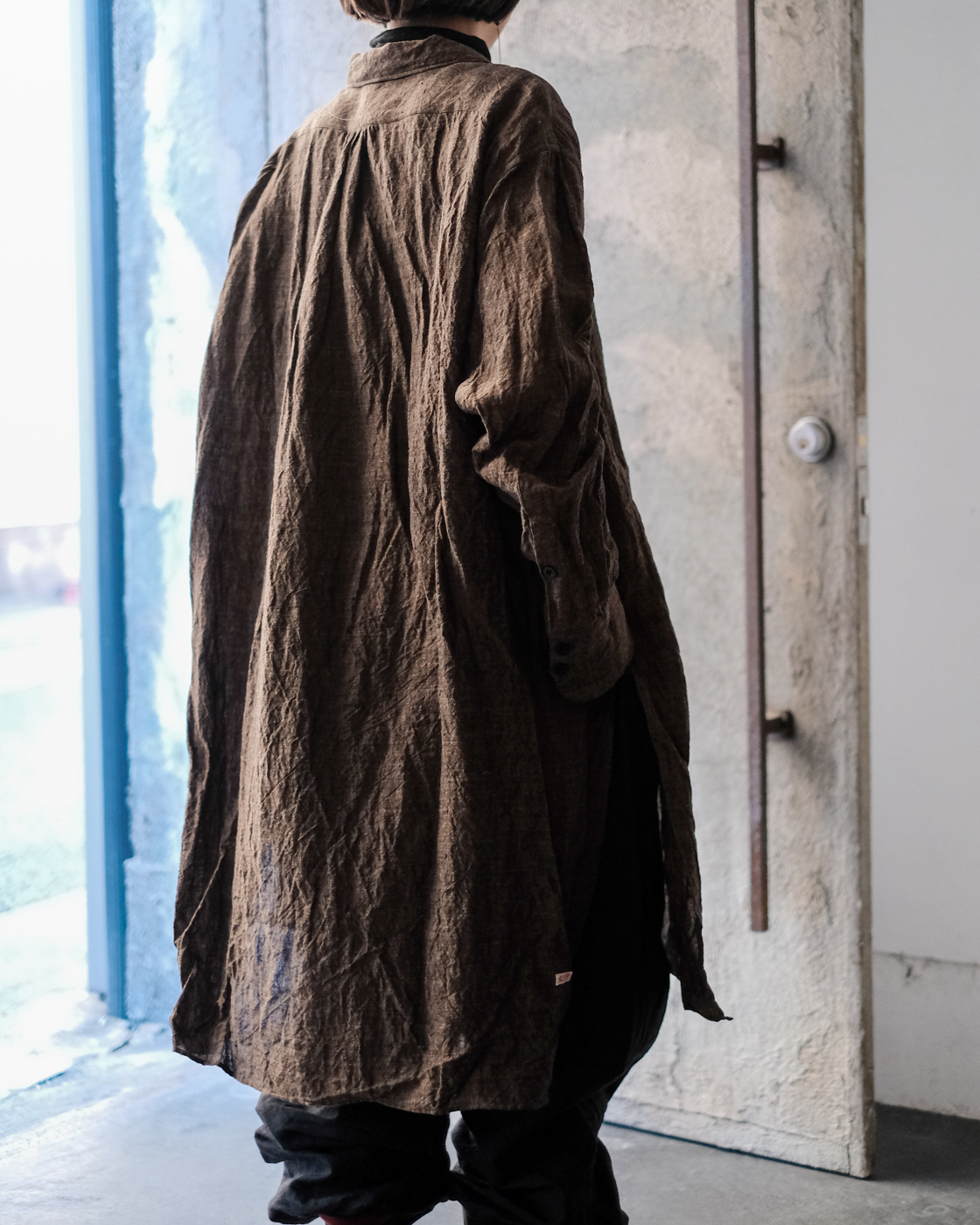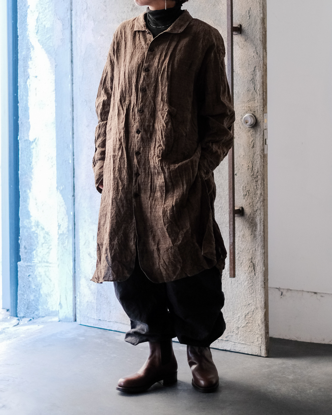 ロングシャツですが、まるでコートのような存在感。