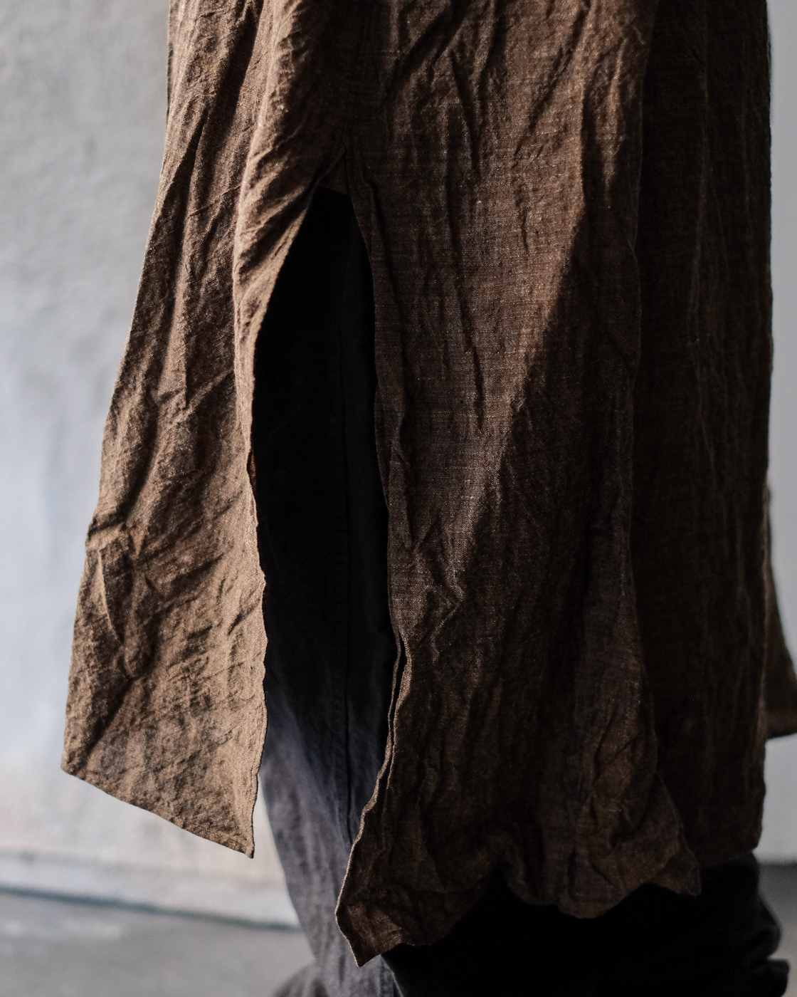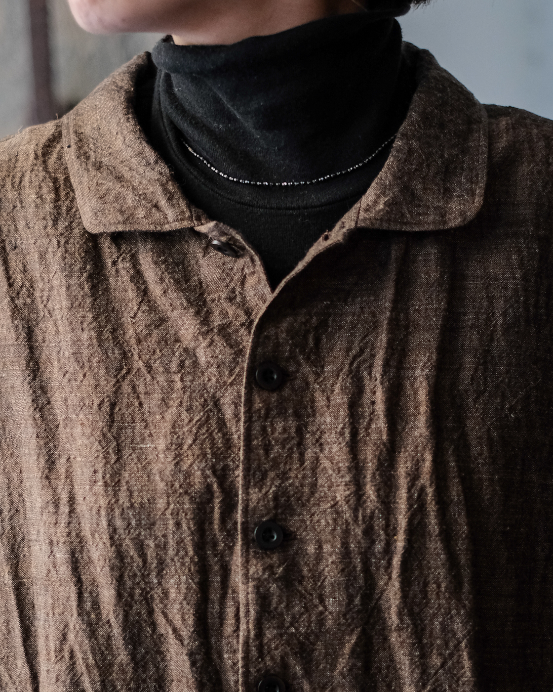素材は上質で貴重なリネン素材。東洋とも西洋とも見える古い色調を目指したリネンシャンブレー。