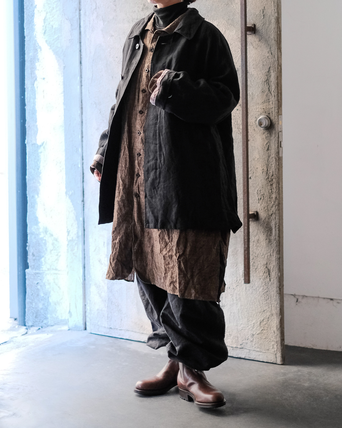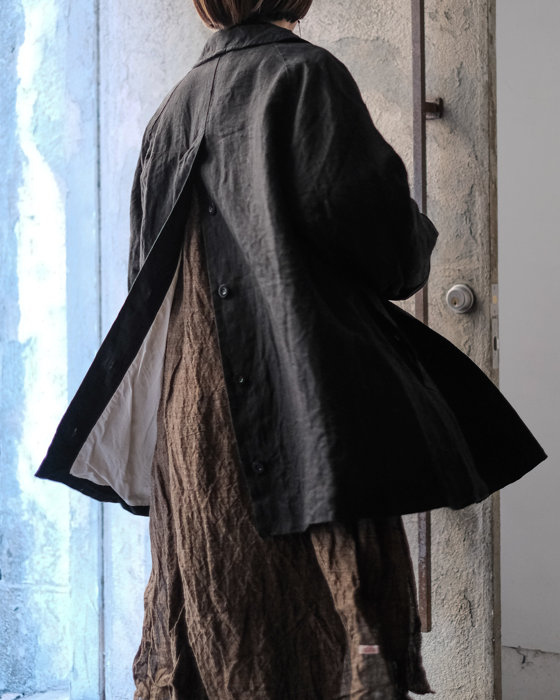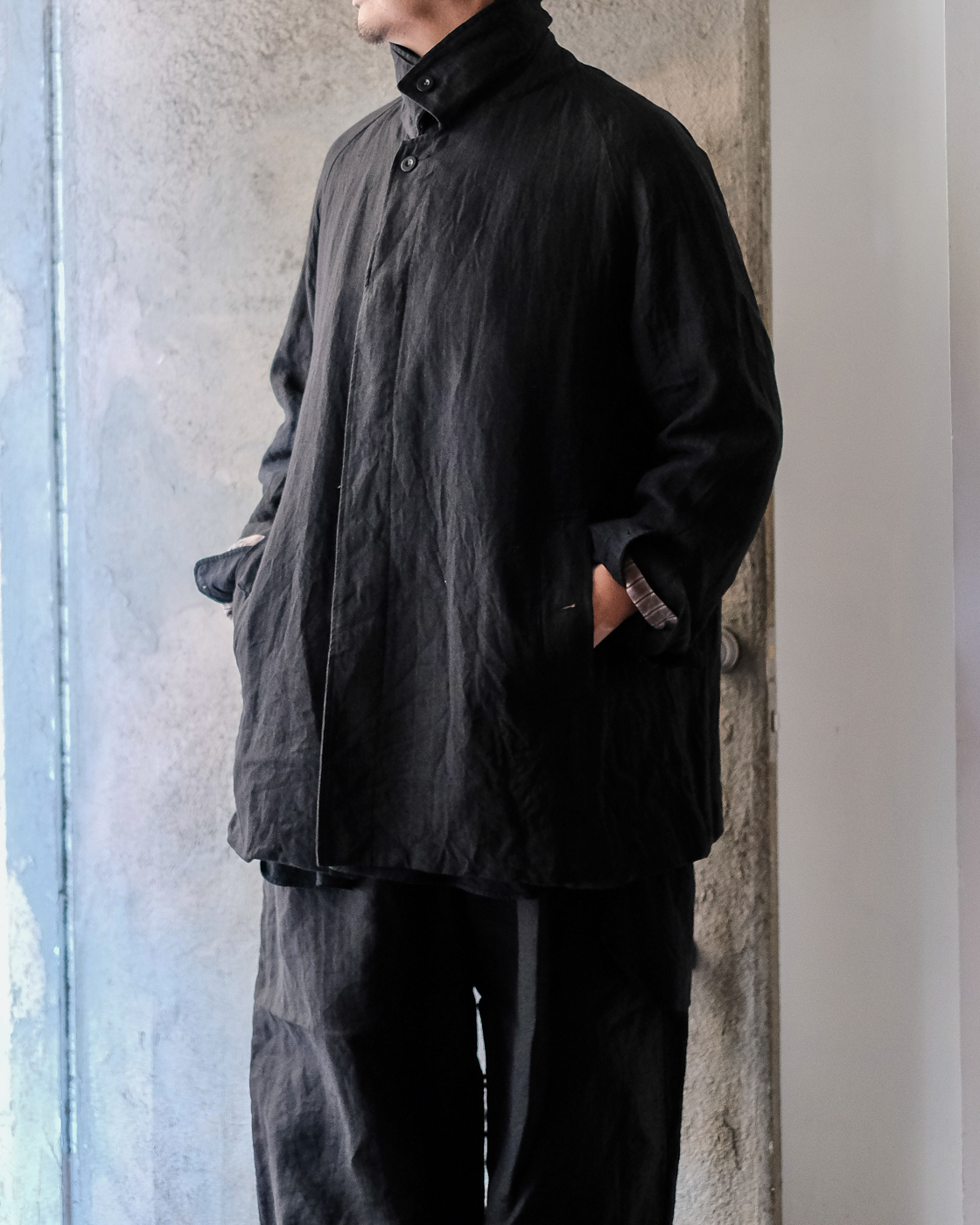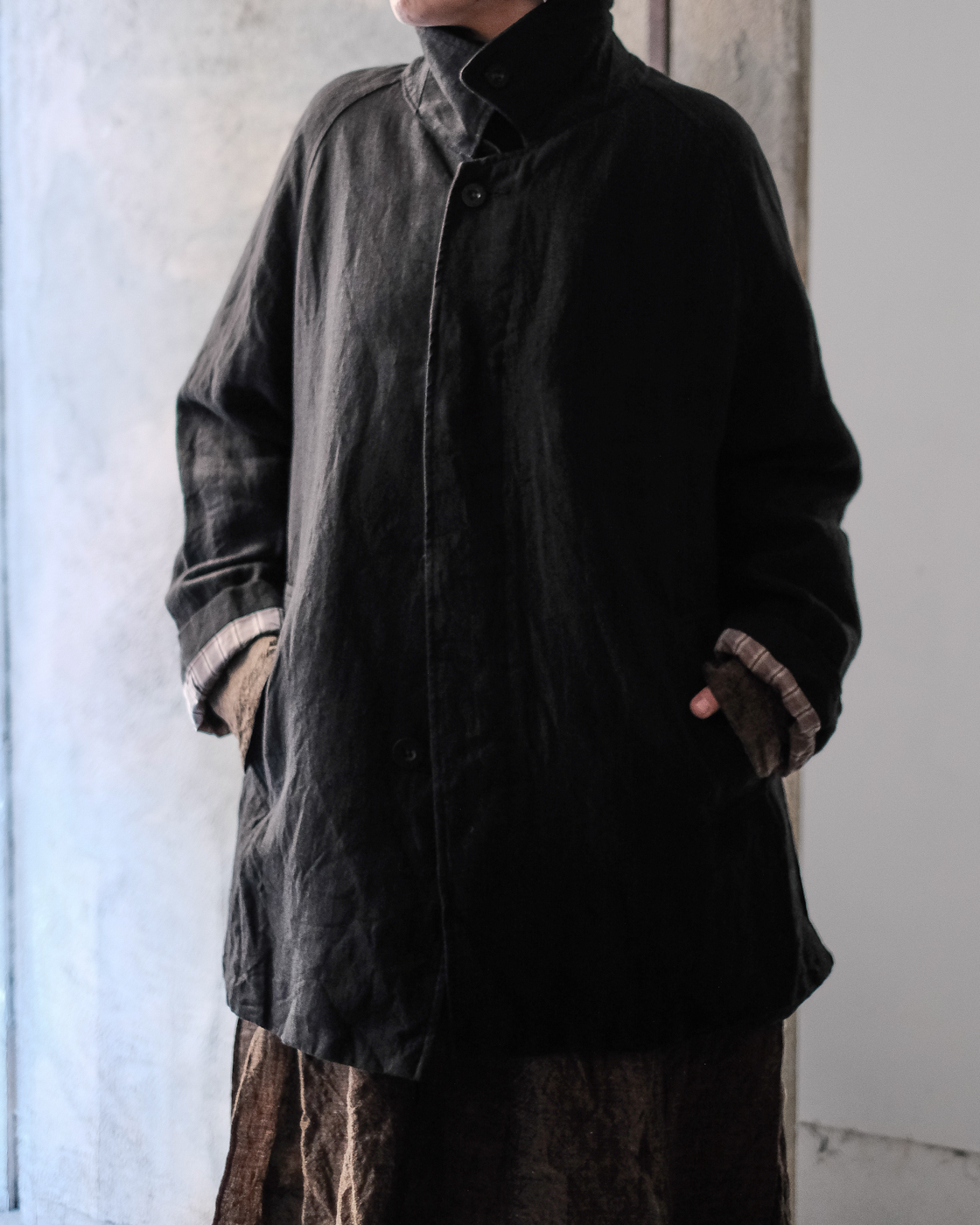自然なドレープとハリが共存したハーフコート。