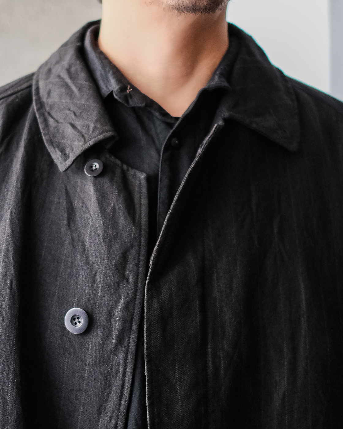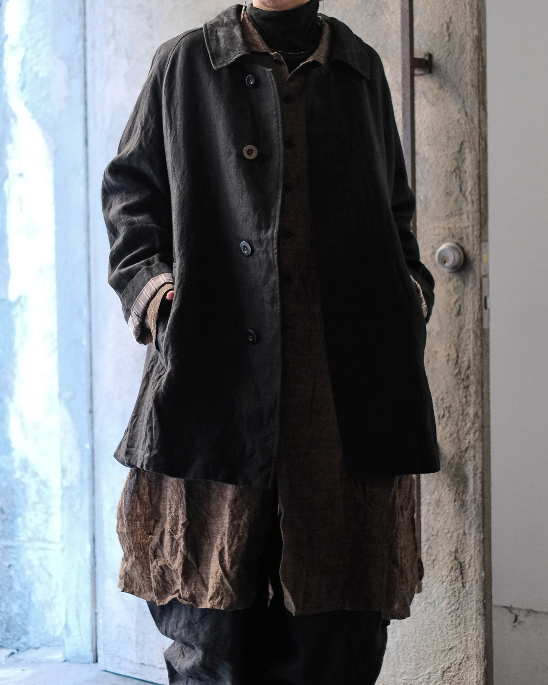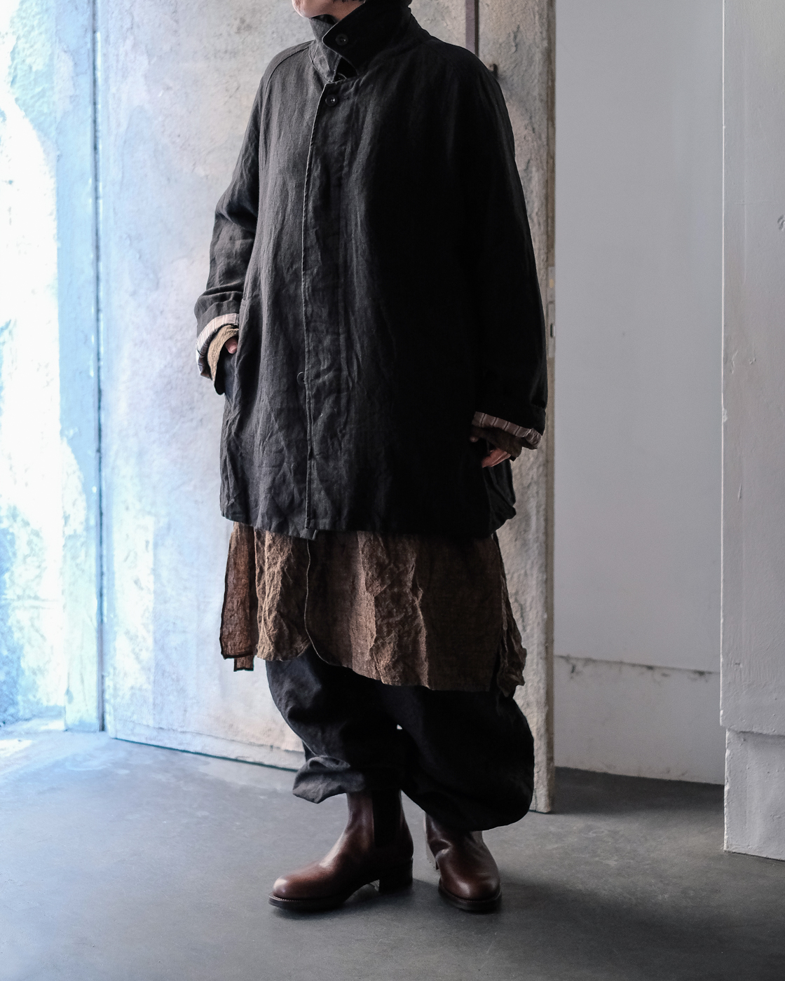 自然なドレープとハリが共存したハーフコート。