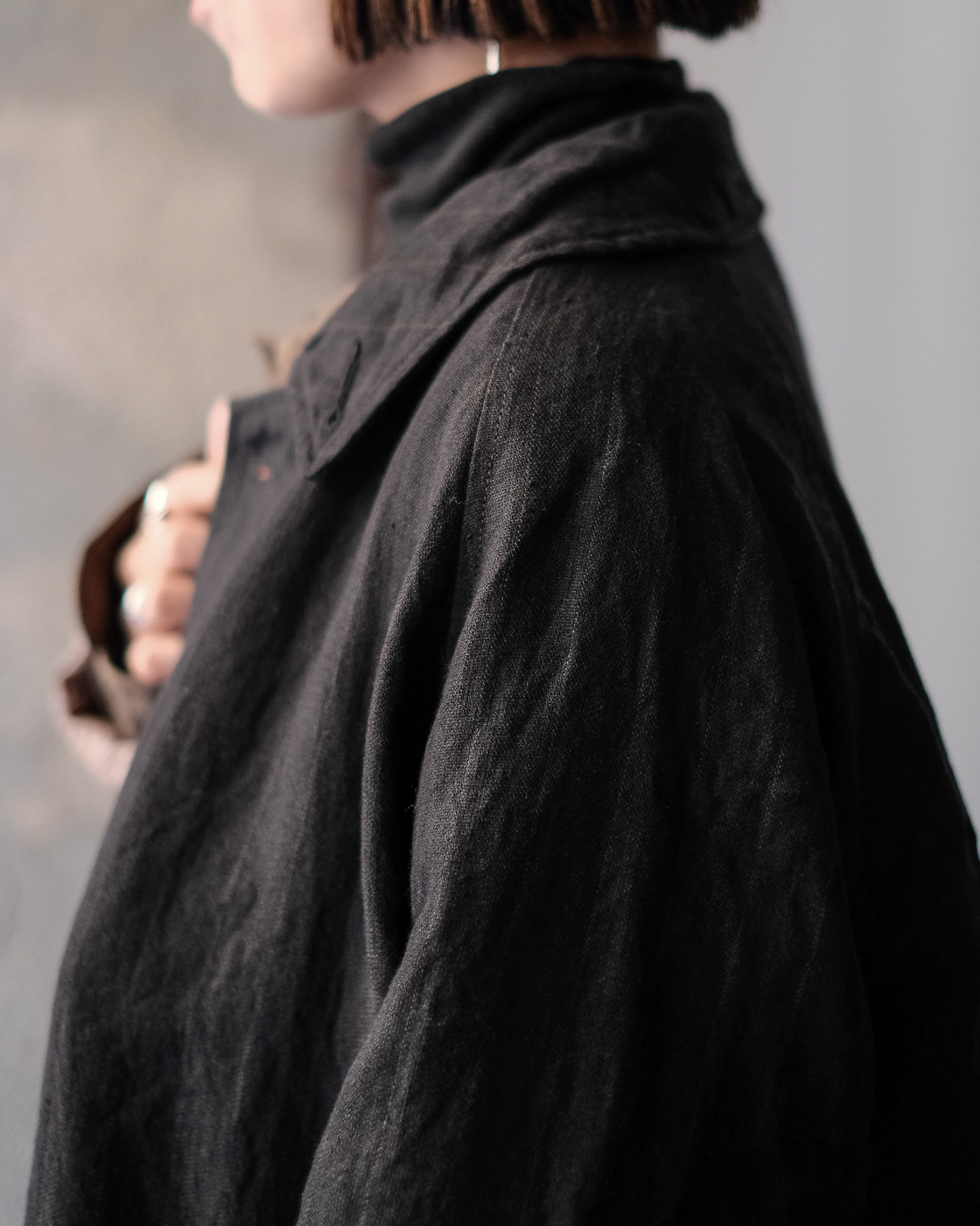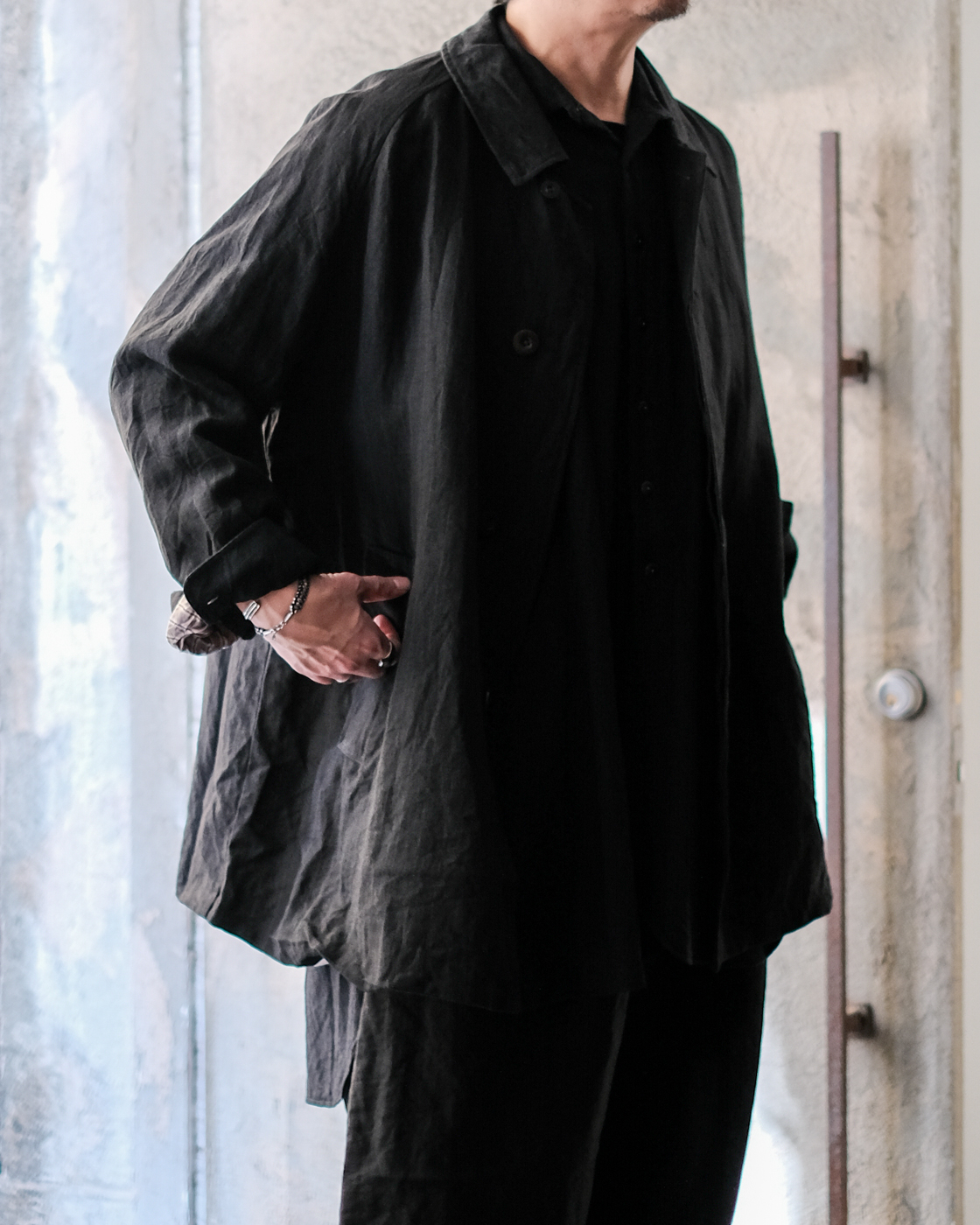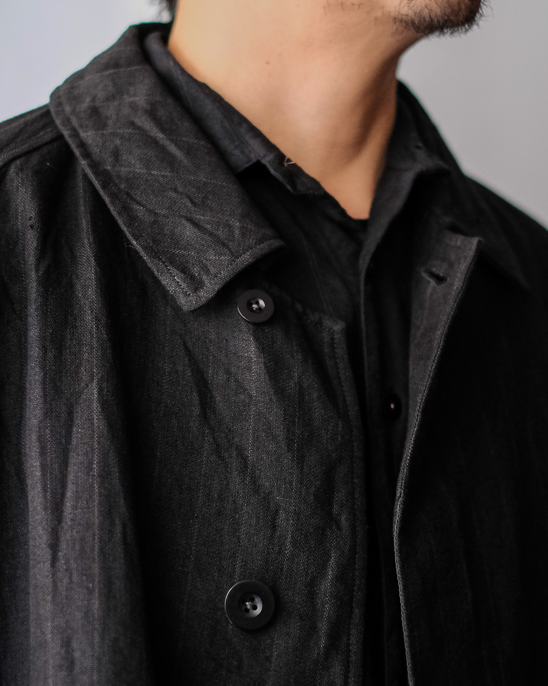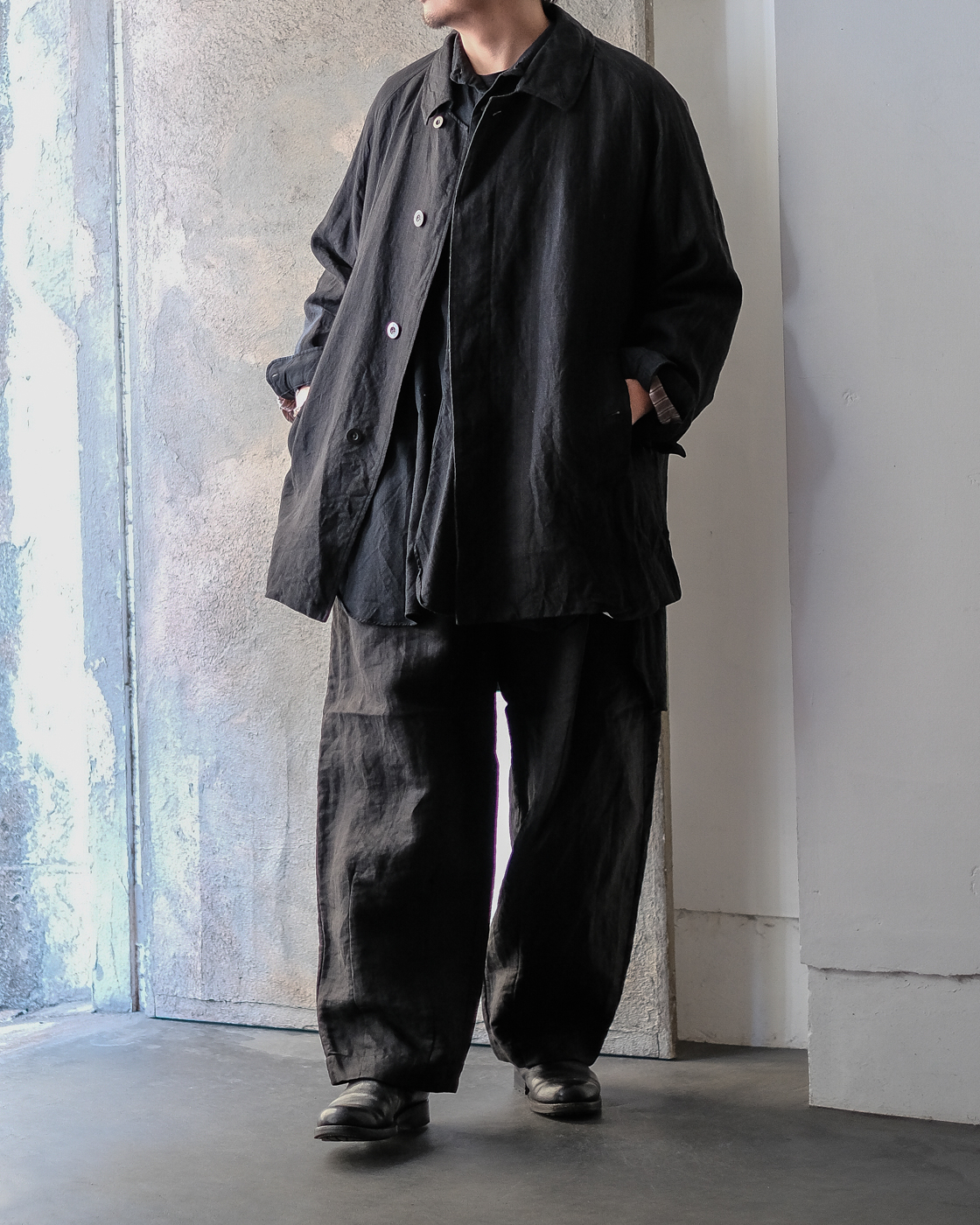 自然なドレープとハリが共存したハーフコート。