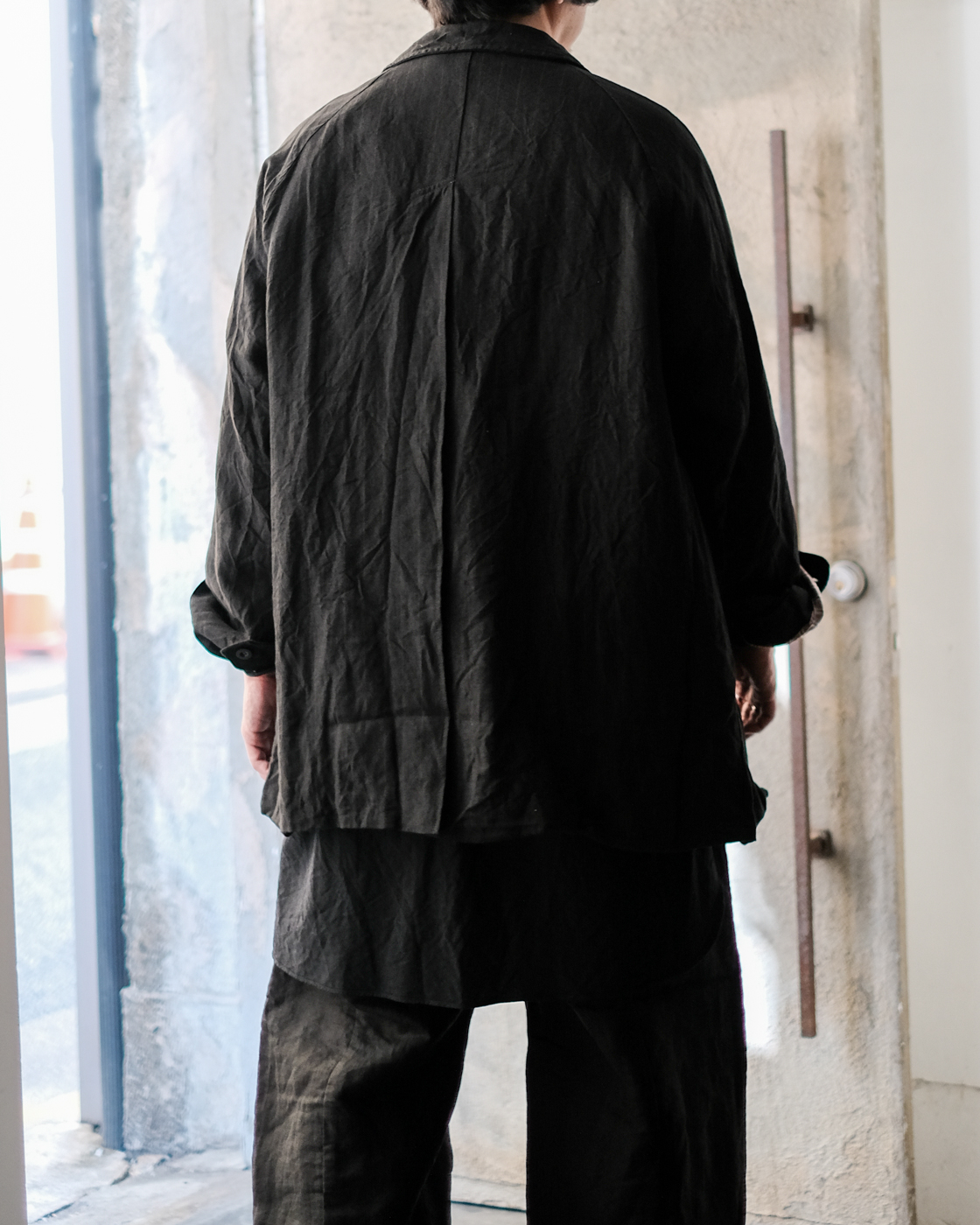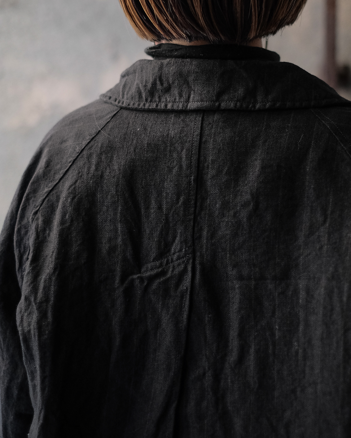 背中のハイバックセンターベントが効いていて、動きやすさはもちろんの事、着用した時にインナーのシャツやニット、カットソーなどが見える仕様なのもとても好きな所。