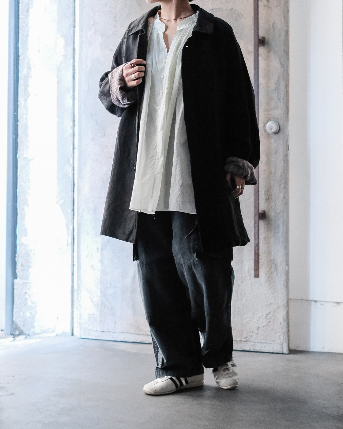 ロング丈の着丈バランスがとても気に入っていて、ばさっと一枚着るだけで圧倒的な存在感。