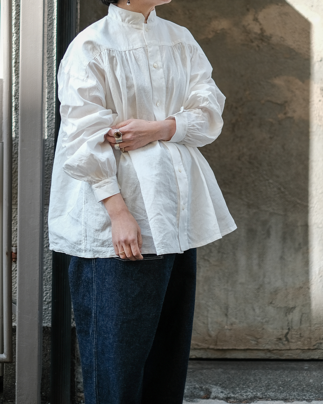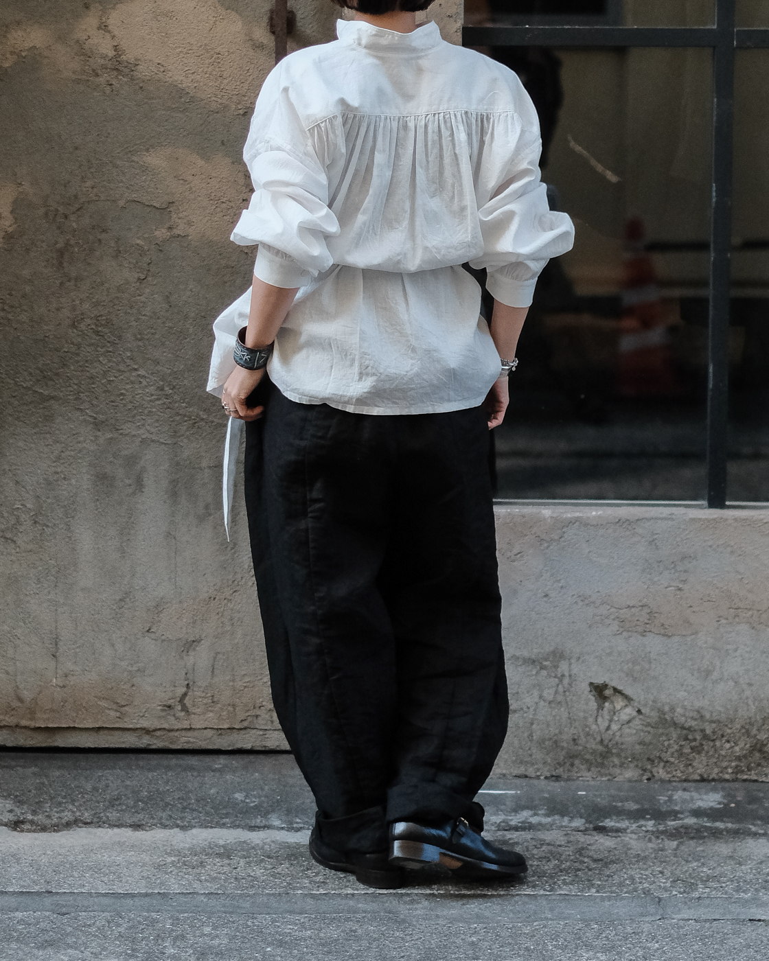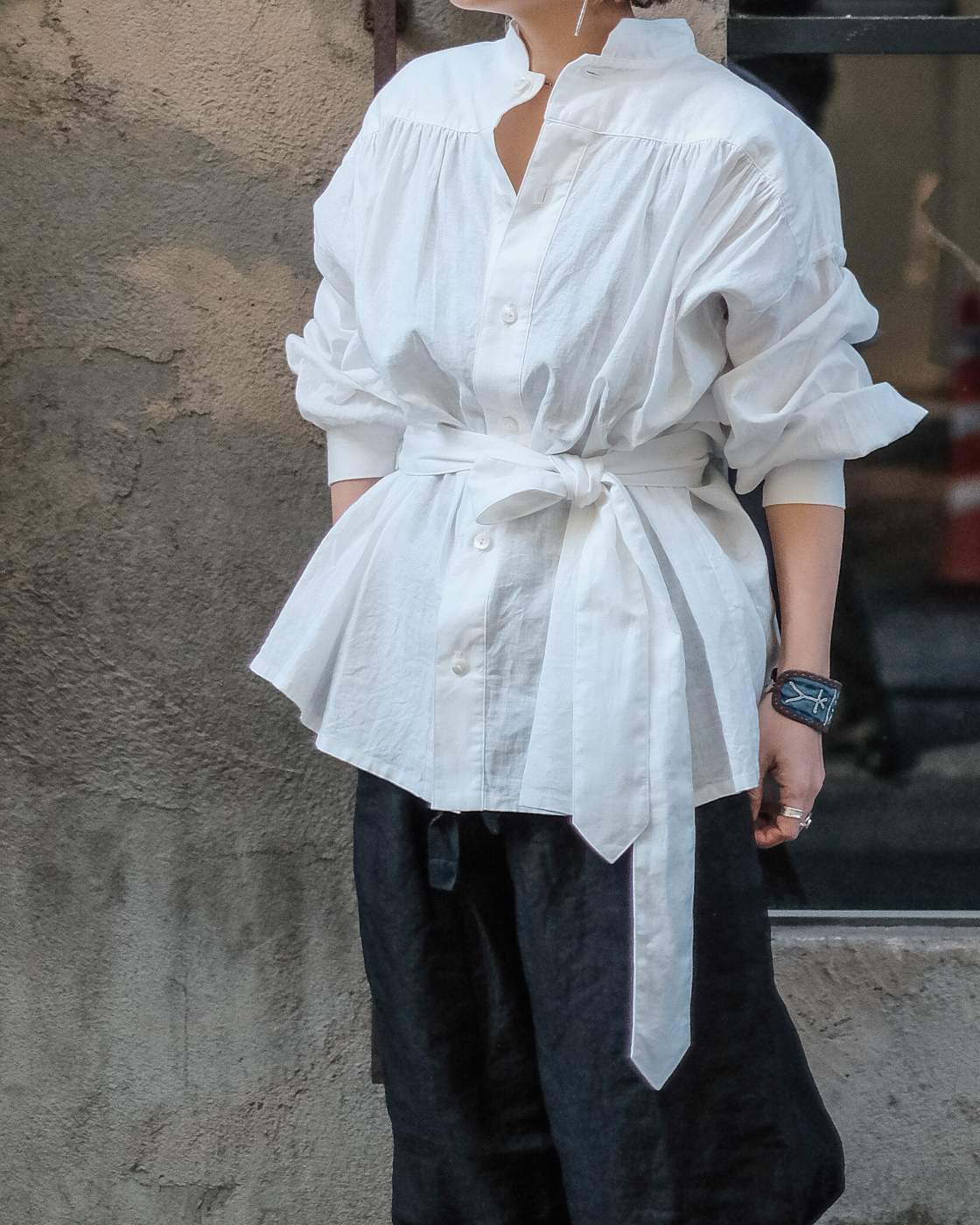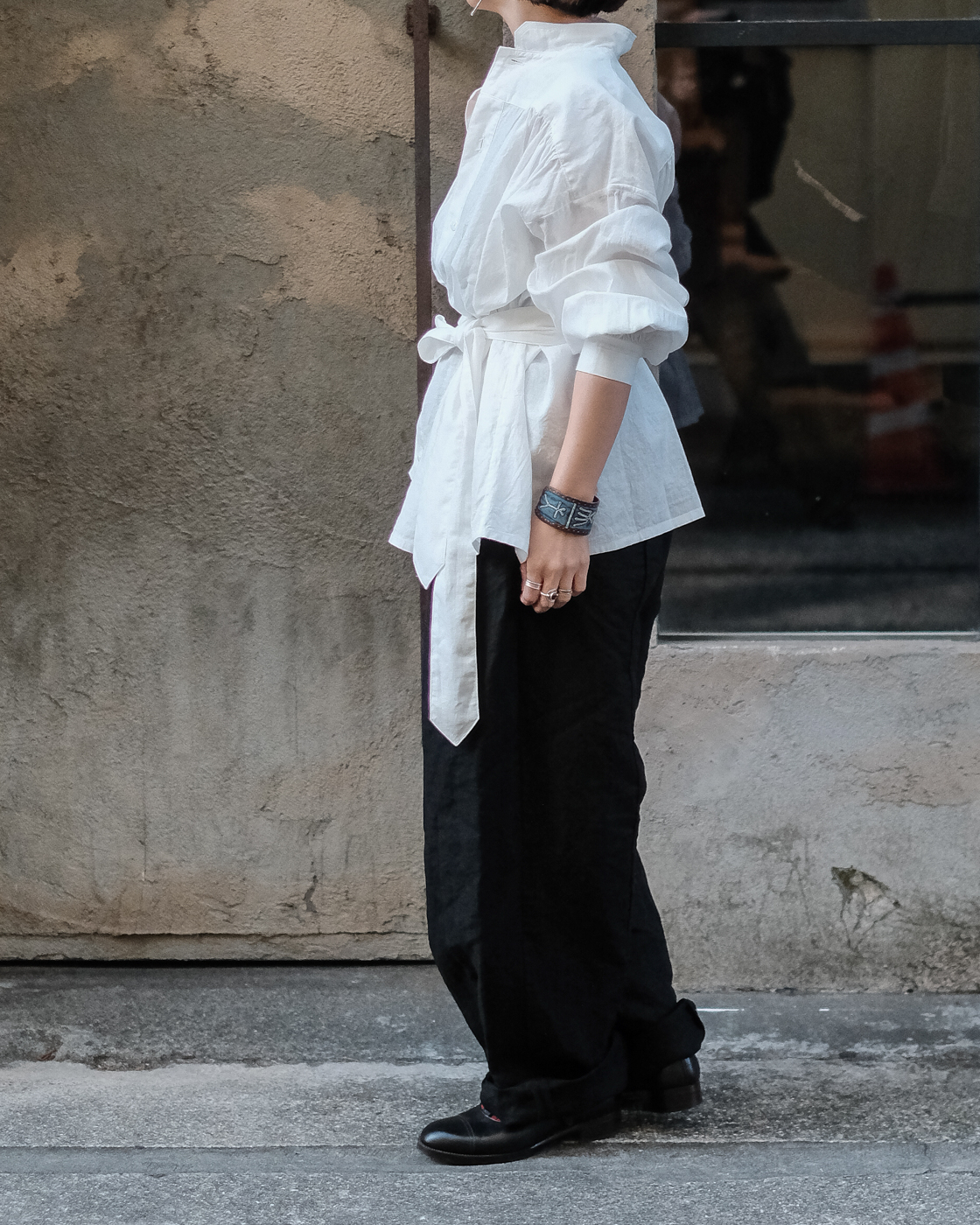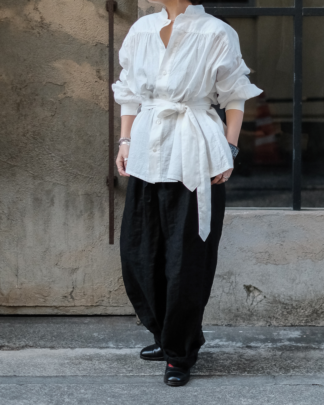 今までgenreさんと一緒に製作してきたSleepy PEOPLE別注アイテムにも合う、そして格好良い女性のスタイルには欠かせない “ブラウス”の存在。