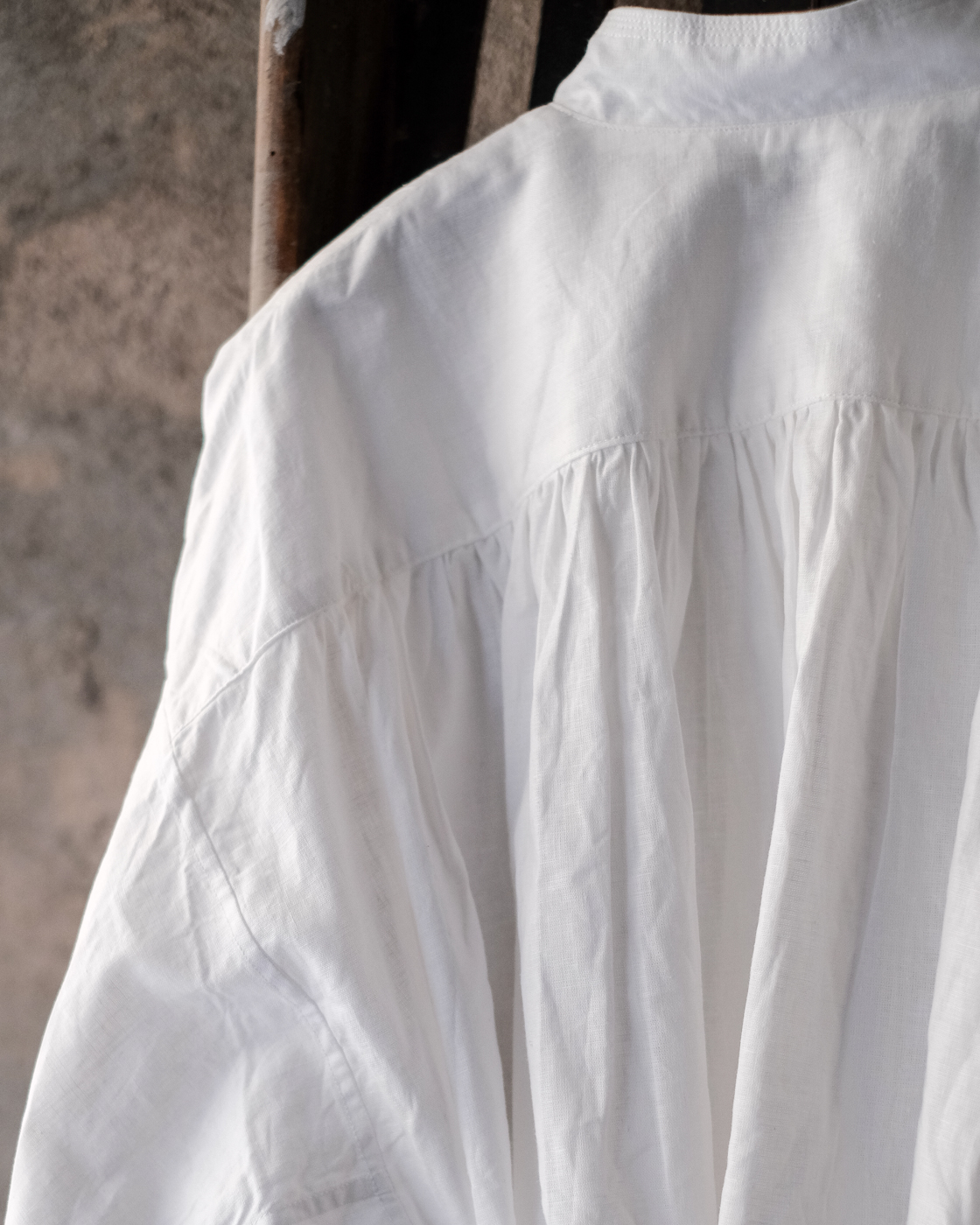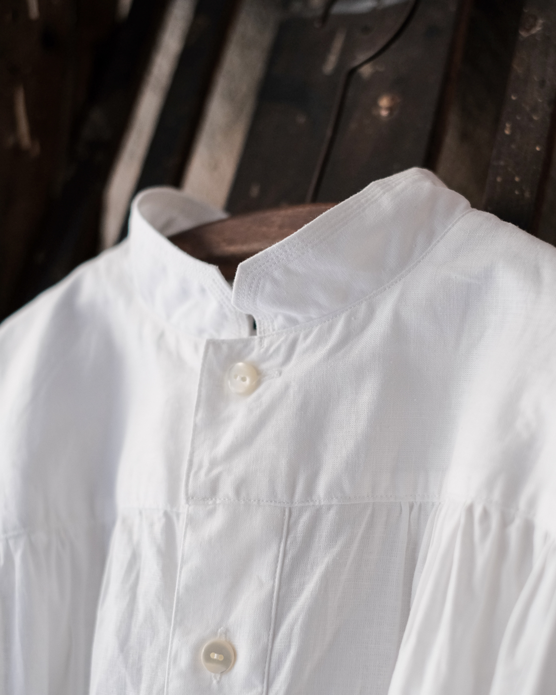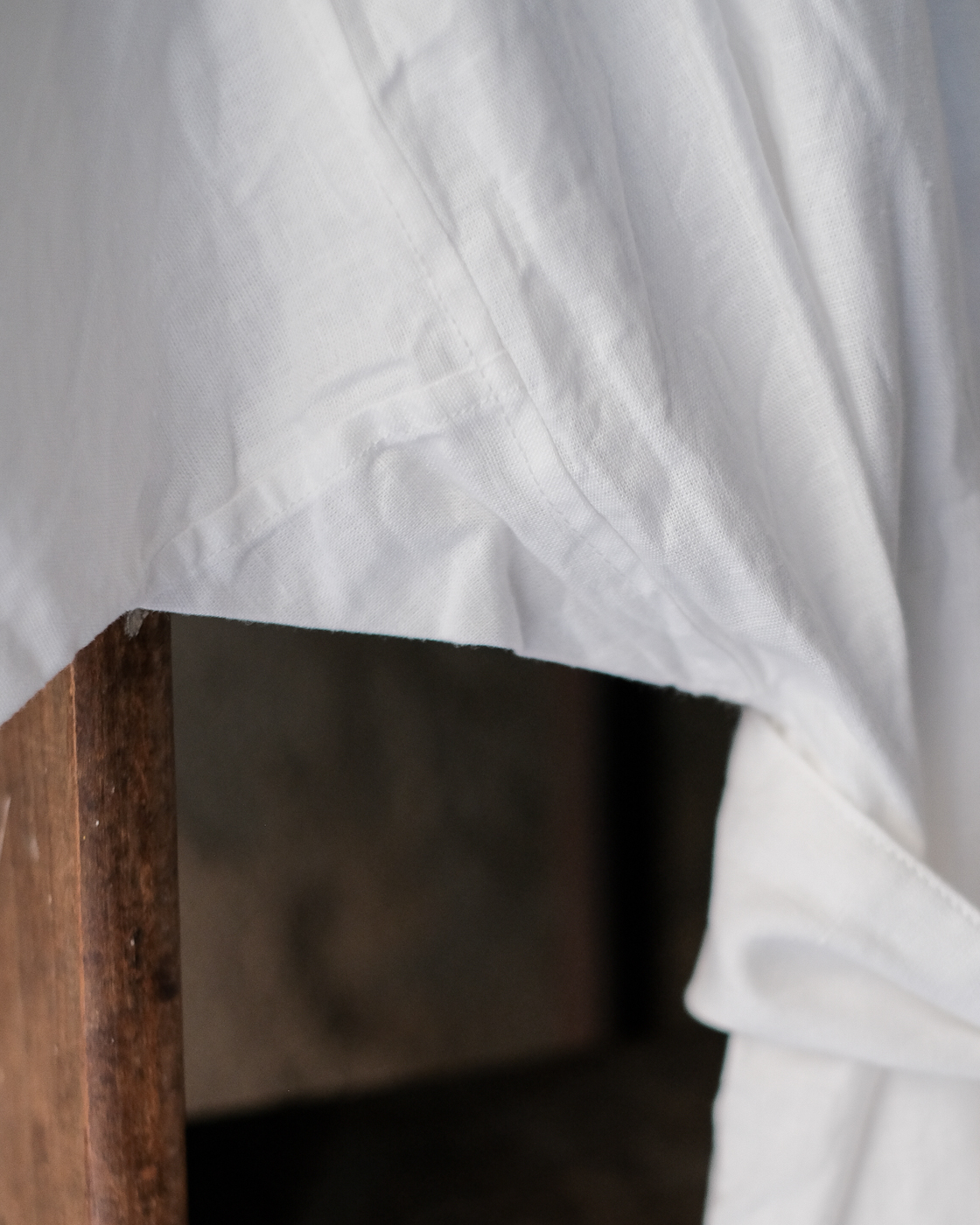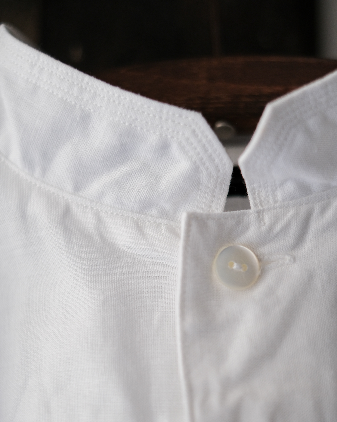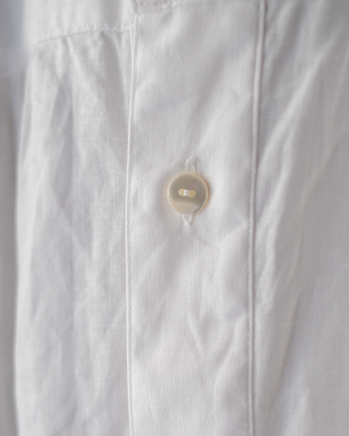 素材は、コットンの柔らかさとリネン特有のシャリ感とハリを持ち、オールシーズン快適に過ごして頂けるコットンリネン素材で製作。