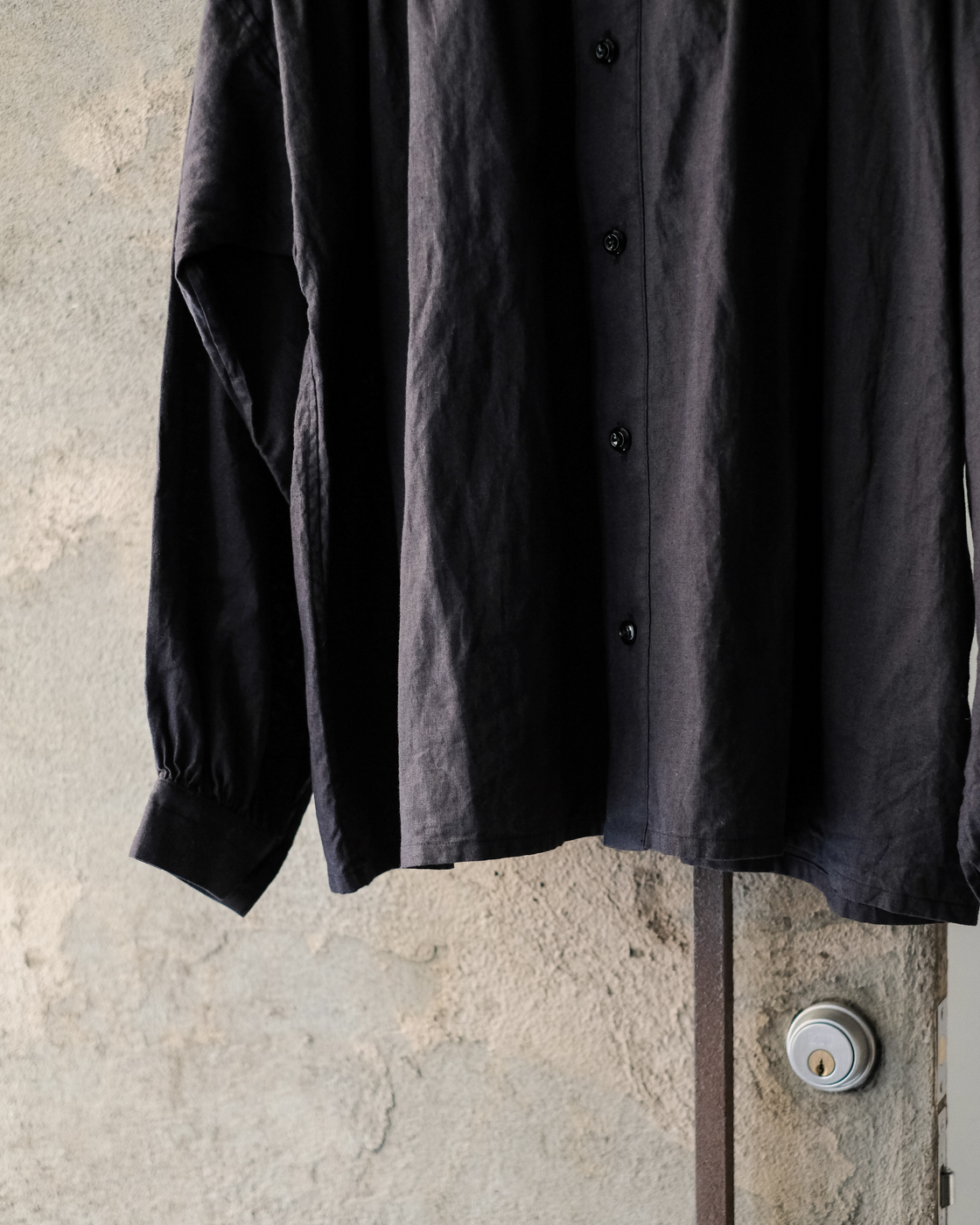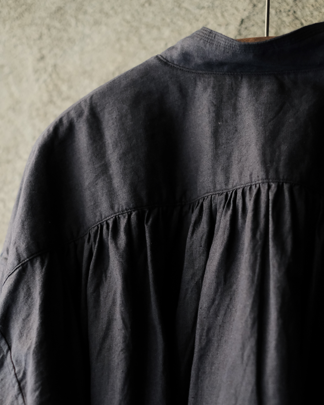 素材は、コットンの柔らかさとリネン特有のシャリ感とハリを持ち、オールシーズン快適に過ごして頂けるコットンリネン素材で製作。