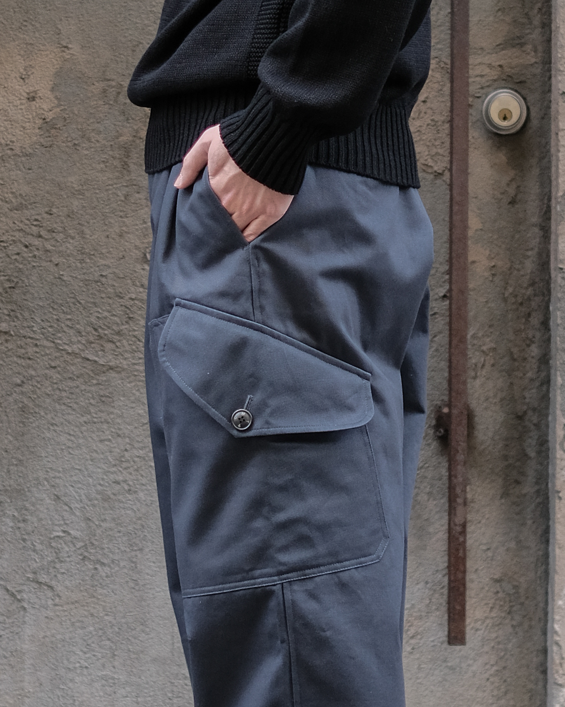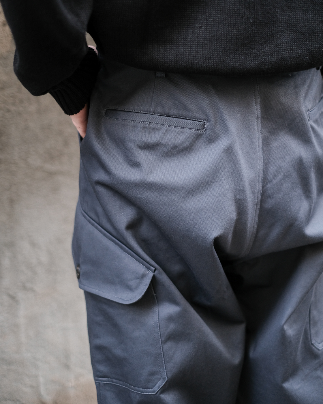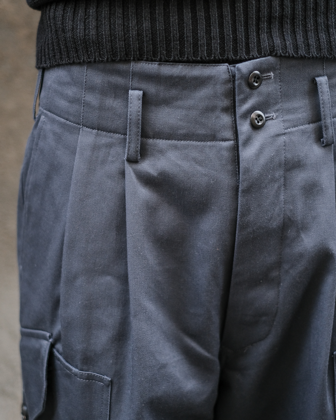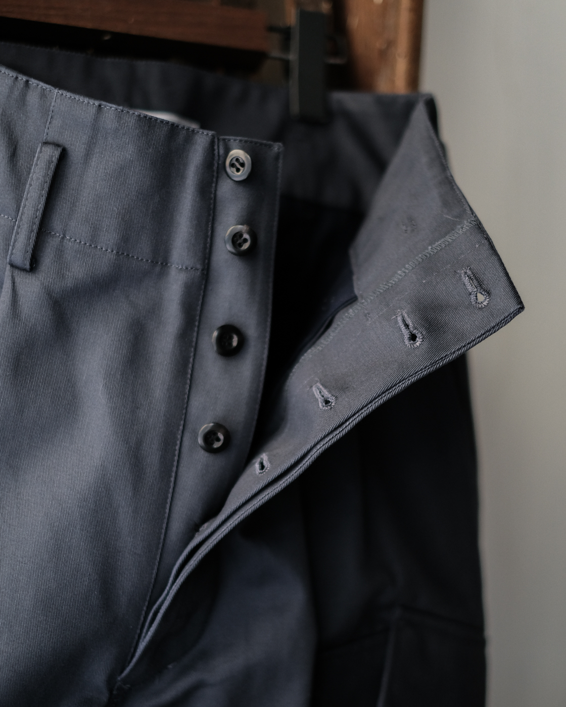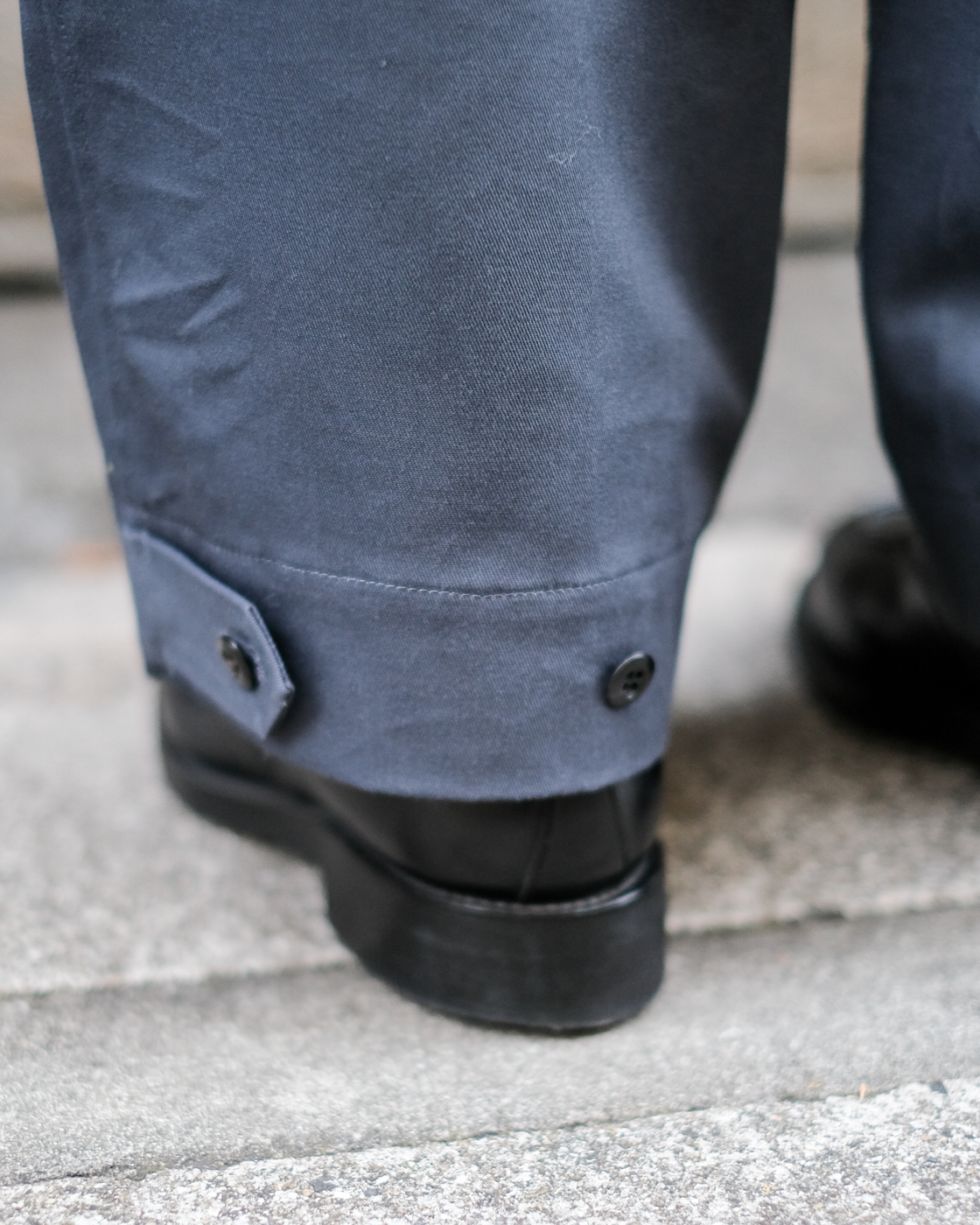 1940年代、イギリスのロイヤルエアフォースのパンツのディティールから着想を得てOLDMAN’S TAILORらしく製作された一本。