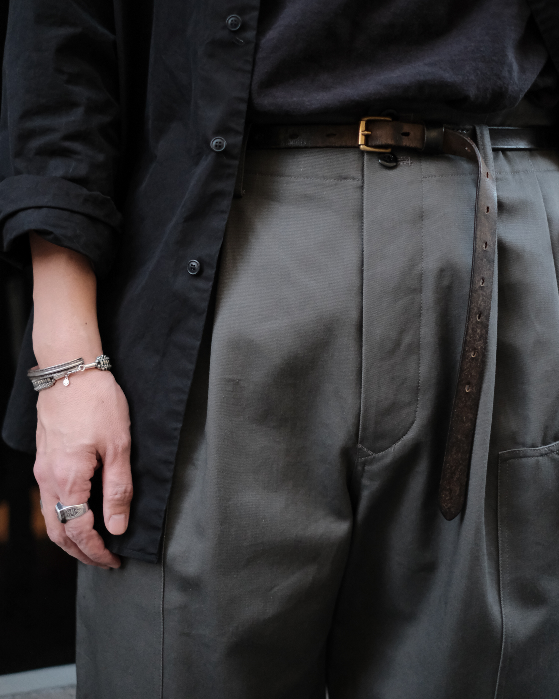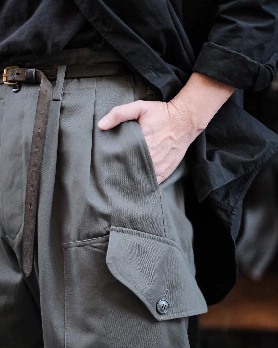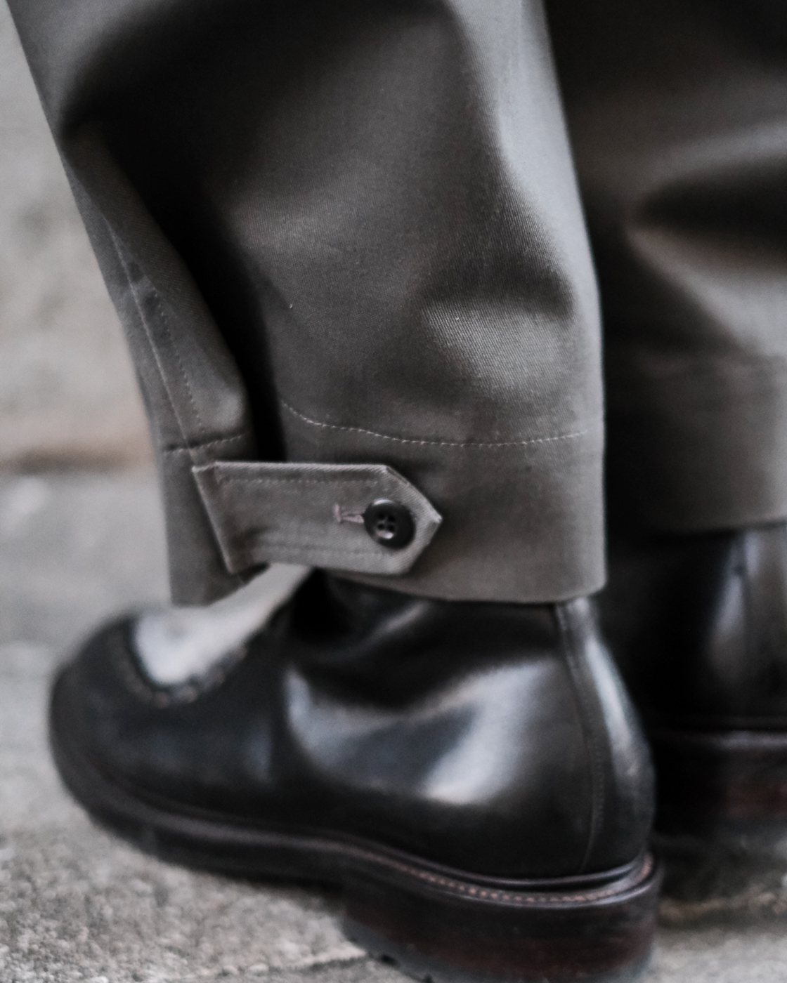 1940年代、イギリスのロイヤルエアフォースのパンツのディティールから着想を得てOLDMAN’S TAILORらしく製作された一本。