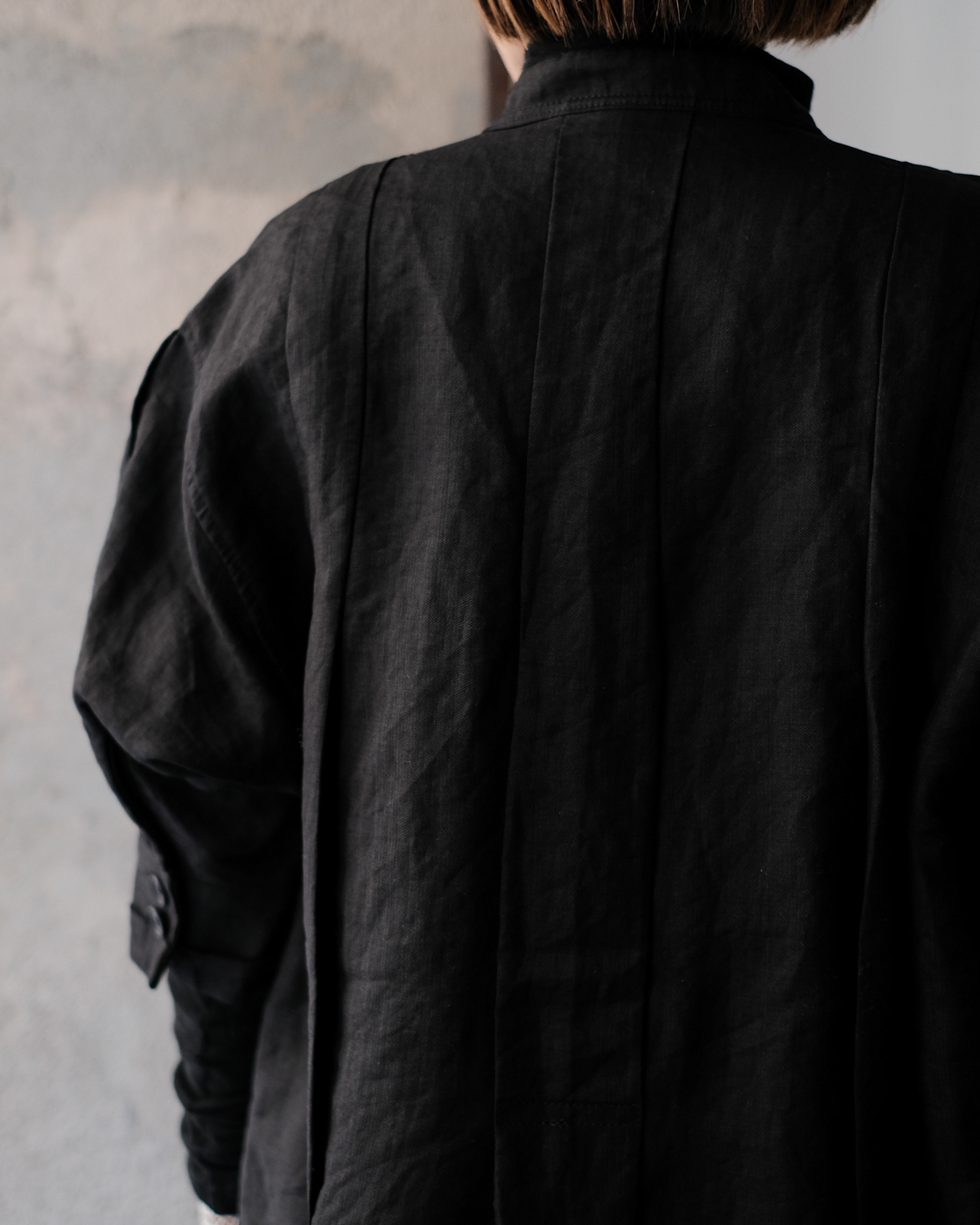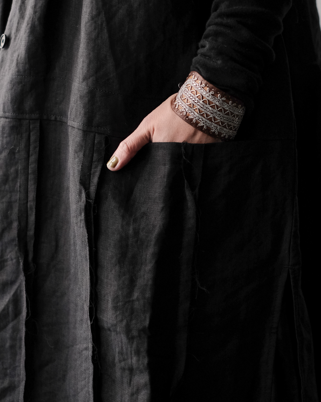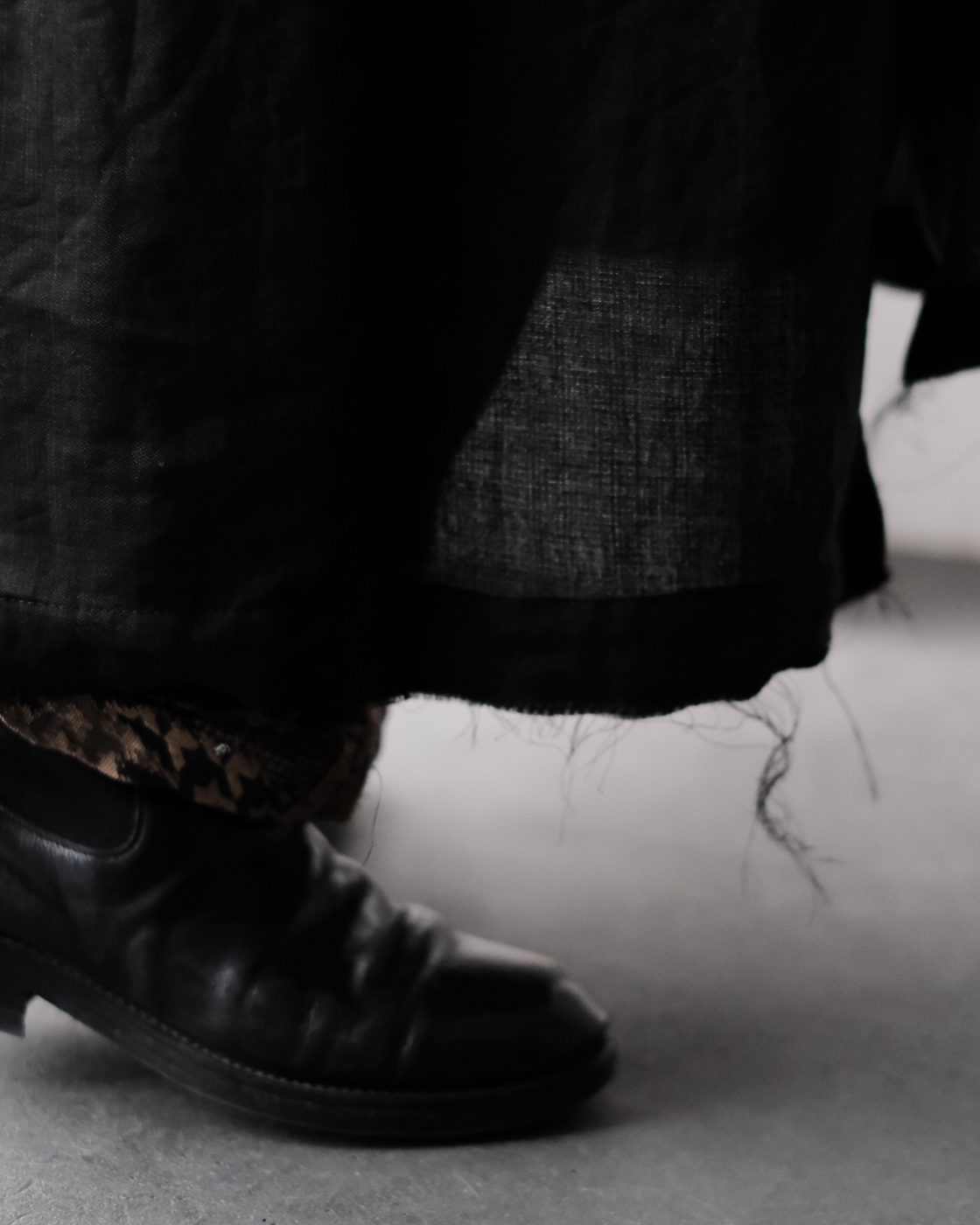 切りっぱなしの裾やお袖部分が全体的な雰囲気を更に高めてくれる。