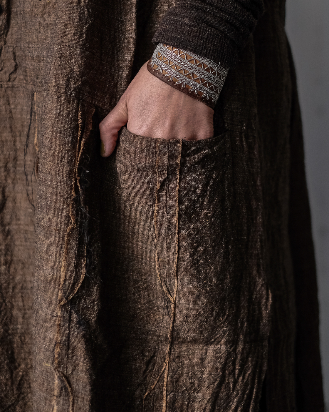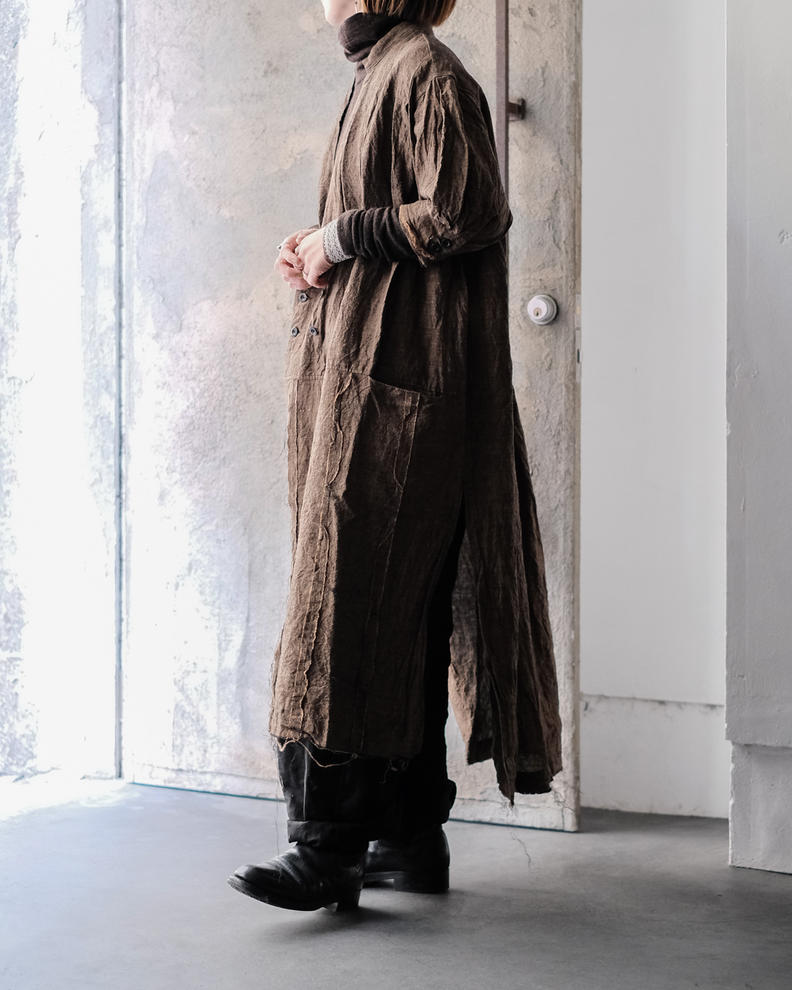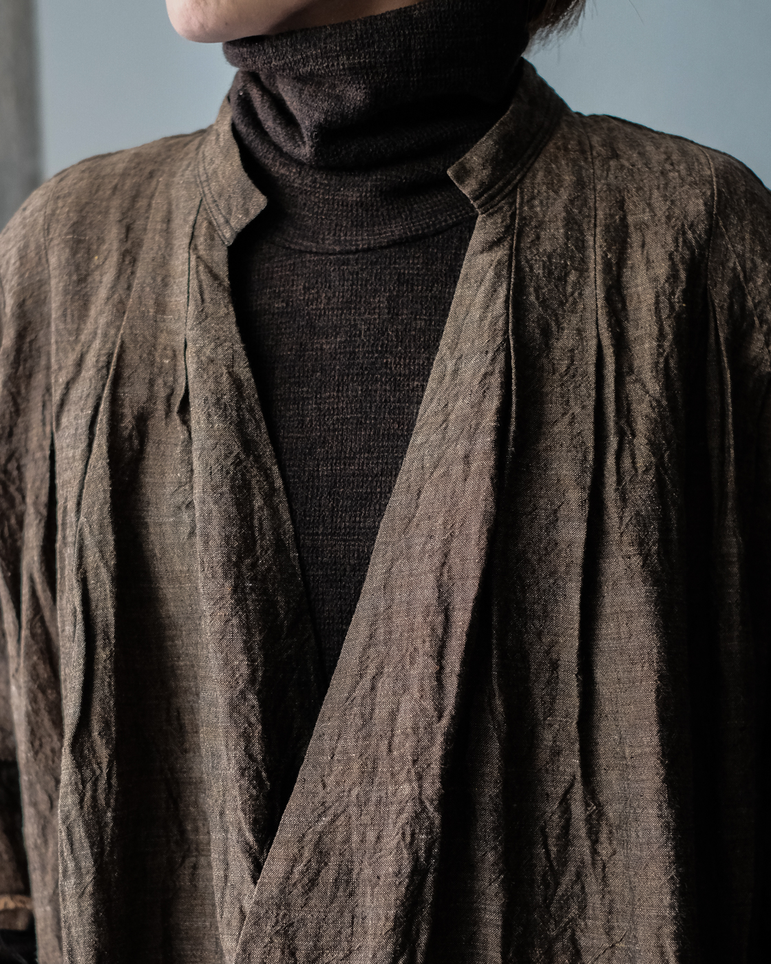 素材は上質で貴重なリネン素材。東洋とも西洋とも見える古い色調を目指したリネンシャンブレー。