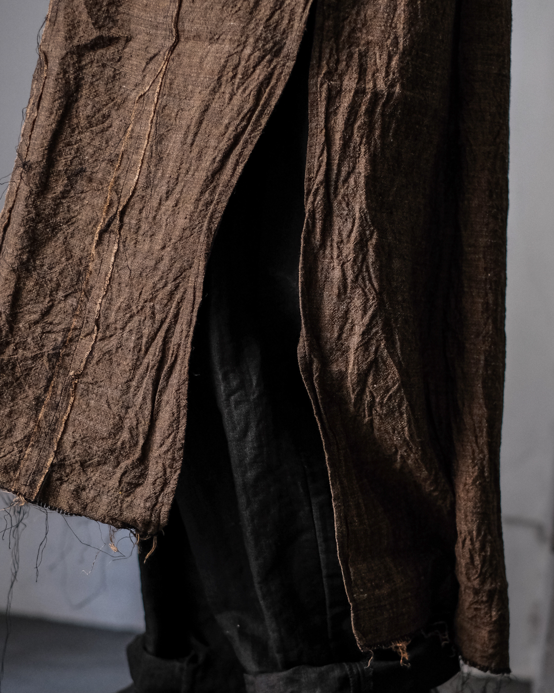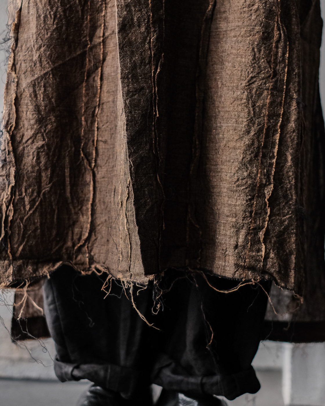 切りっぱなしの裾やお袖部分が全体的な雰囲気を更に高めてくれる。