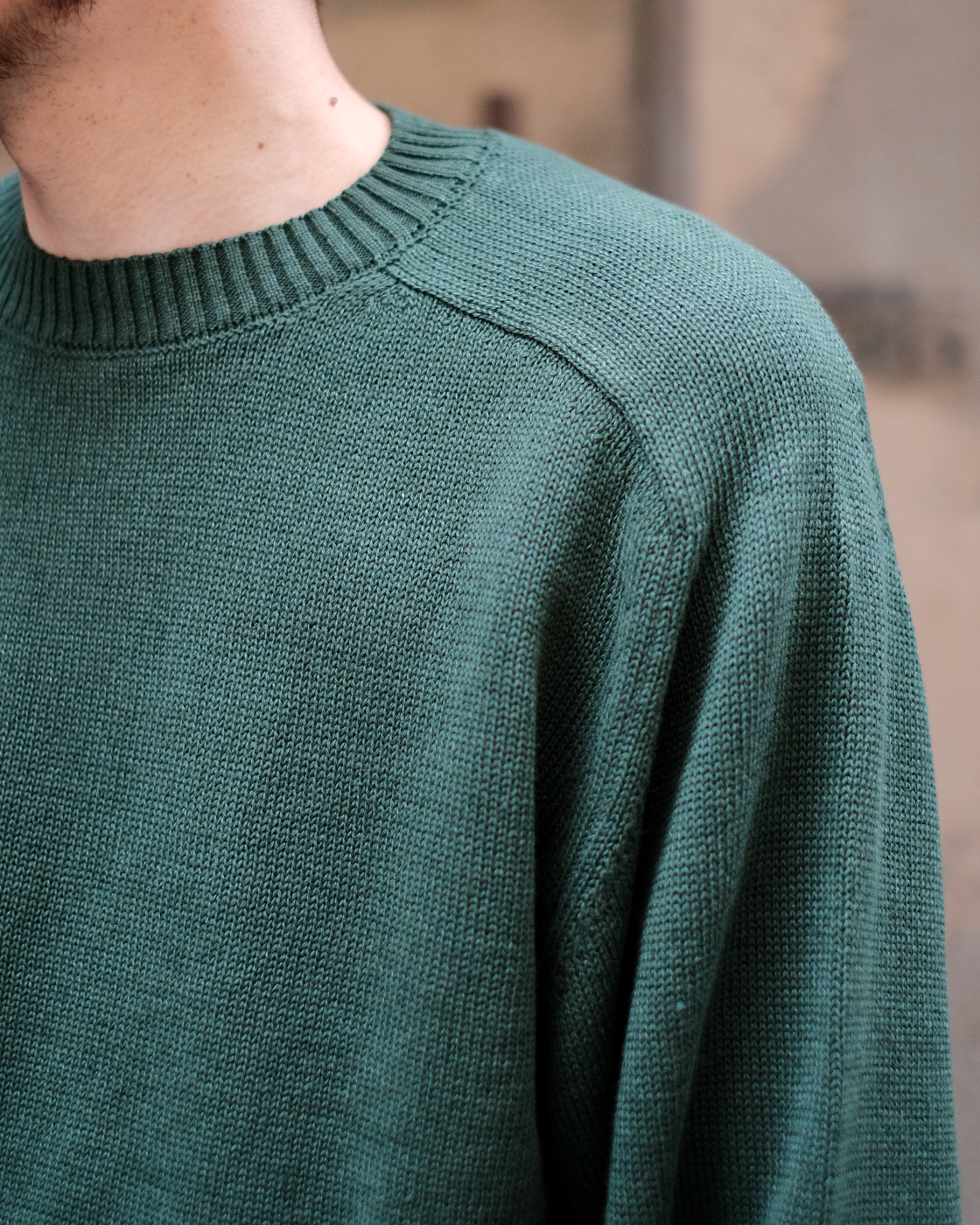 コットン×リネンを掛け合わせて製作されたニット。