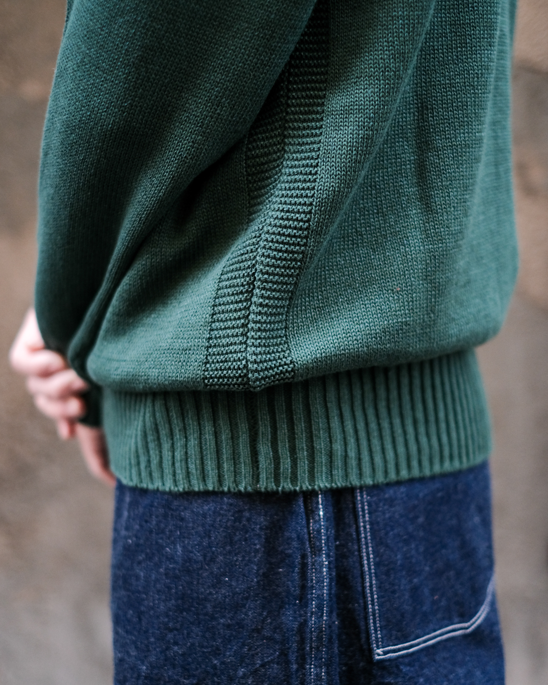 ガーター編みが施された脇下のデザインはPHIGVELらしさを感じます。