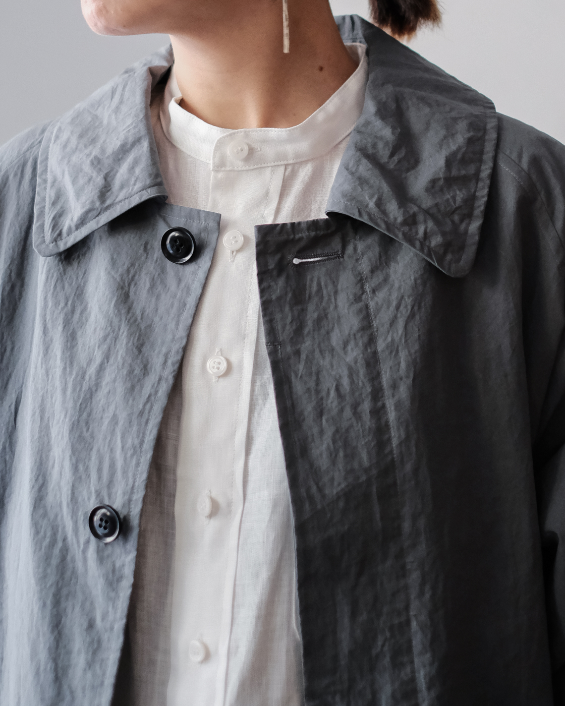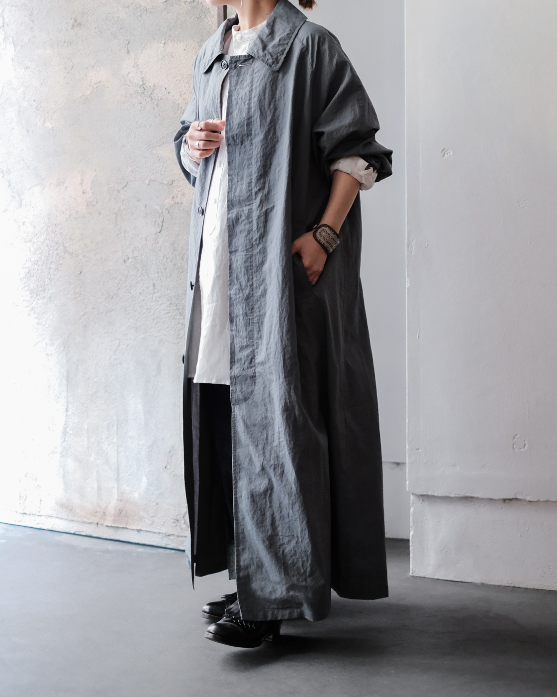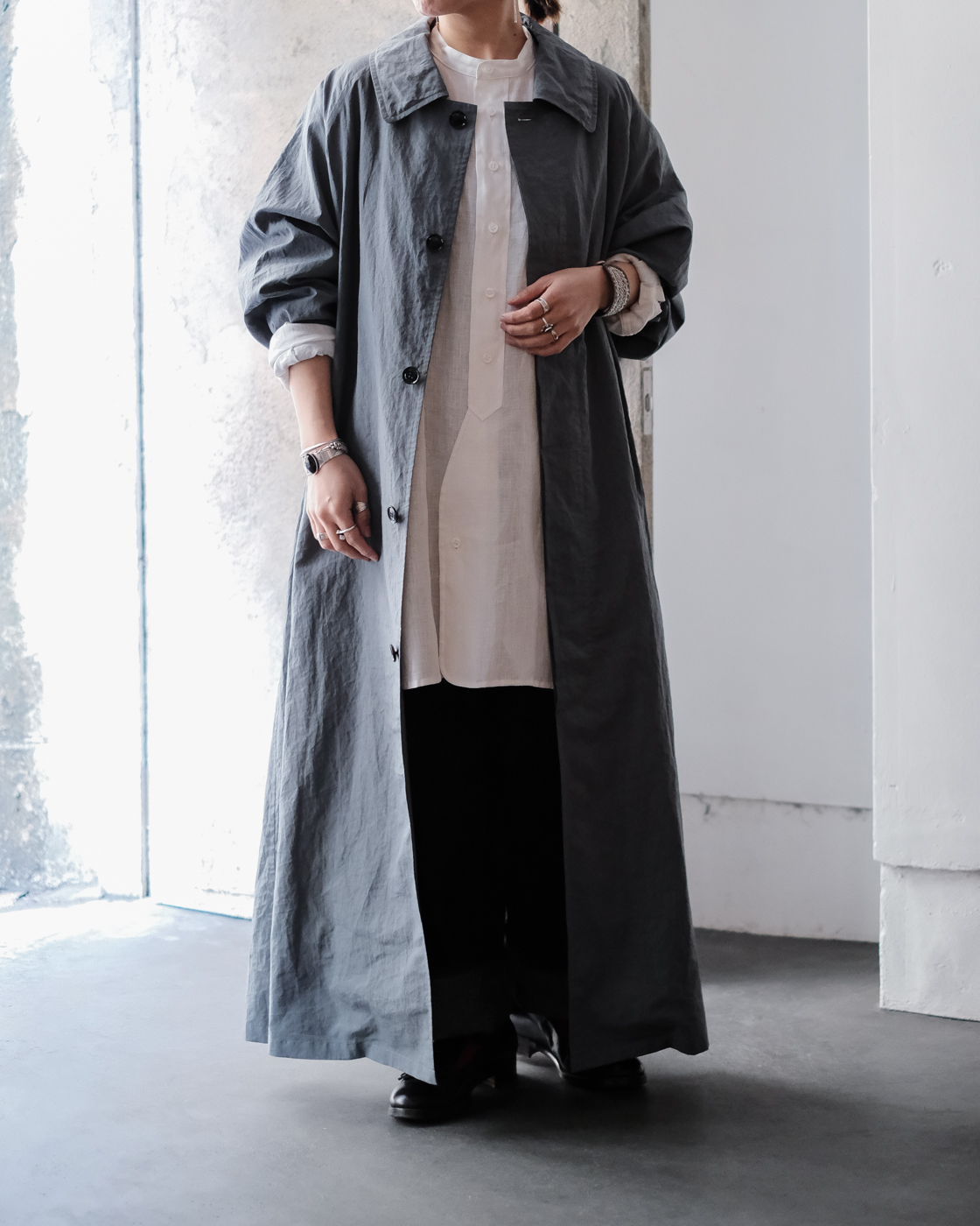 col.Grayのブルーグレーの独特な色合いと雰囲気漂う空気感を持つ一着。