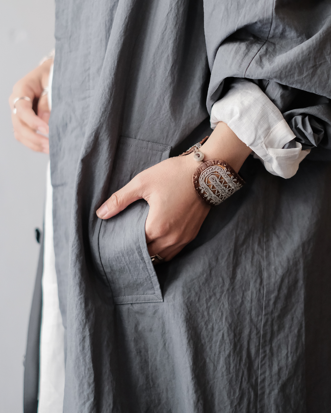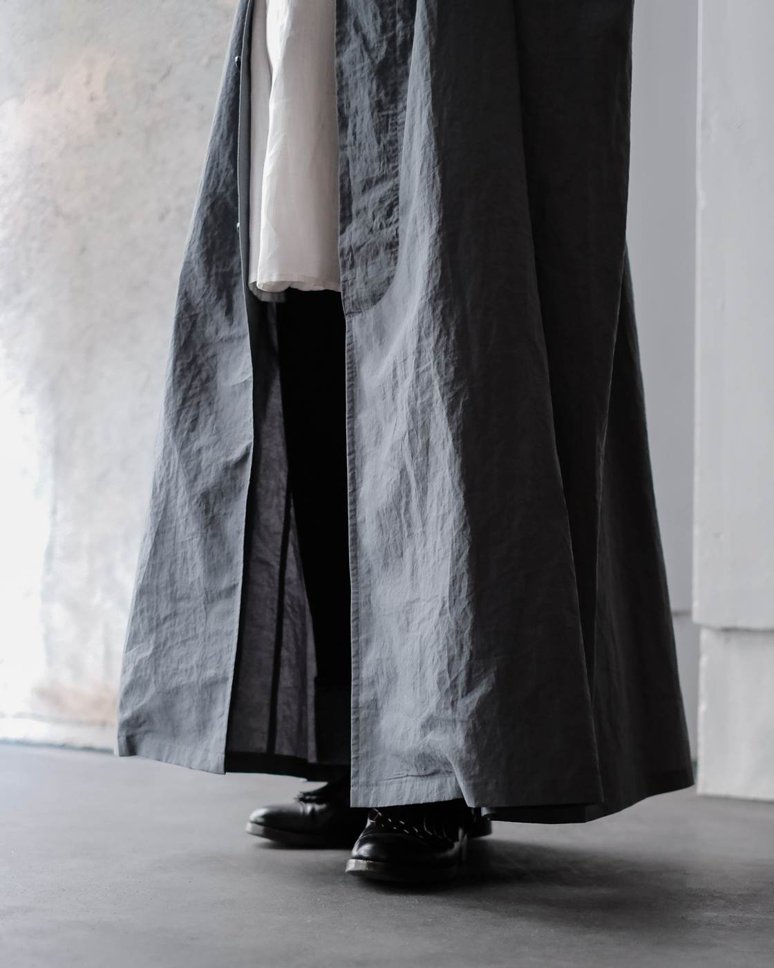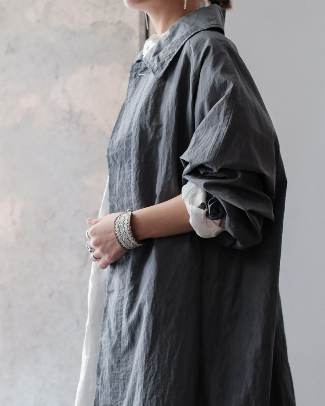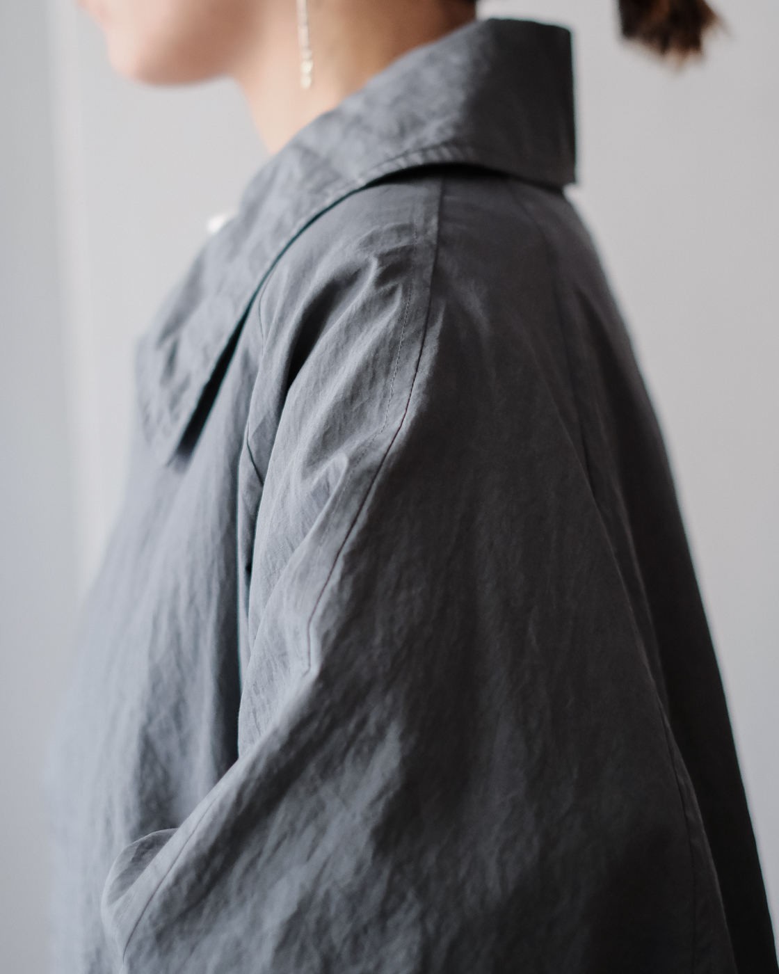 col.Grayのブルーグレーの独特な色合いと雰囲気漂う空気感を持つ一着。