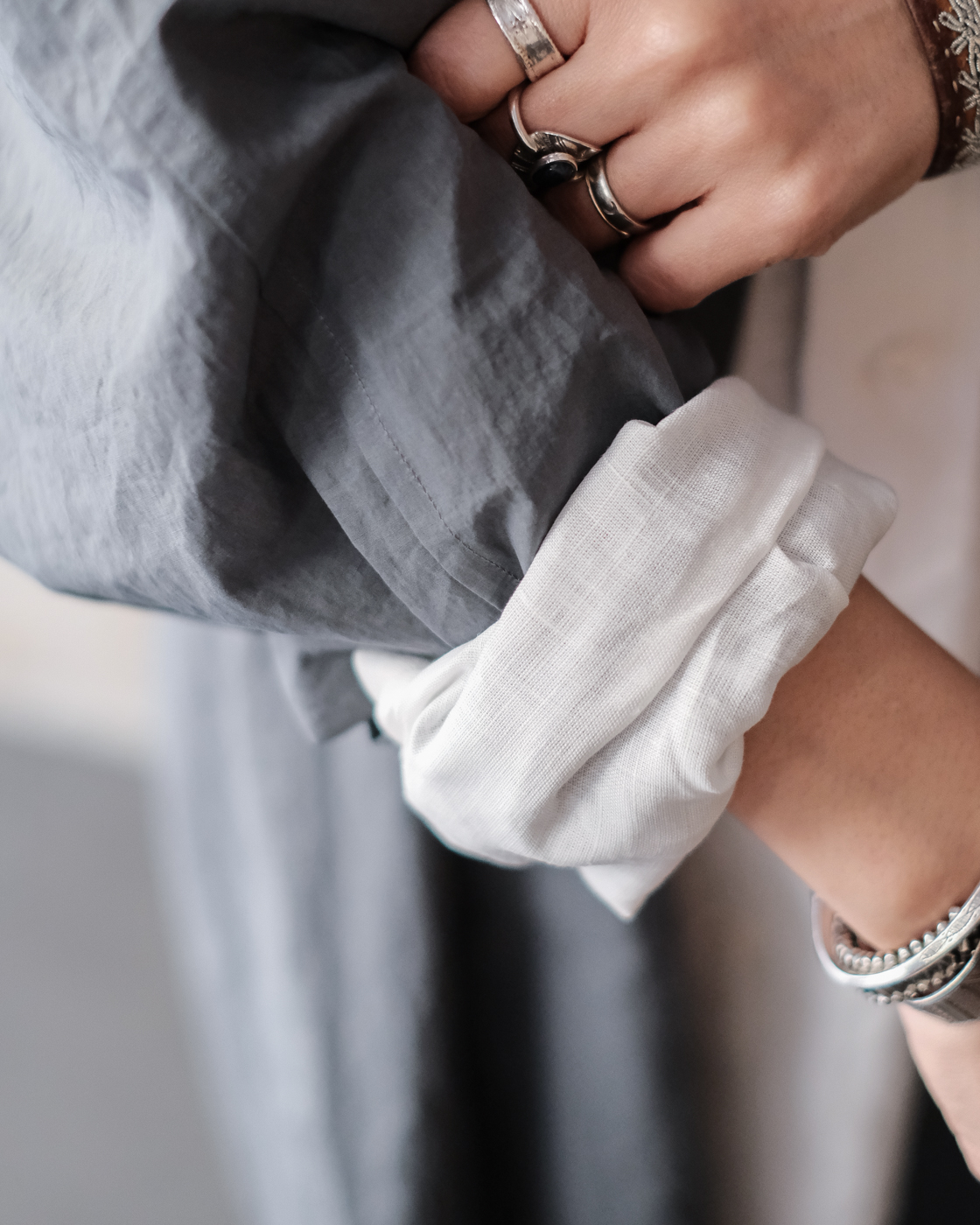 お袖はカフス仕様では無いのでくるくるっとロールアップもしやすいのも嬉しい。