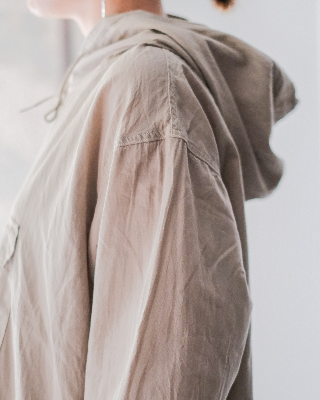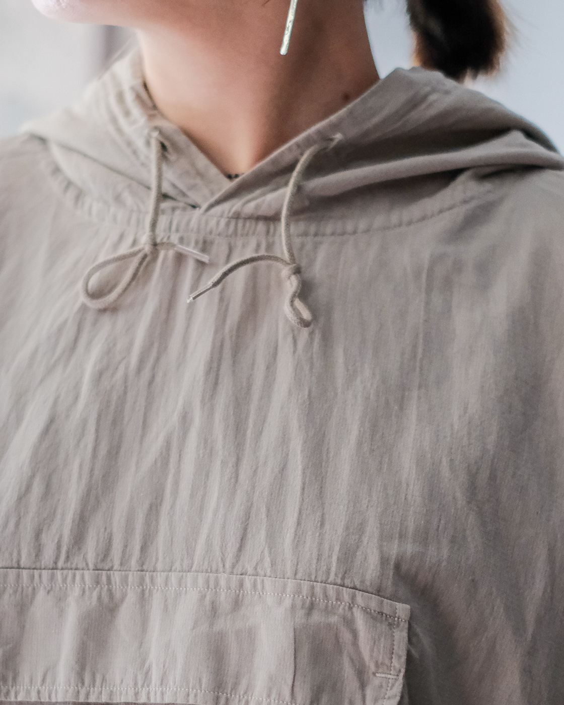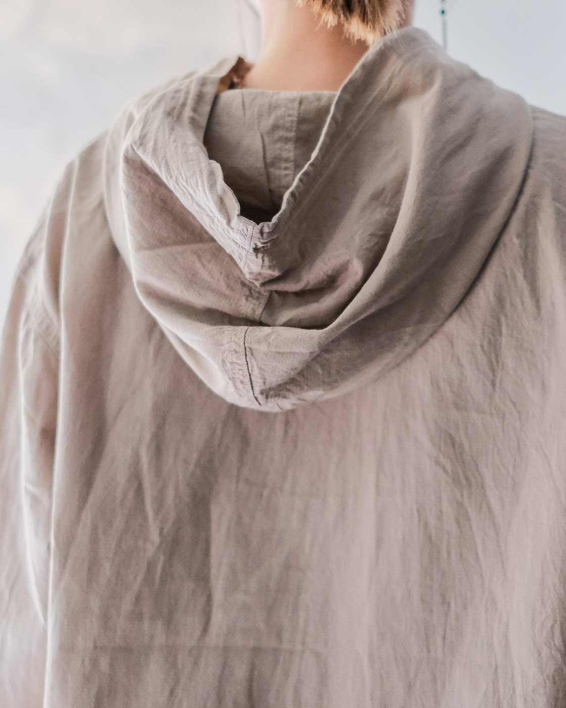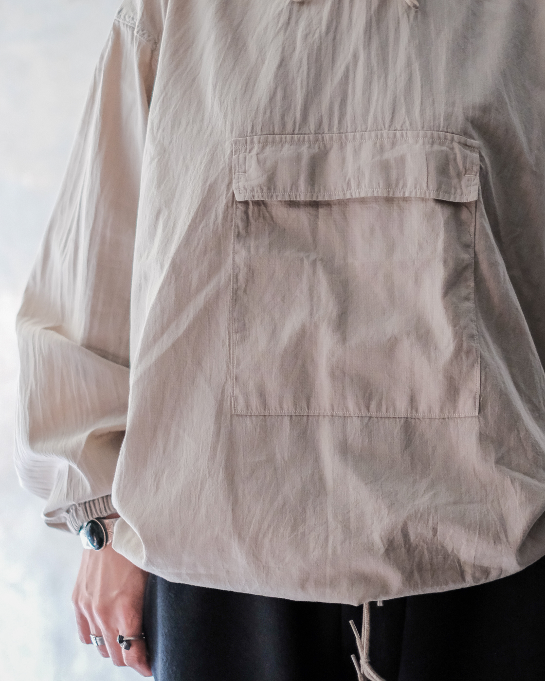 ミリタリー、アウトドアのアノラックパーカーの空気をしっかりと残しつつもPHIGVELらしく上品さが。
