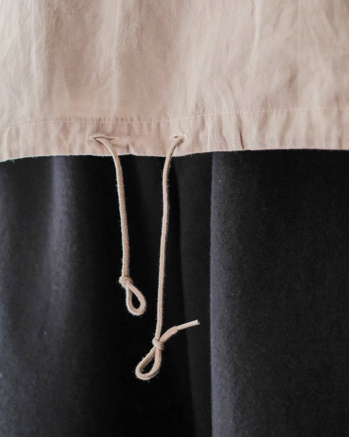 イメージとしては、ライトオンスナイロンのシェル素材を、140双糸のかなりライトな仕上がりを持つコットンリップストップ生地。