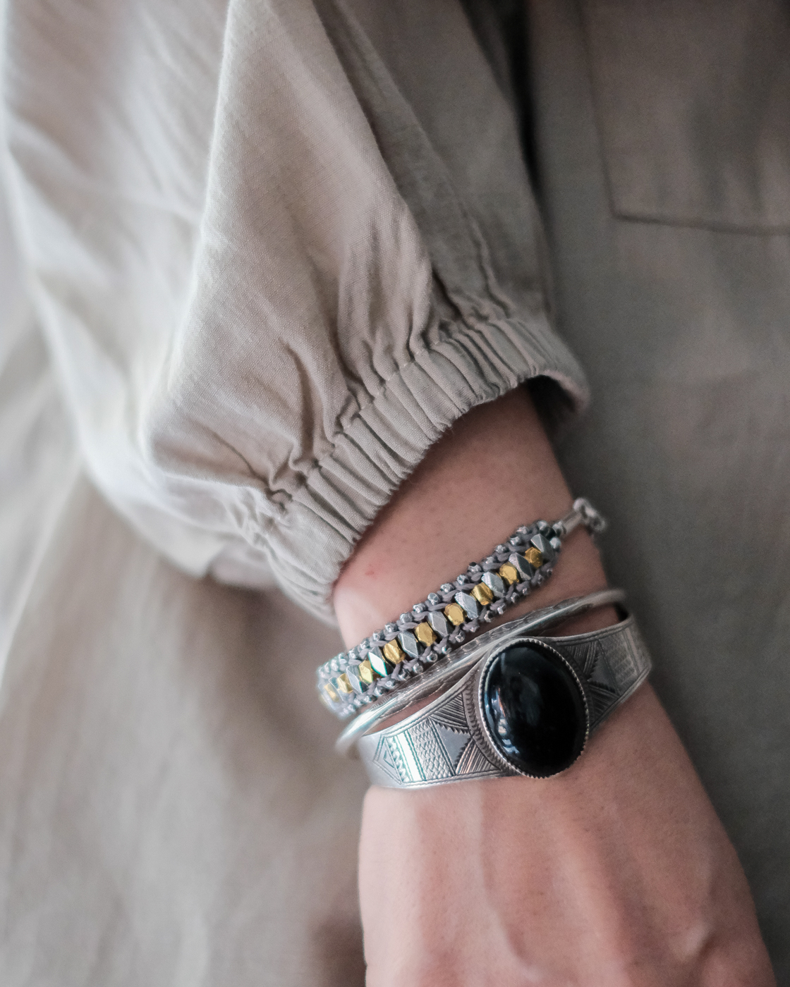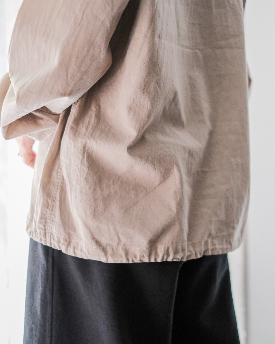 袖はゴム仕様、裾にはドローコードが入りぎゅっと絞ることで風の侵入も防ぎ、また違うスタイルでの着こなしも楽しんで頂けます。